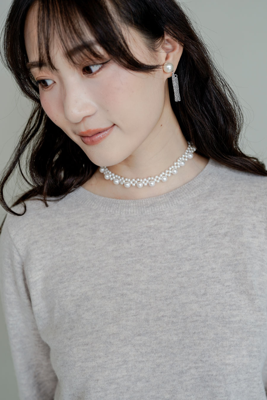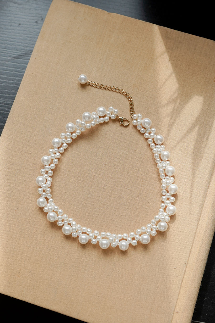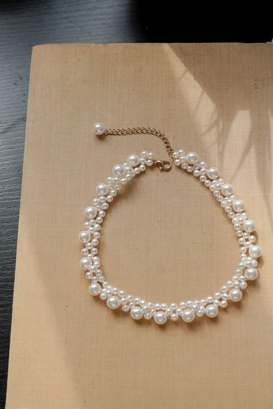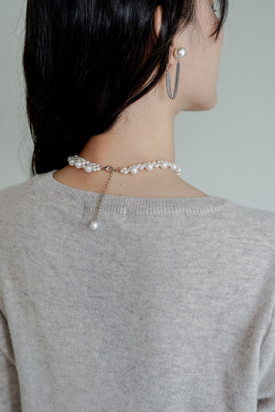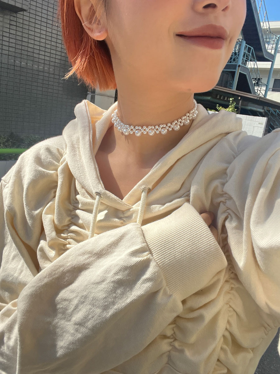 不同大小珍珠混合,使其活潑動人/ 可調校長短做頸鏈或者chocker /