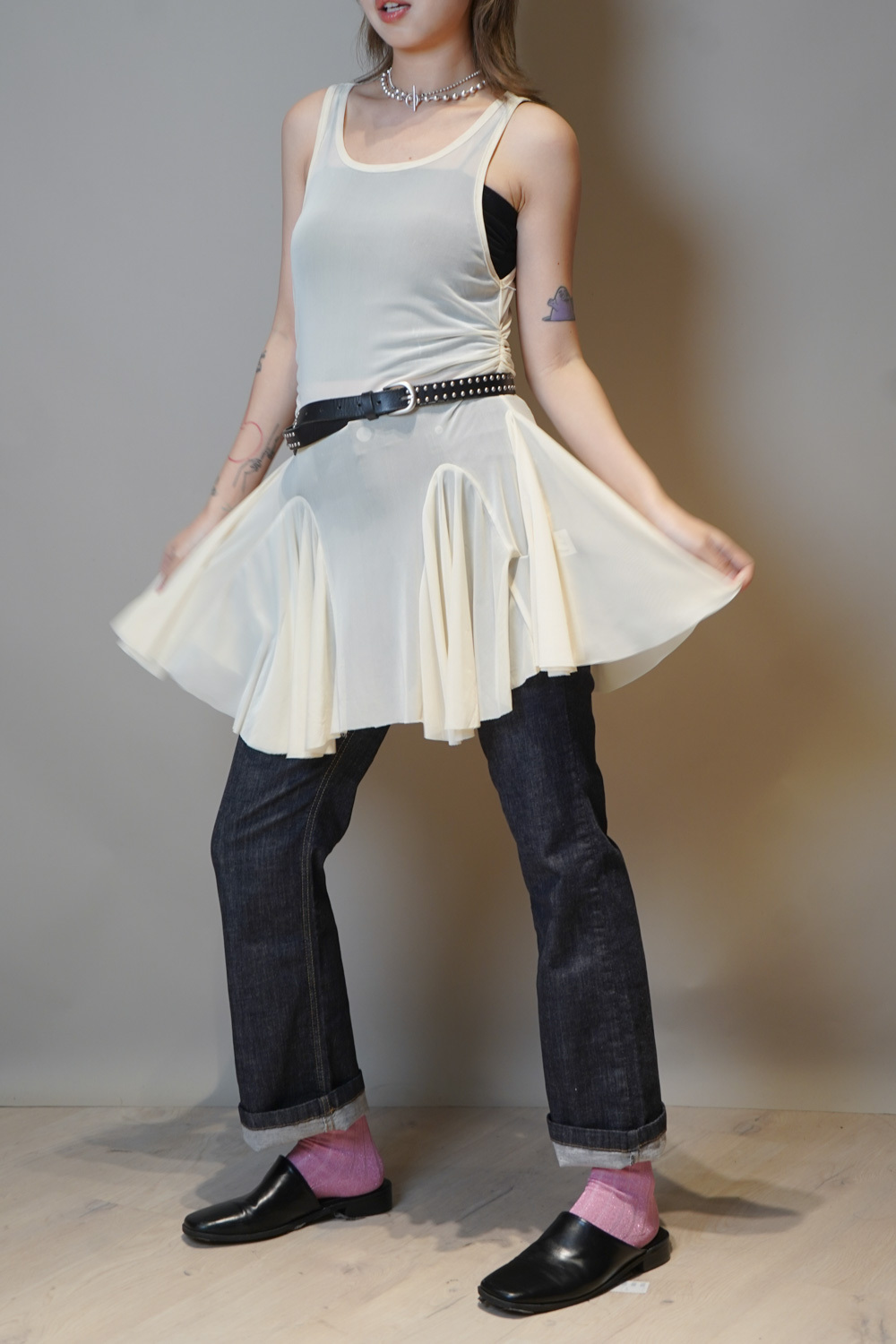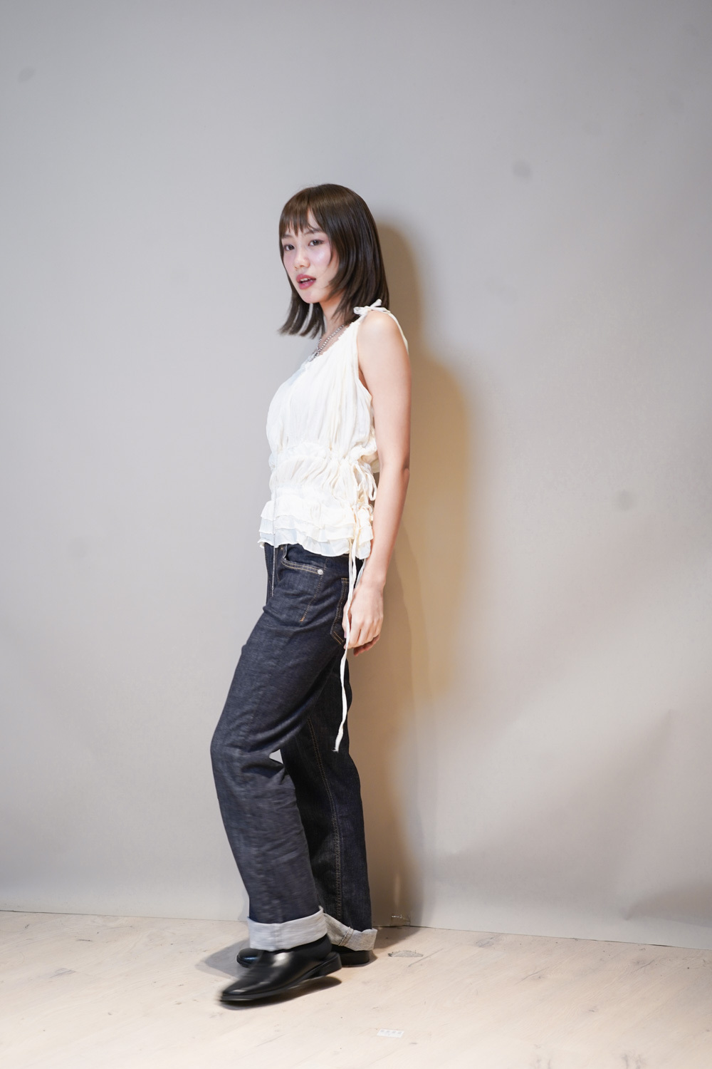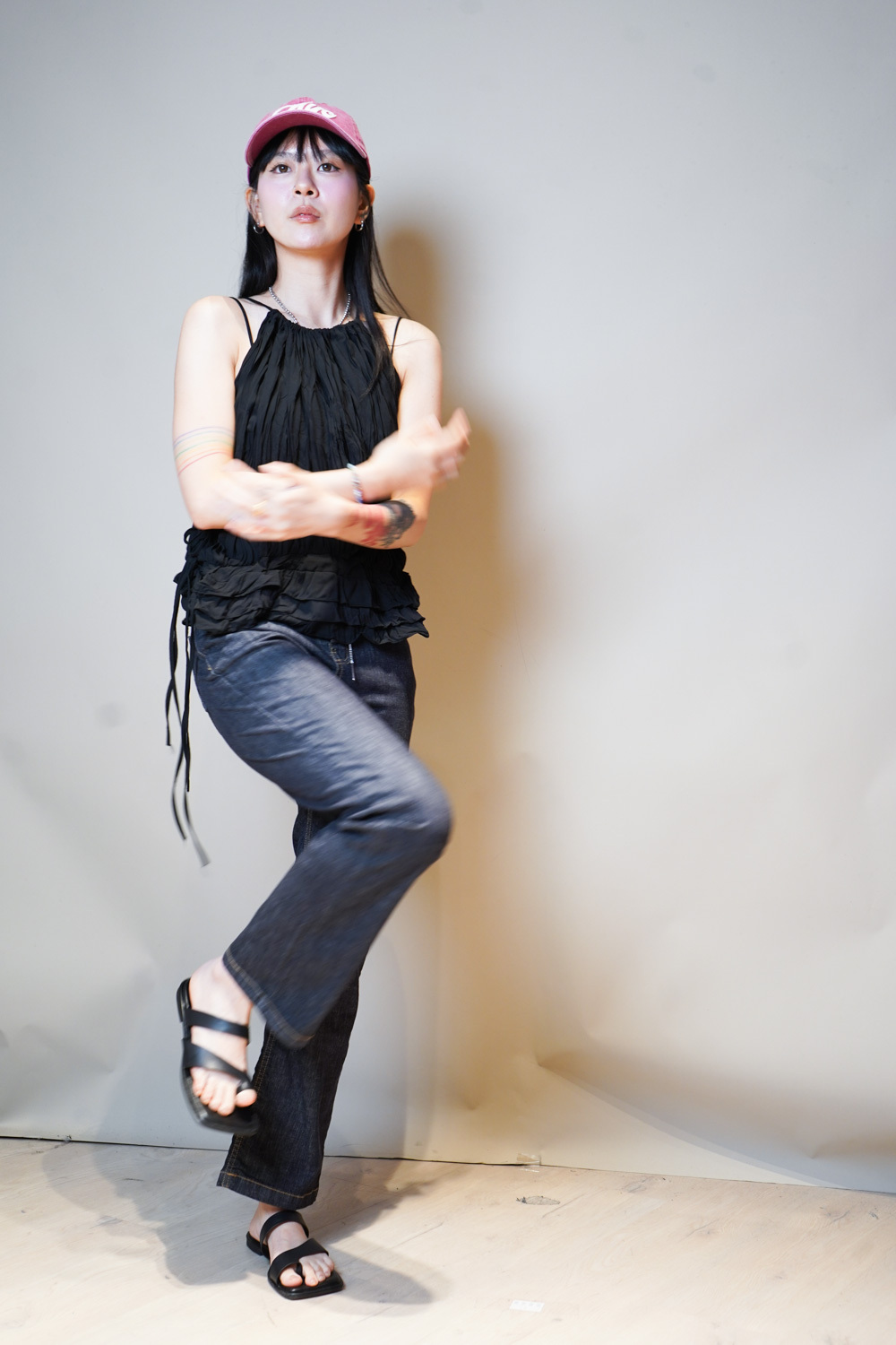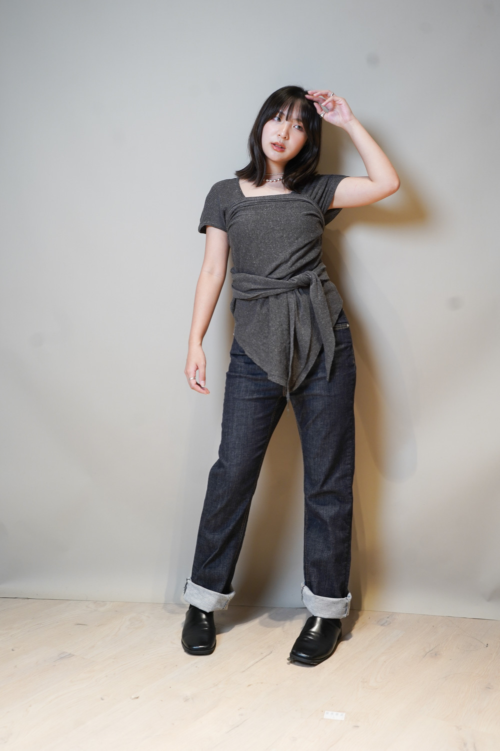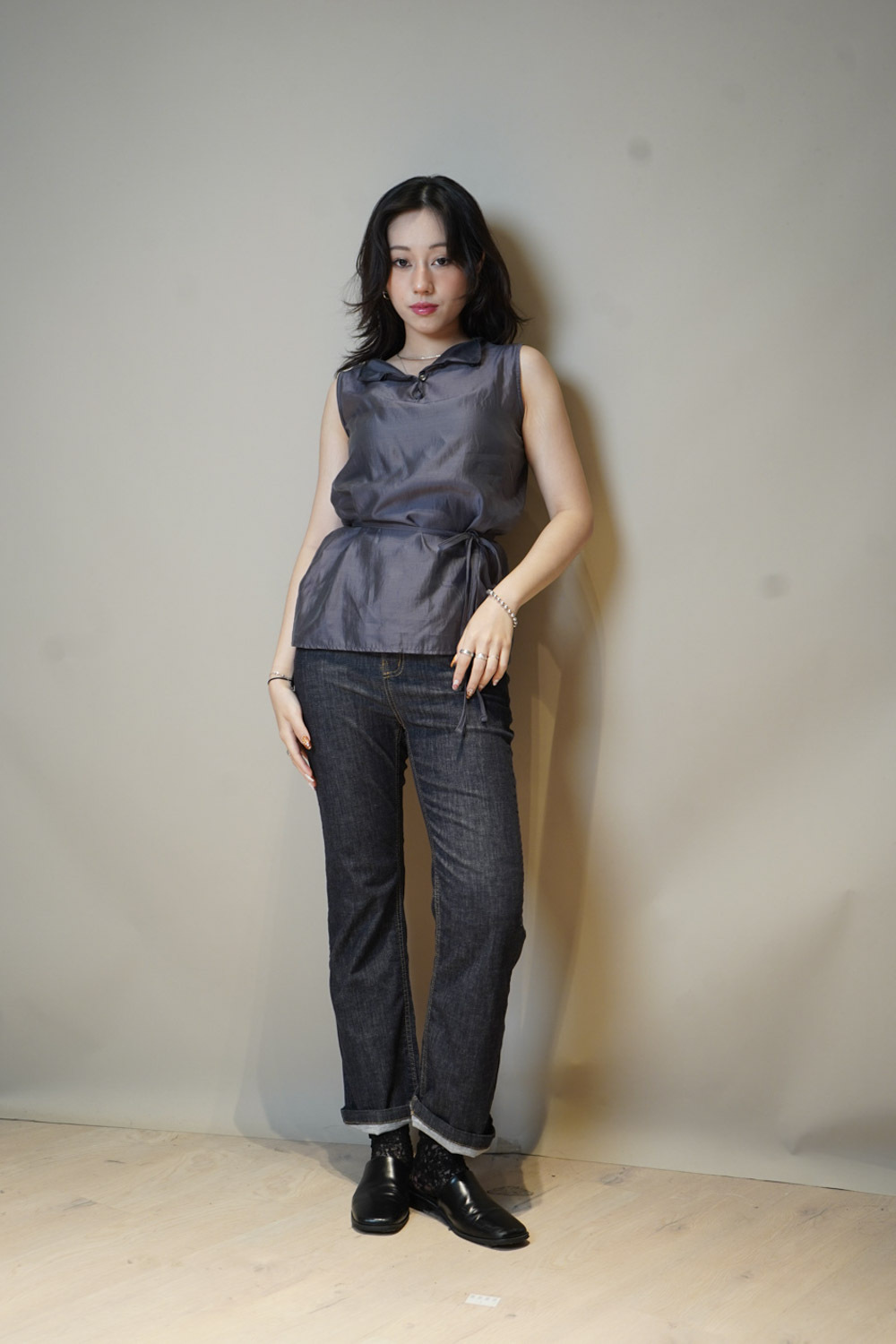 S: Waist: 68cm (27”) / Hip: 83-104cm (32-41”) / Rise: 26.5cm / Length: 97cm / Thigh: 50-62cm / Hem: 42 cm