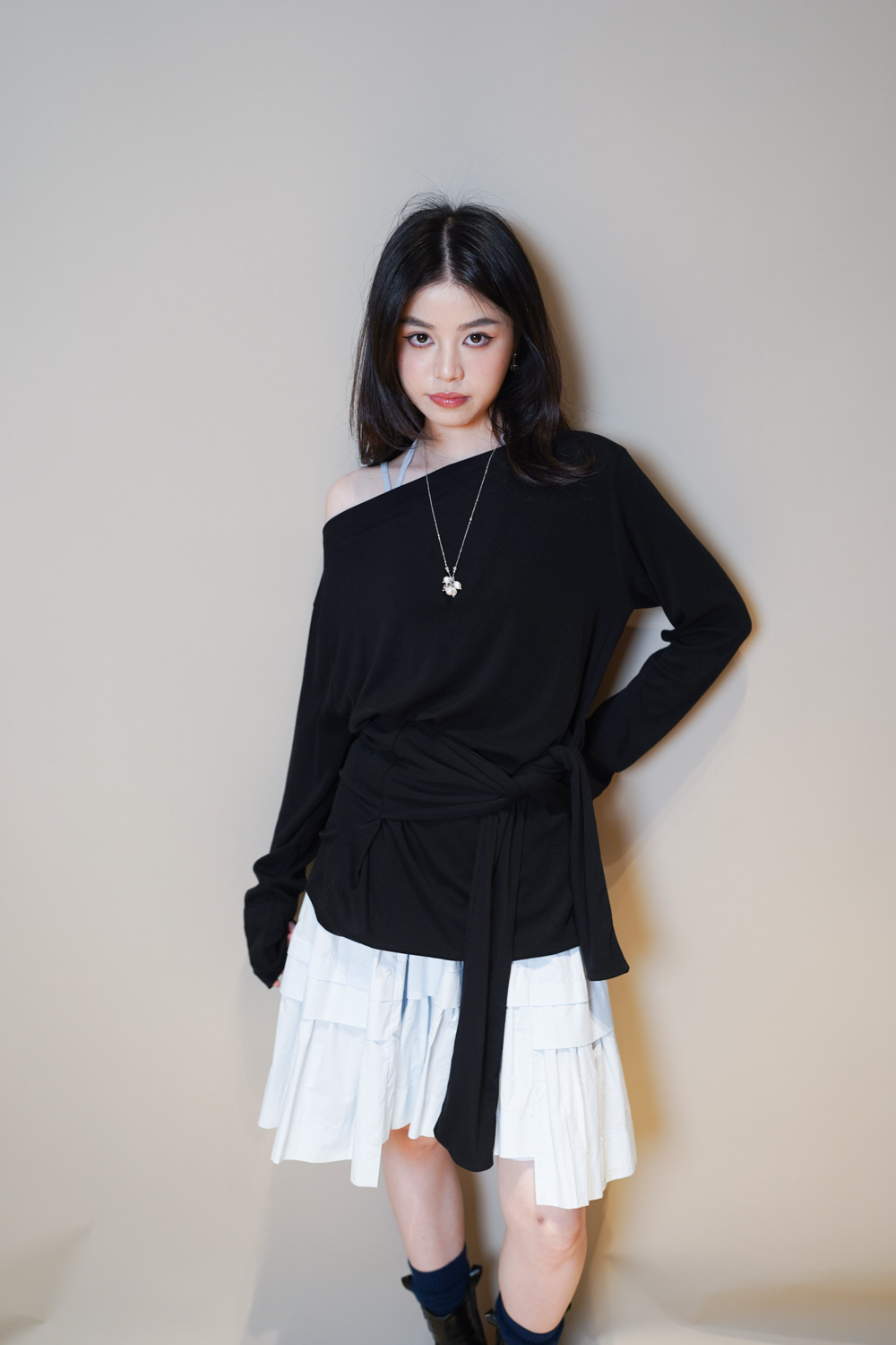 一字領設計/可斜膊 /展現女性線條美/