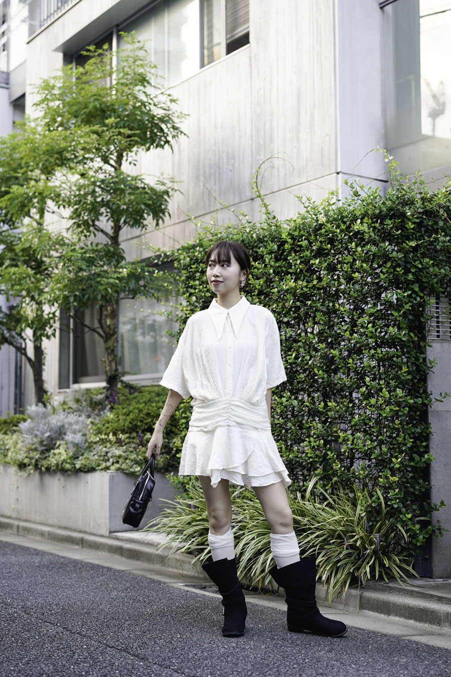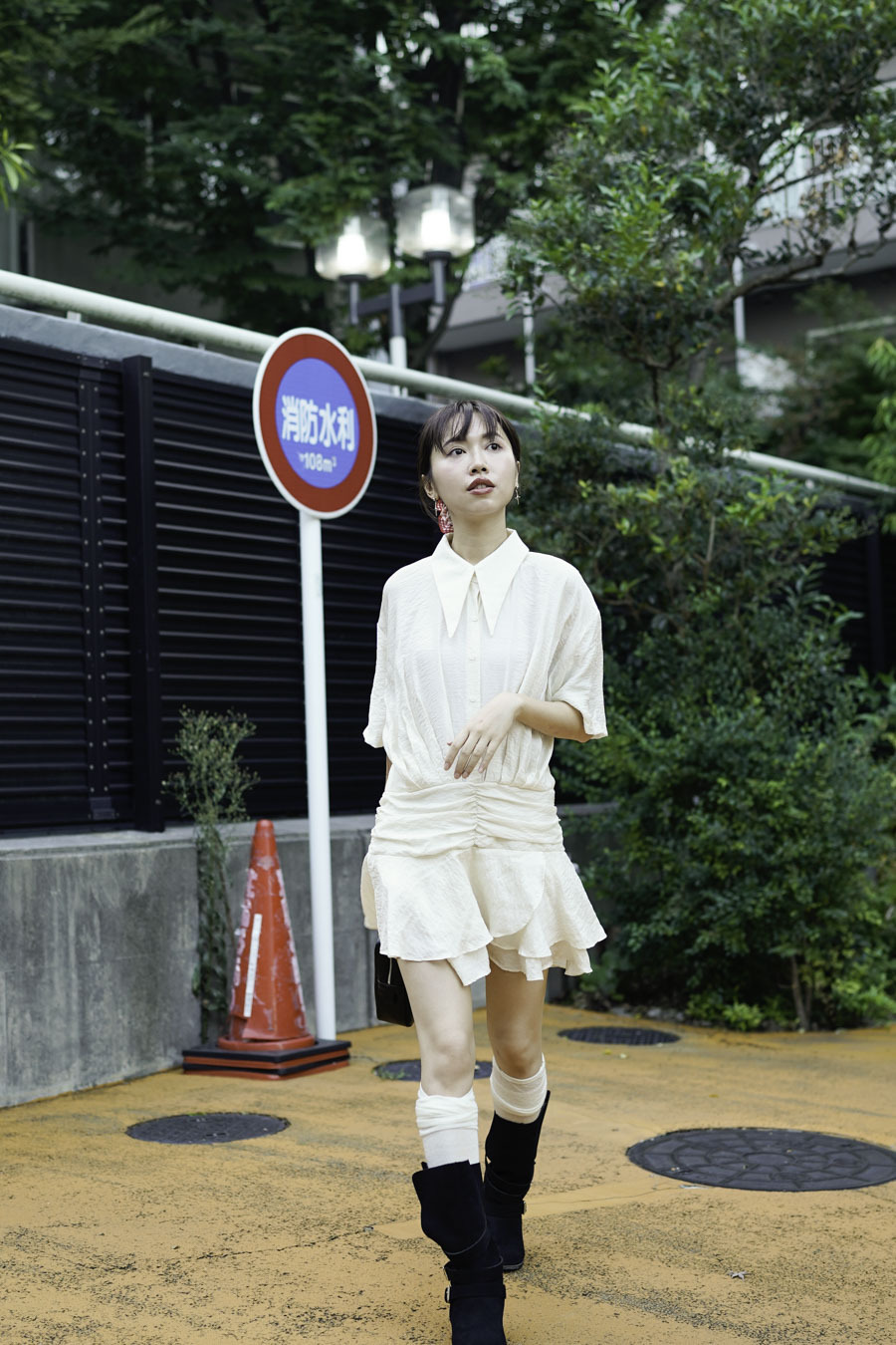 腰間Ruffle設計有亮點 修飾腰間線條 /