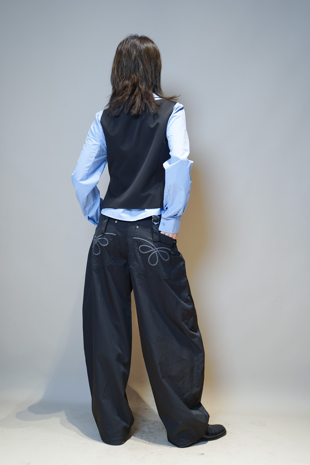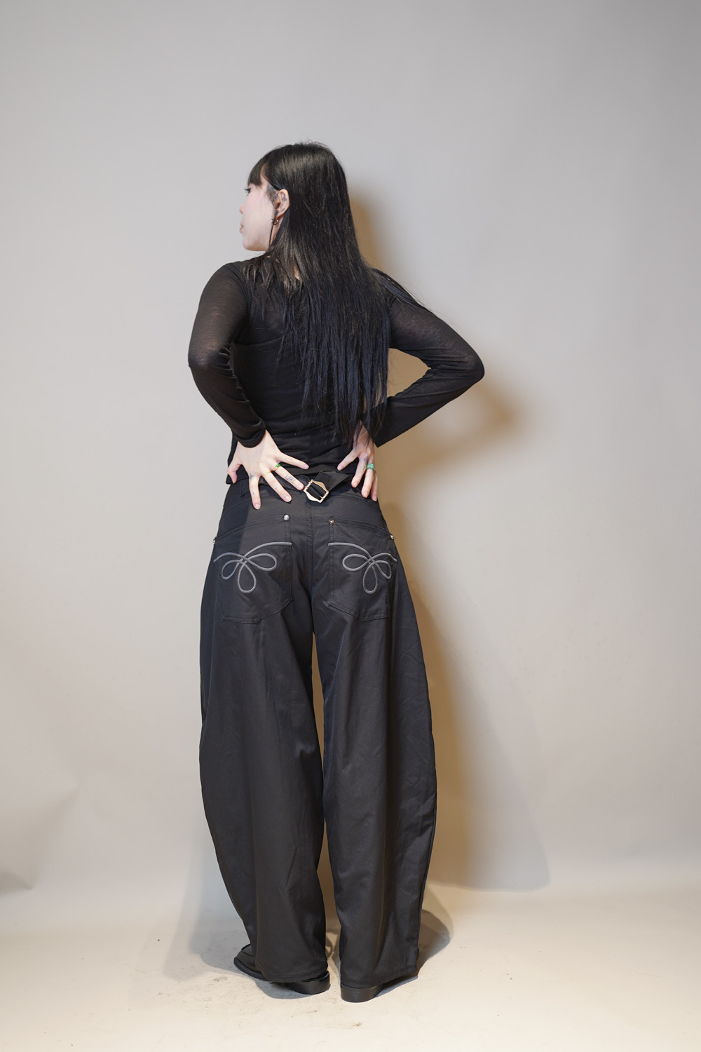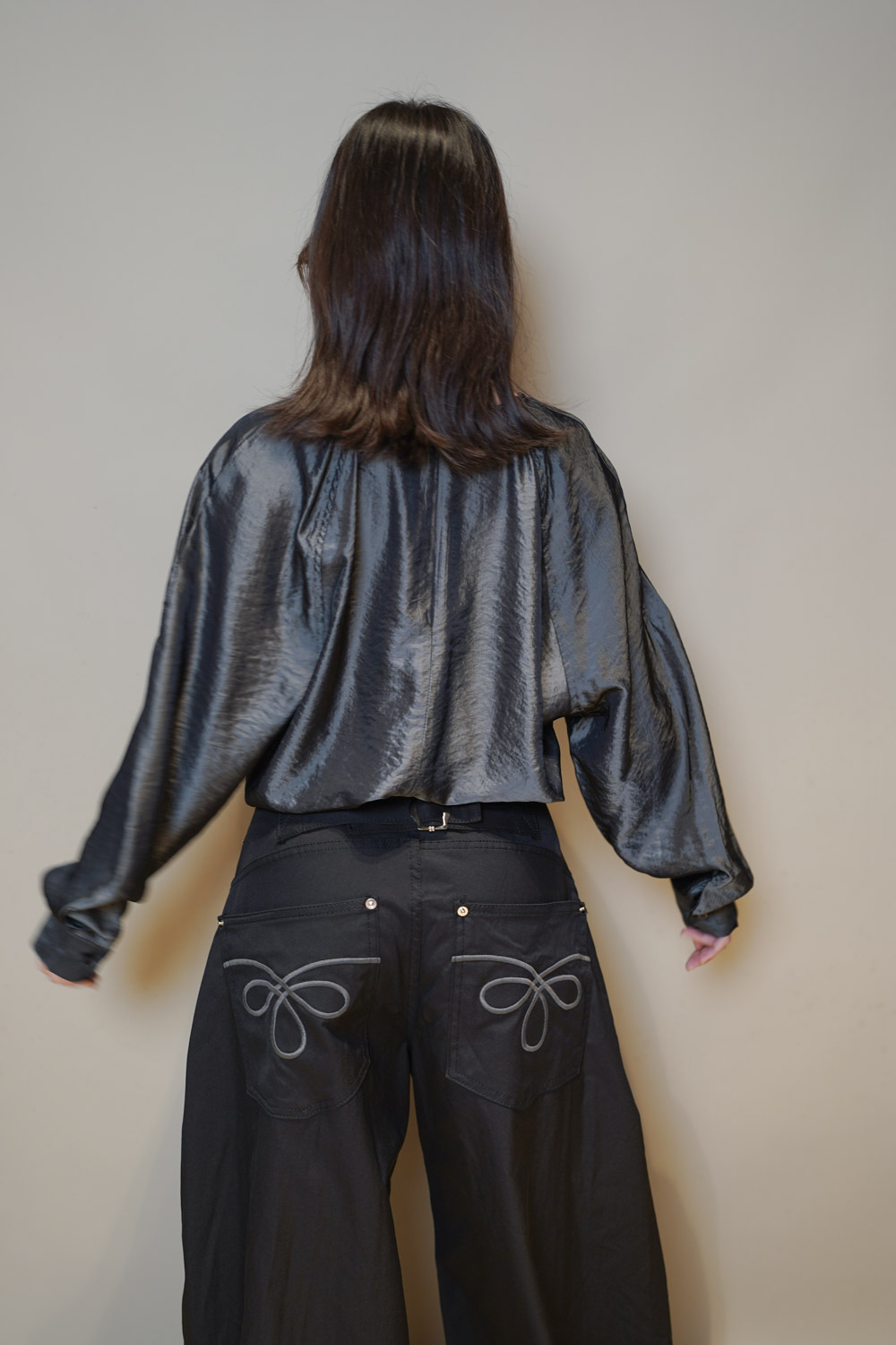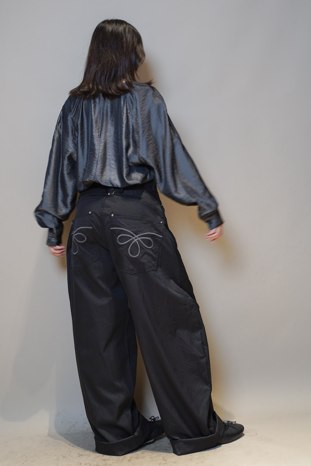 L:Waist: 78cm (30”) / Hip: 114cm (44.4”) / Rise: 36cm / Length:107cm / Thigh:36 cm / Hem:26 cm