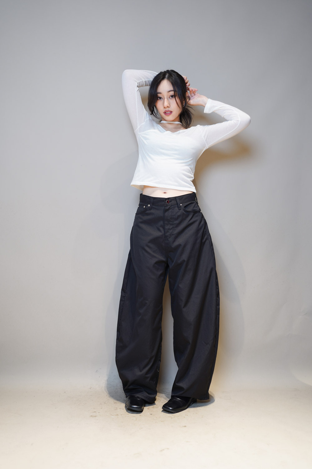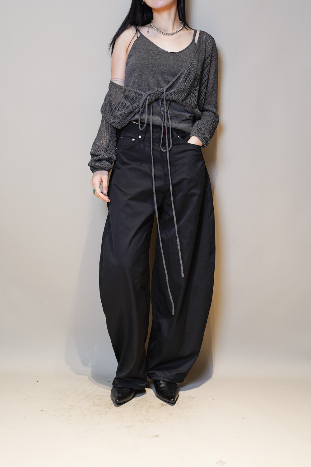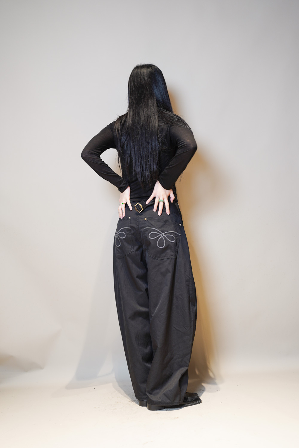 L:Waist: 78cm (30”) / Hip: 114cm (44.4”) / Rise: 36cm / Length:107cm / Thigh:36 cm / Hem:26 cm