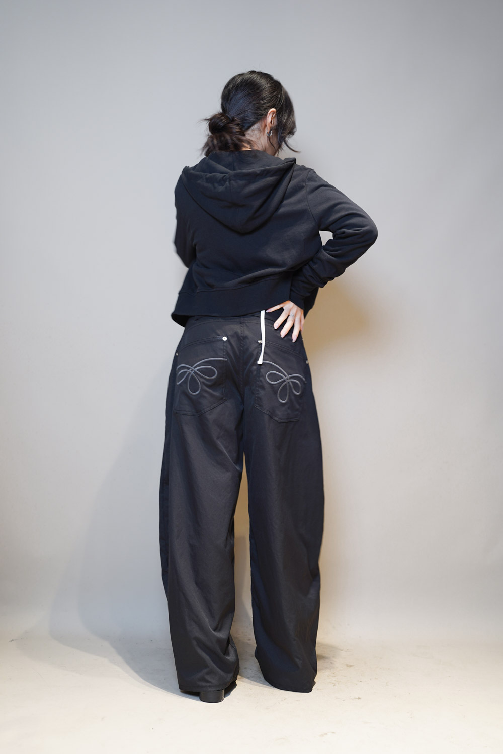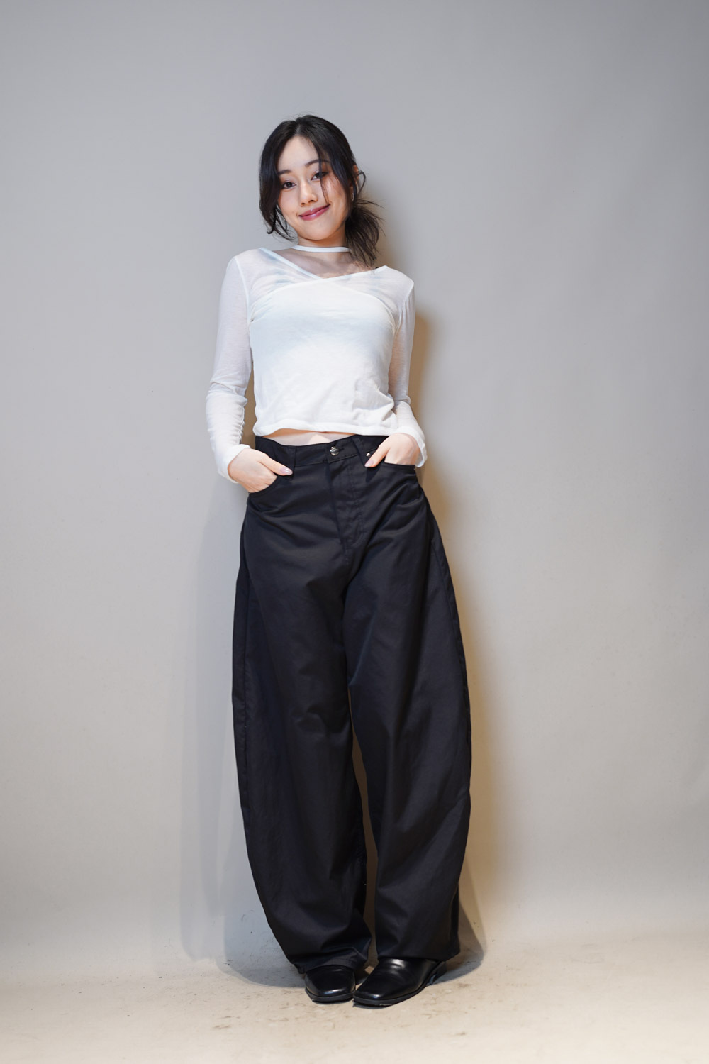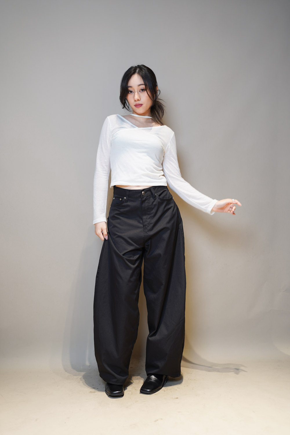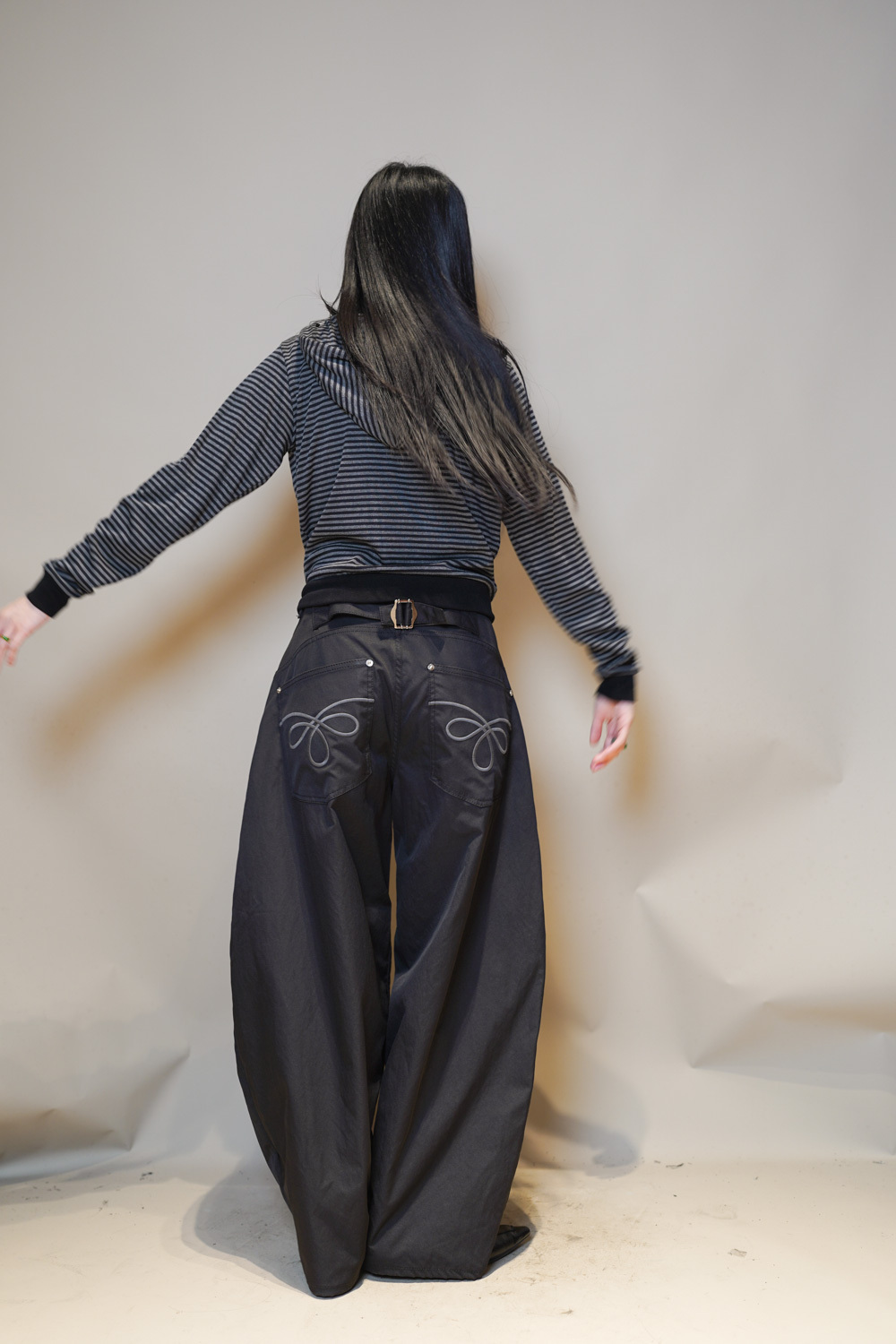 L:Waist: 78cm (30”) / Hip: 114cm (44.4”) / Rise: 36cm / Length:107cm / Thigh:36 cm / Hem:26 cm