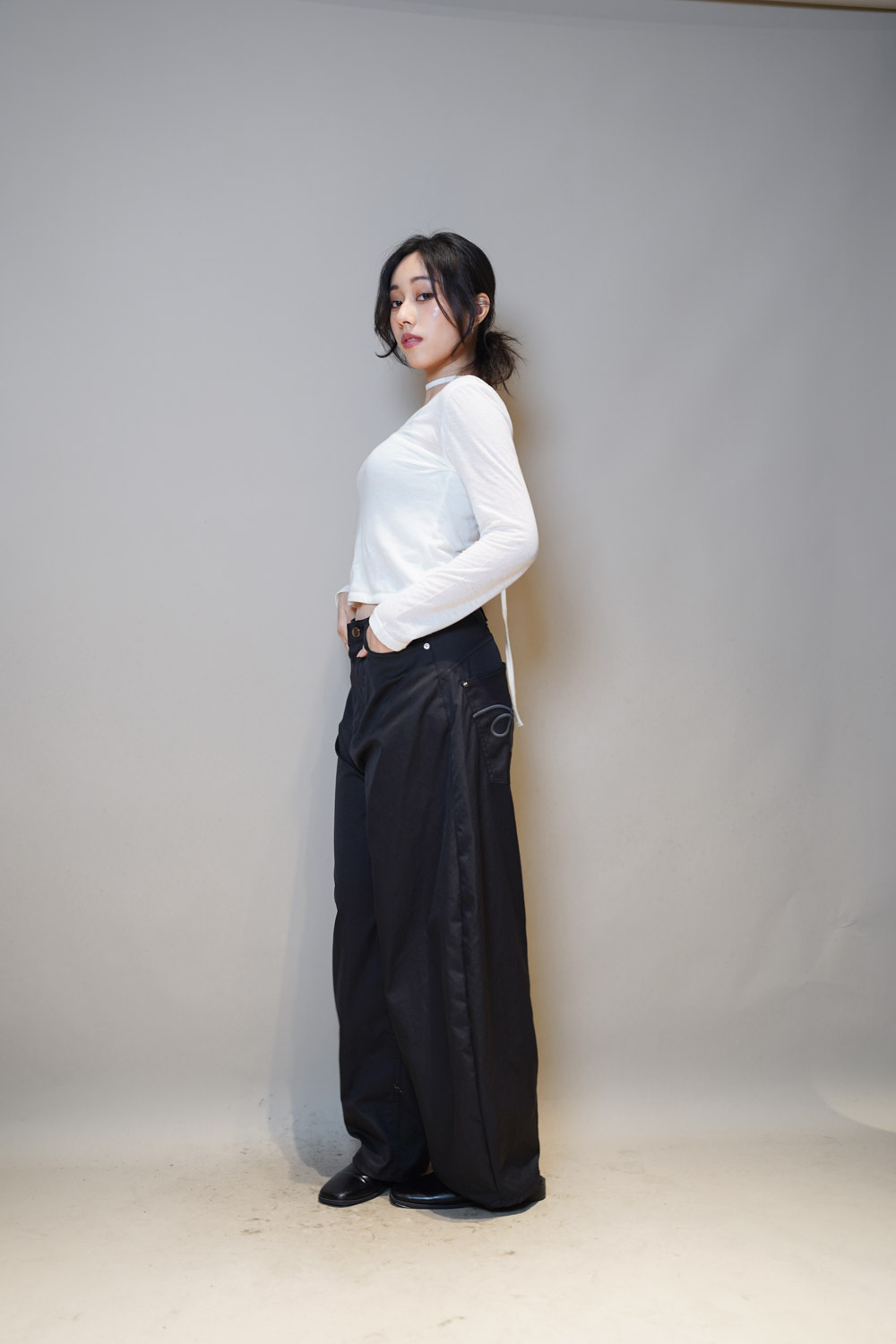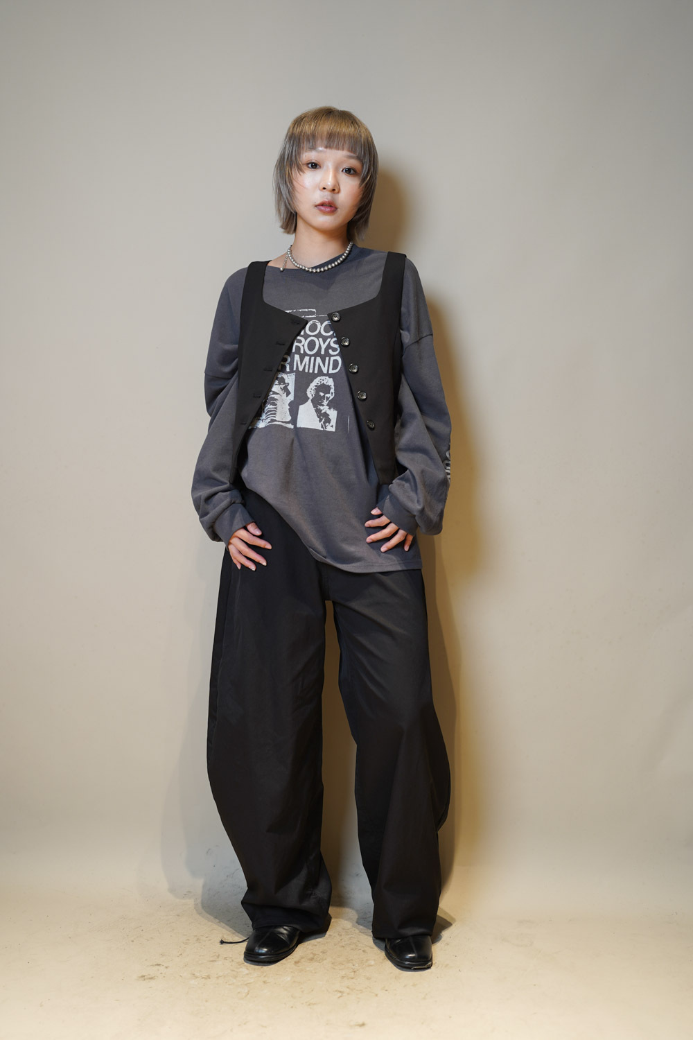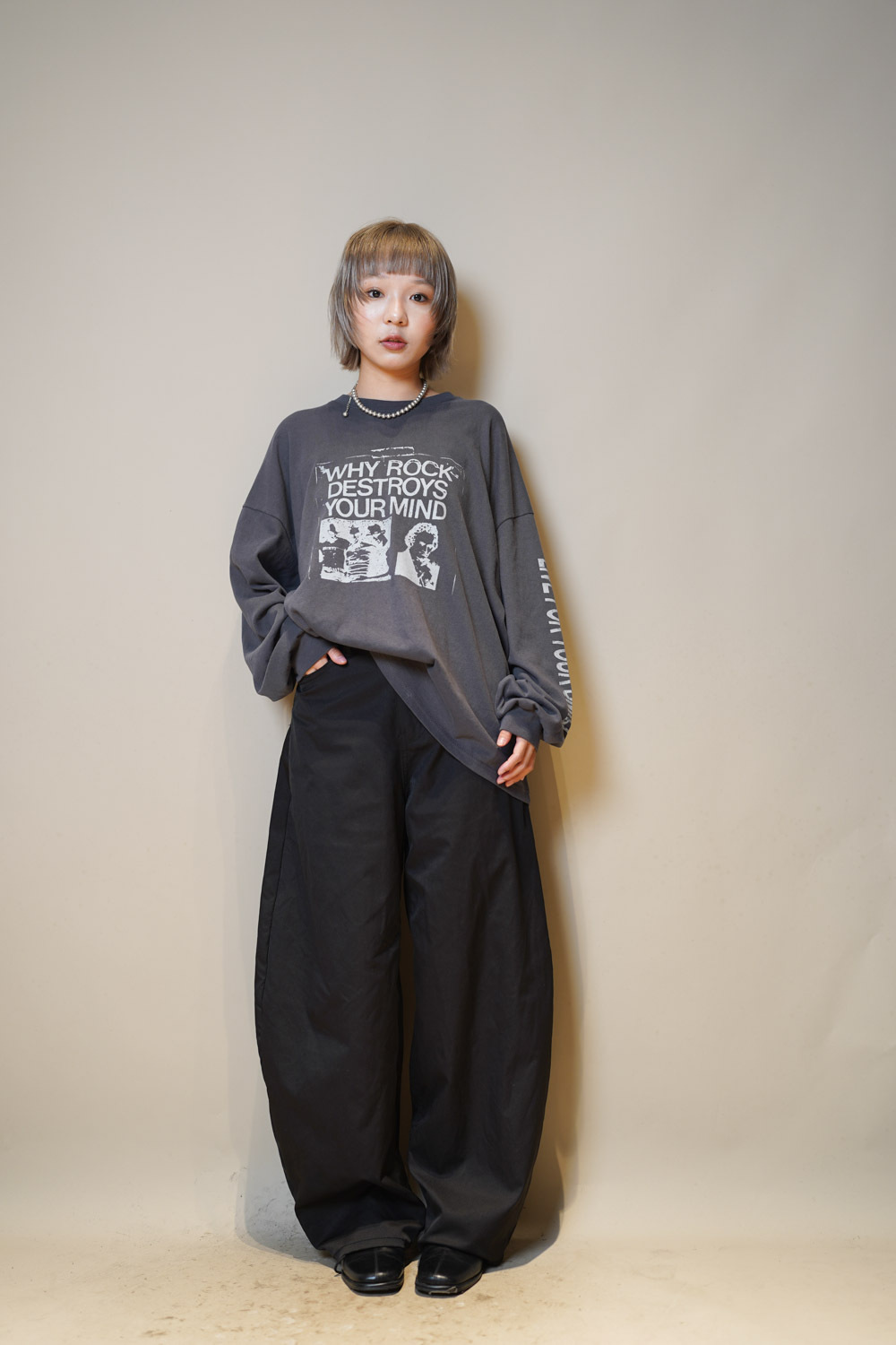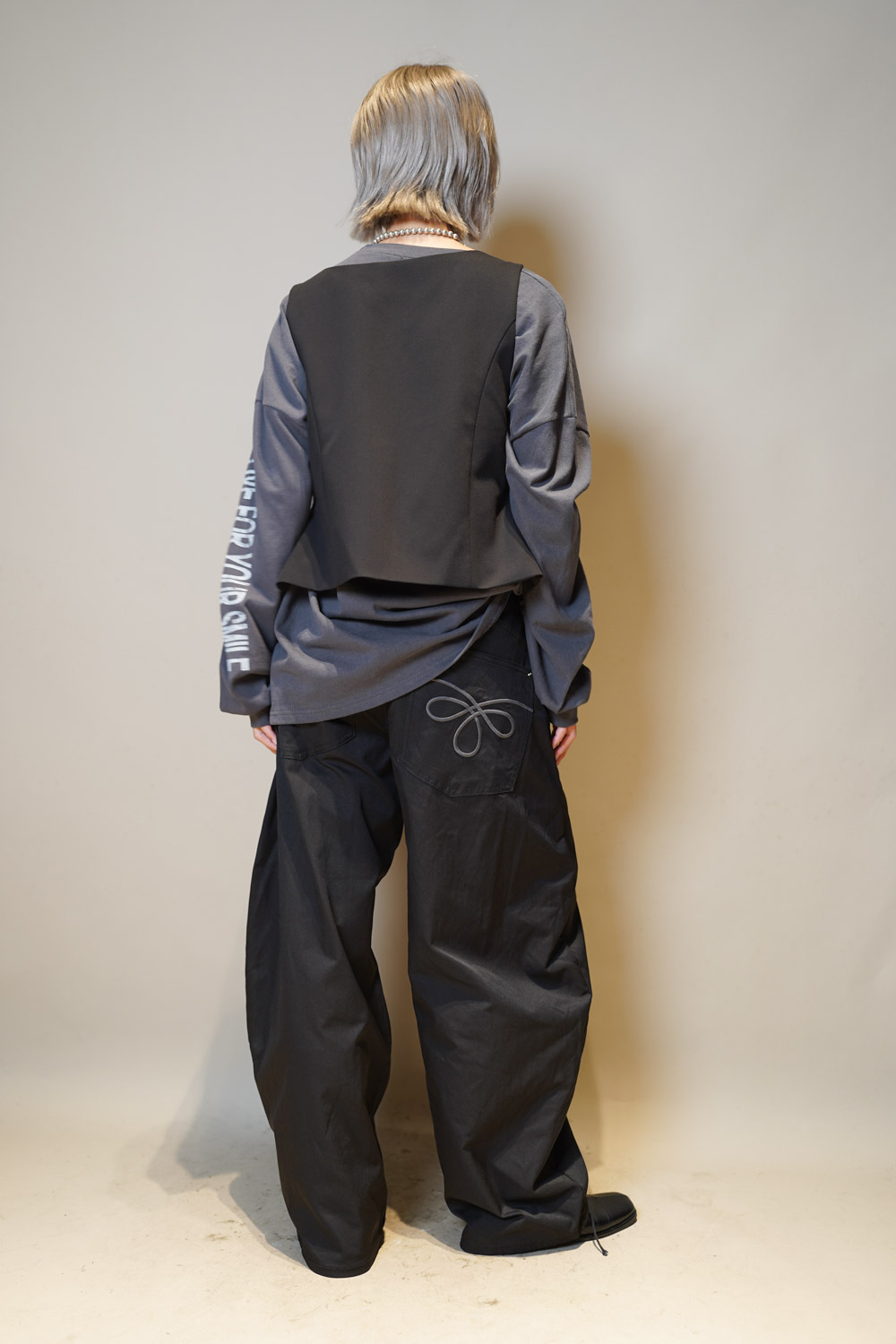 Love~Pocket graphic slim baggy pants (BEIGE/BLACK)- S/M/L