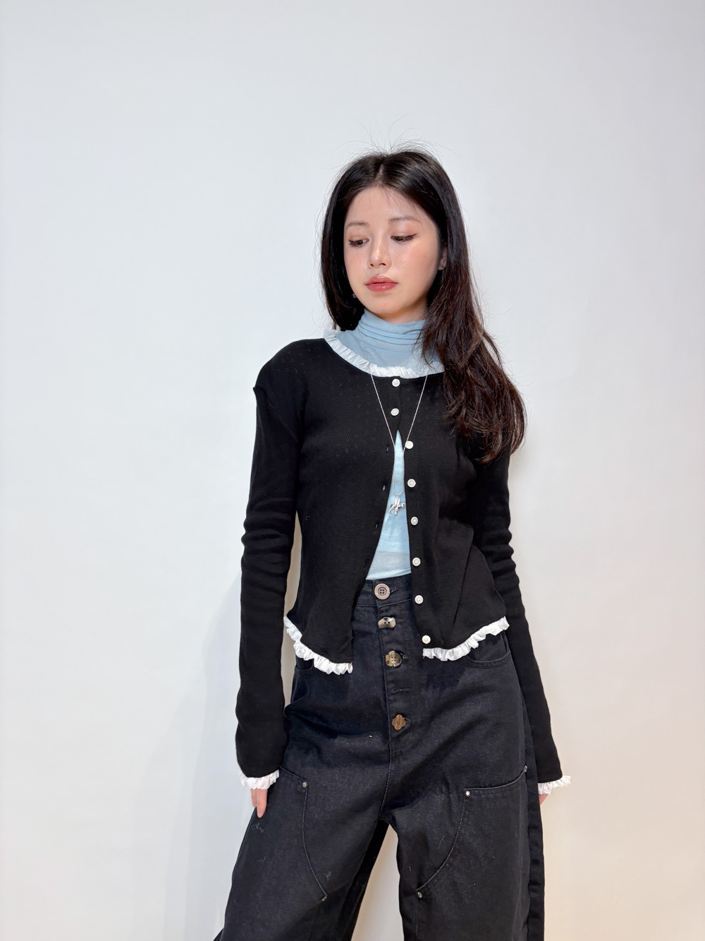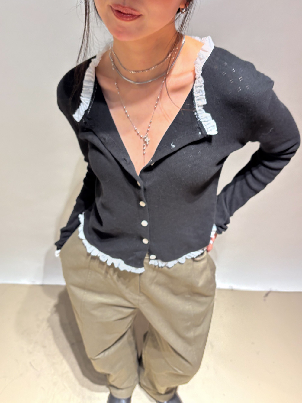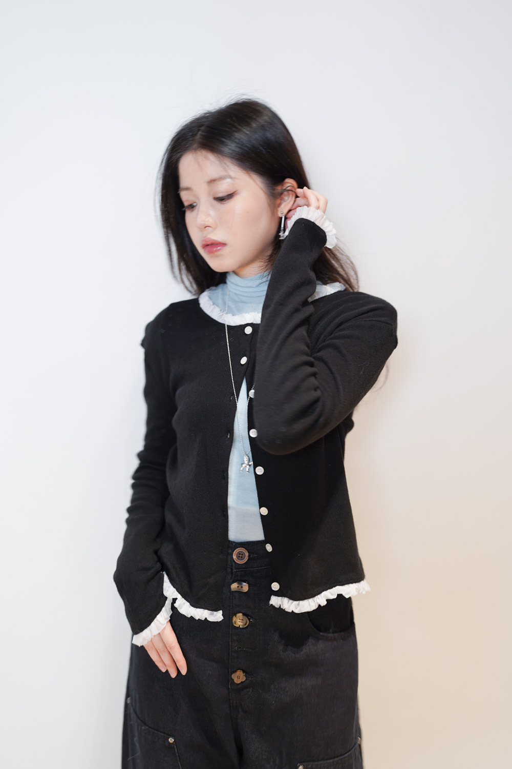內搭 保暖且露出ruffle 邊 輕鬆疊穿/外搭當外套 低調但細節感滿滿