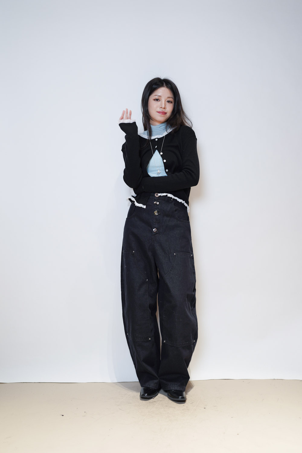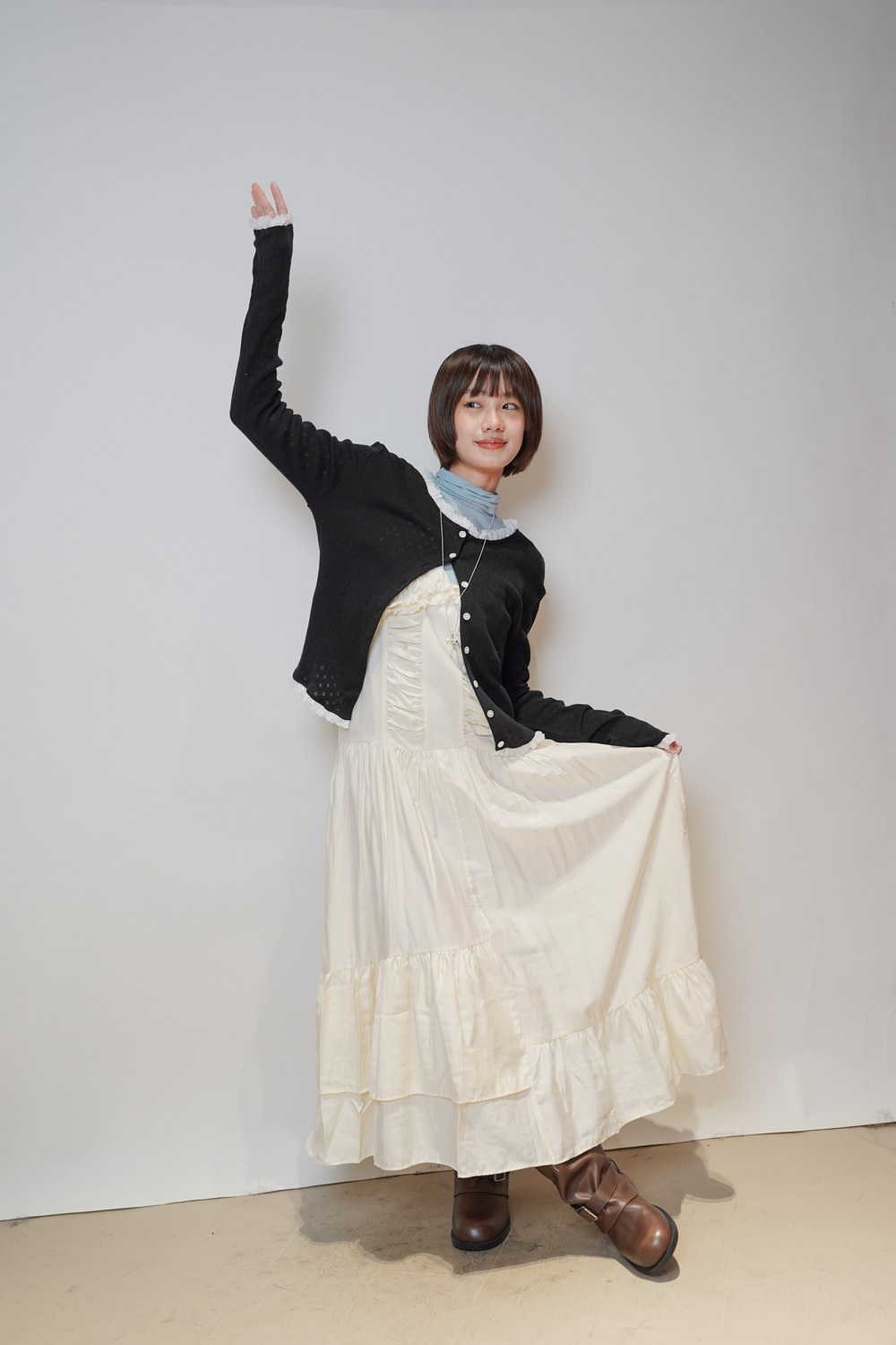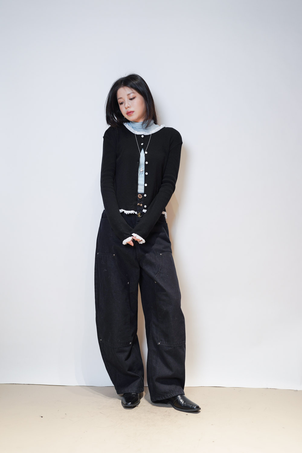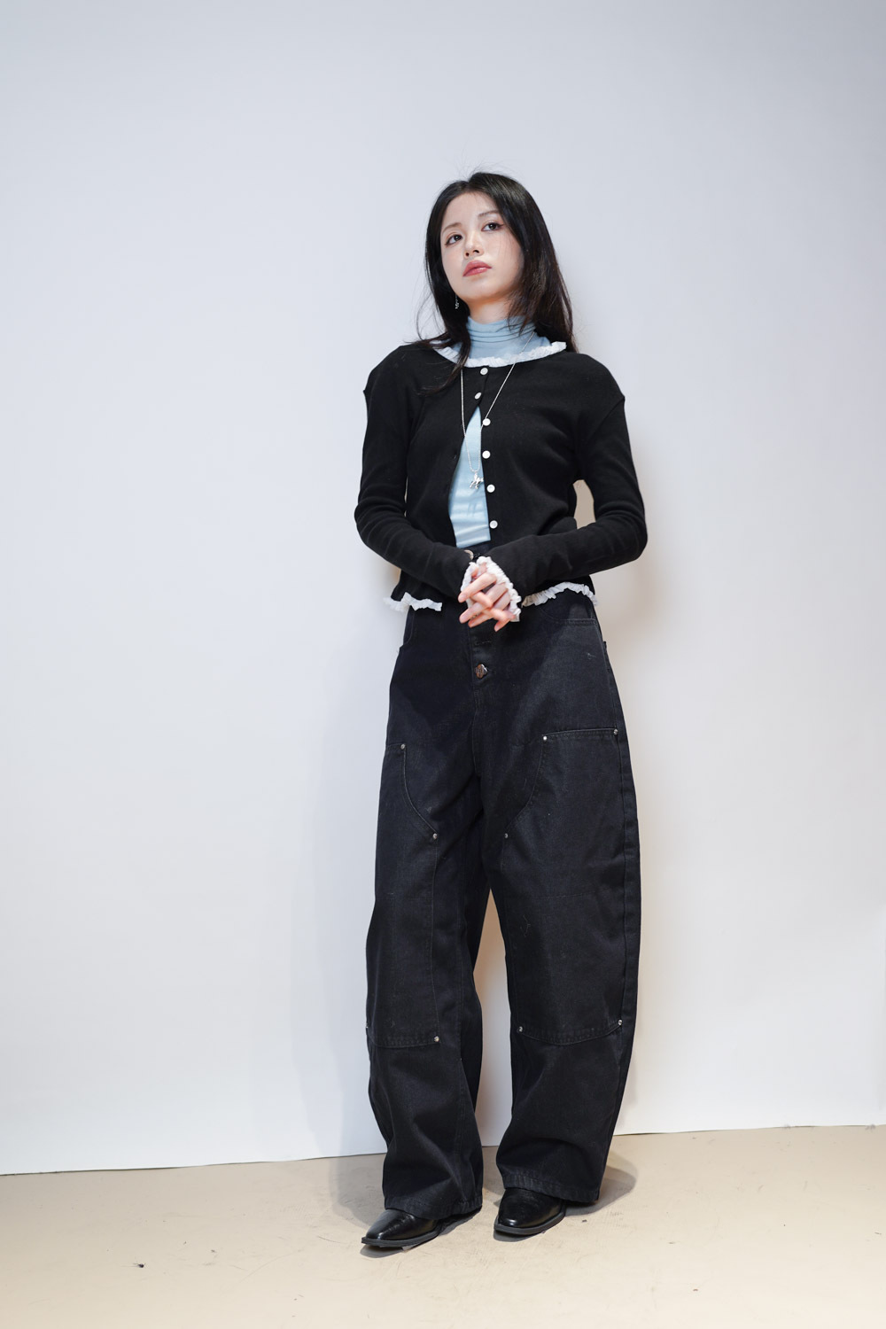 內搭 保暖且露出ruffle 邊 輕鬆疊穿/外搭當外套 低調但細節感滿滿