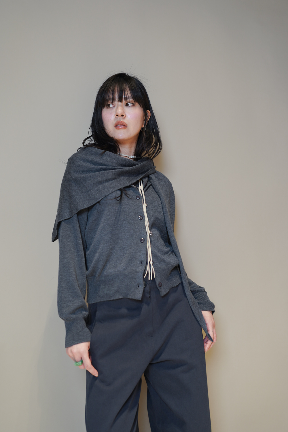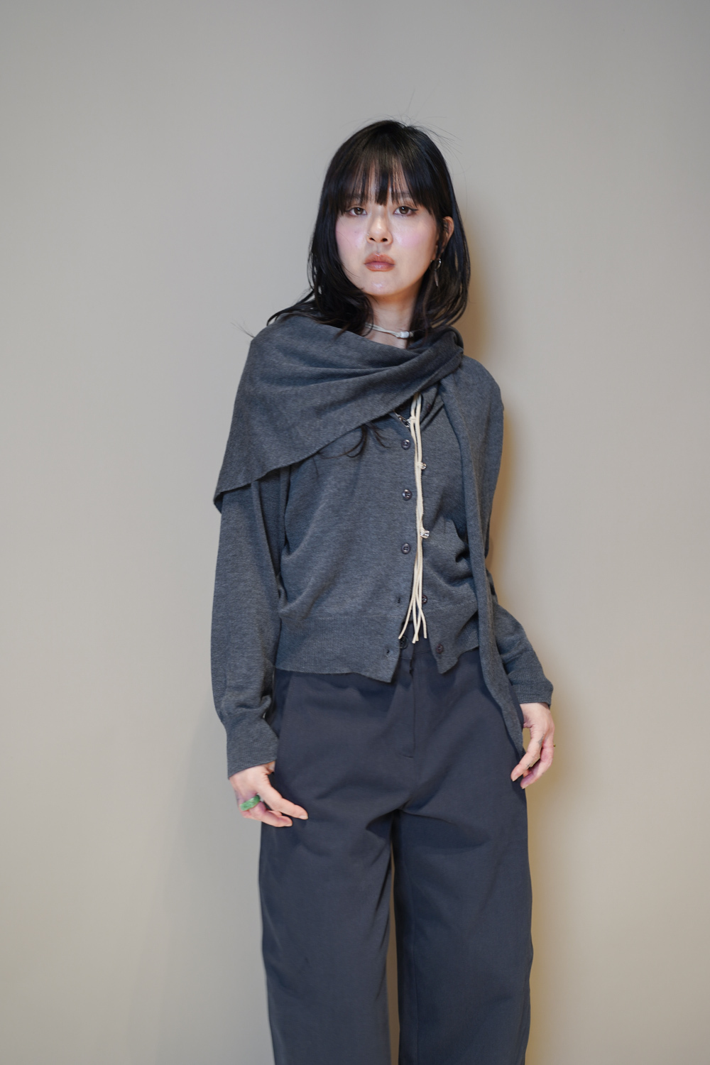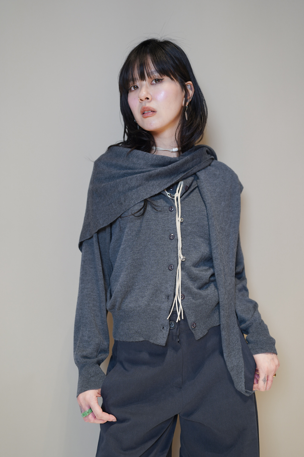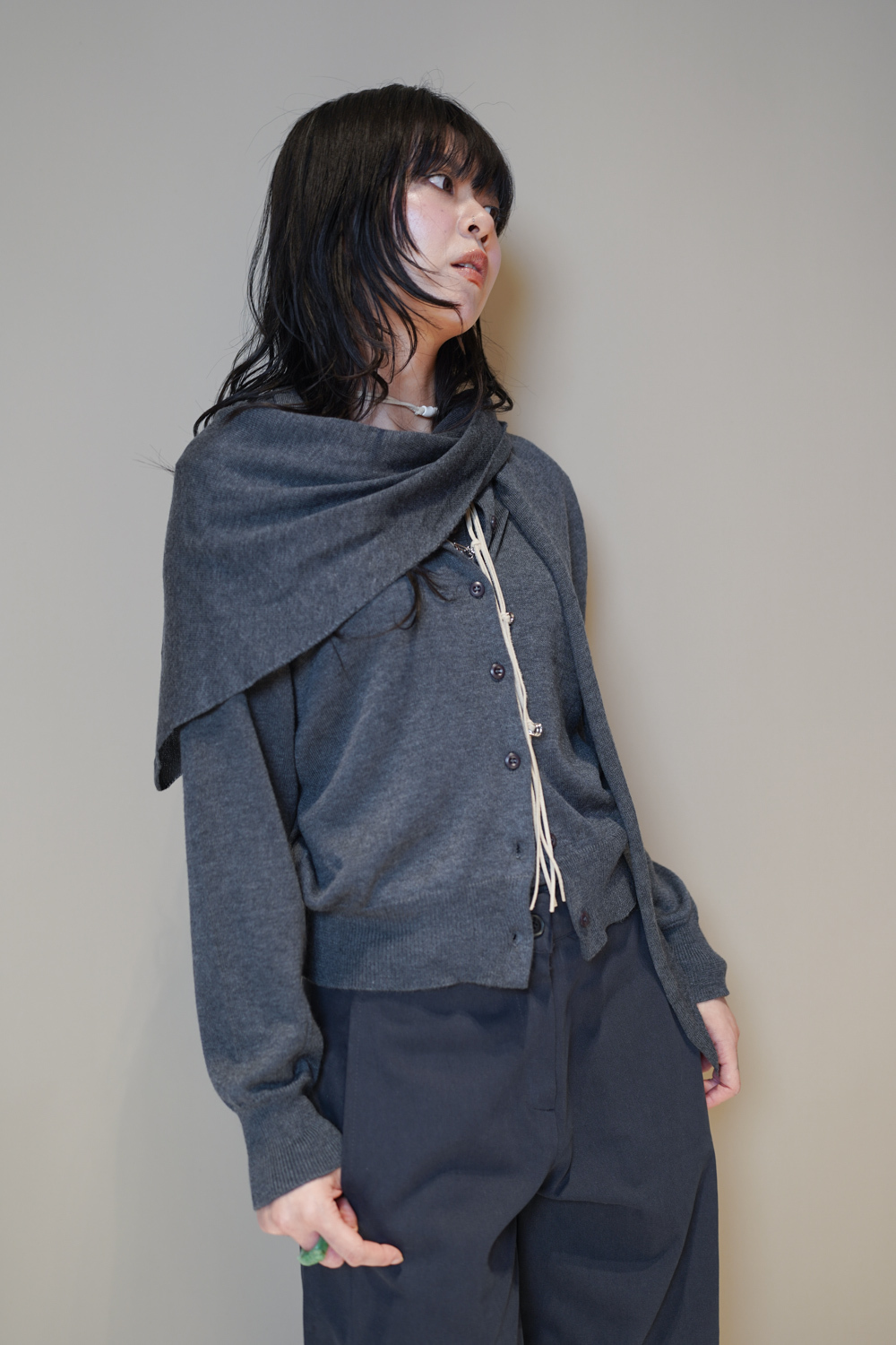 Love~Scarf set cardigan (GREY/BLACK) - wool 6%