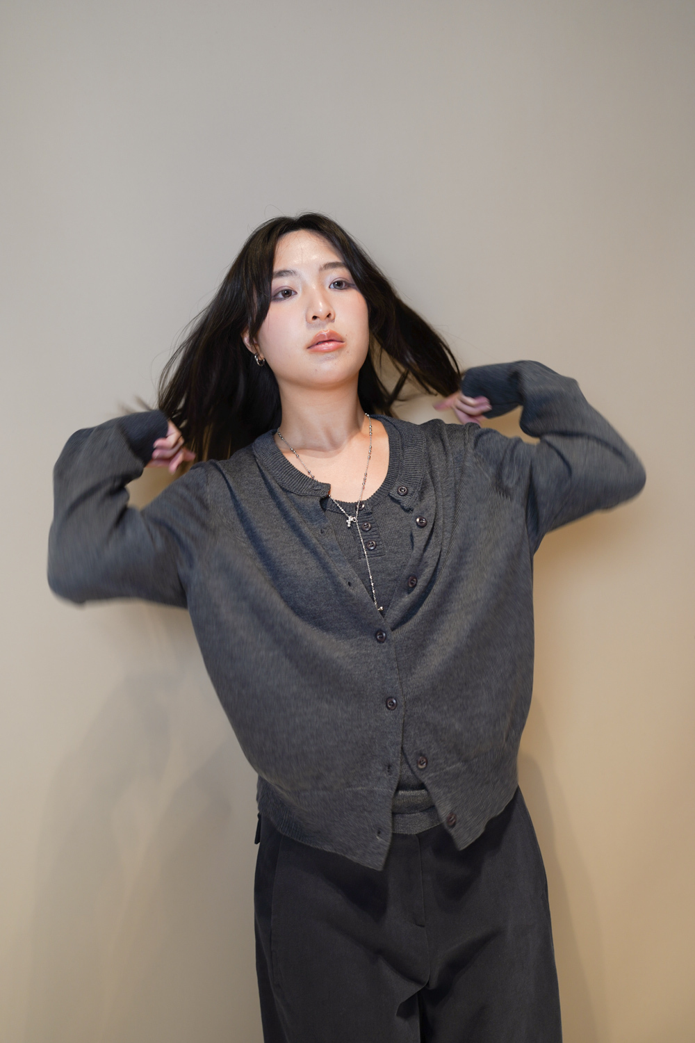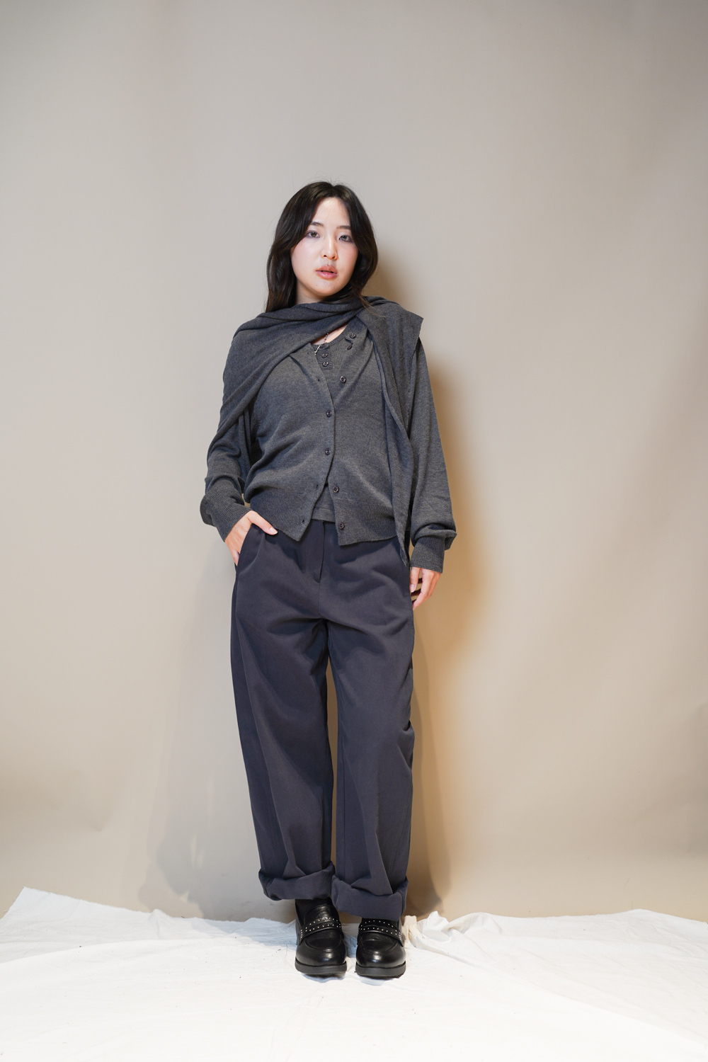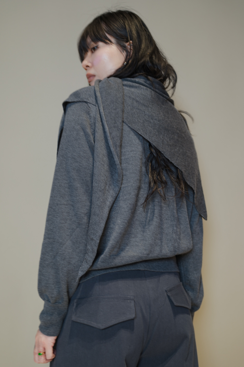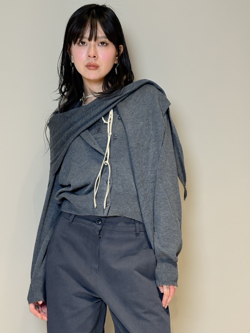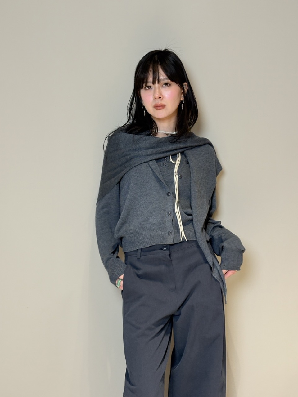 Love~Scarf set cardigan (GREY/BLACK) - wool 6%