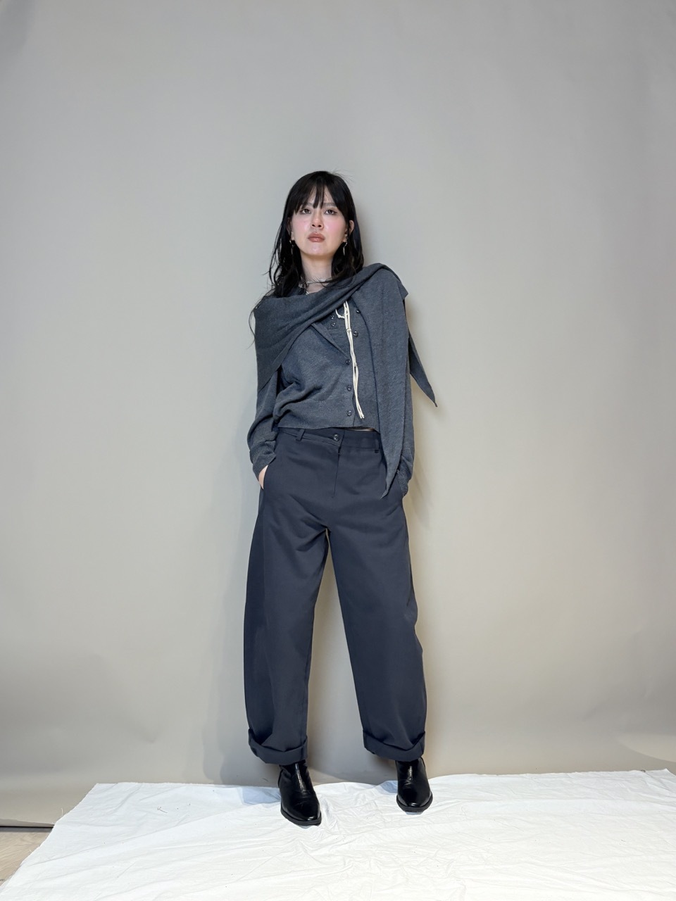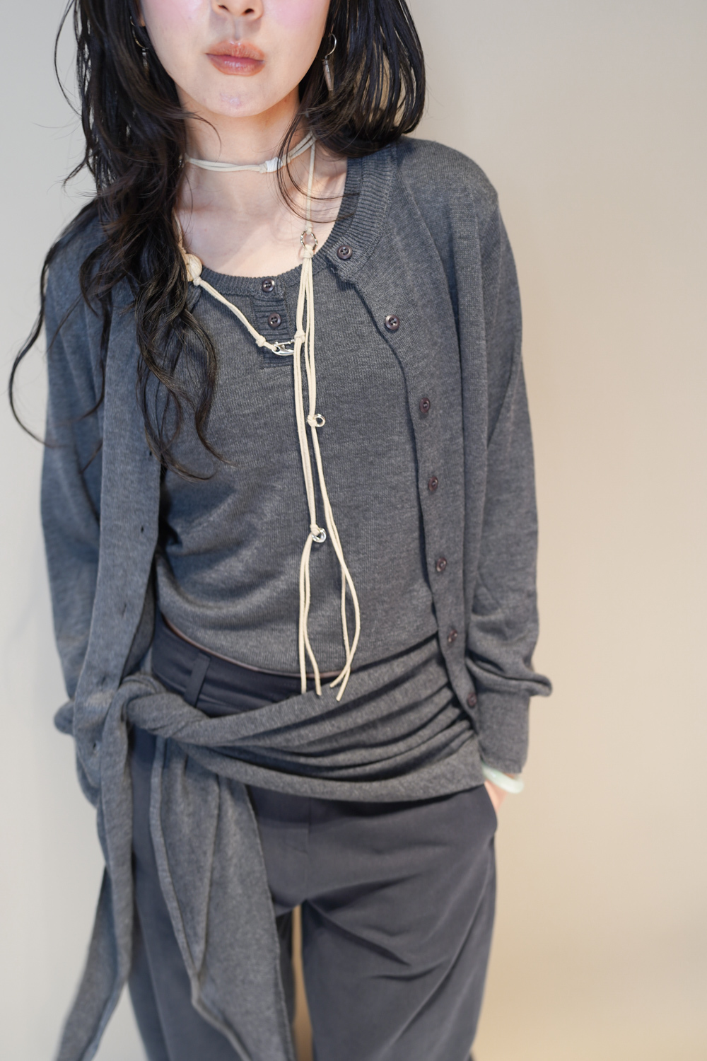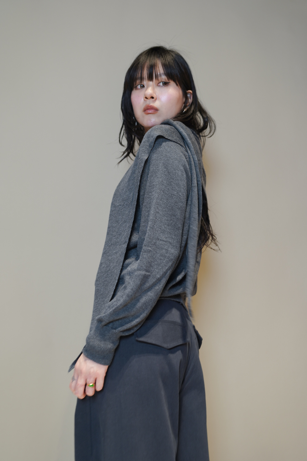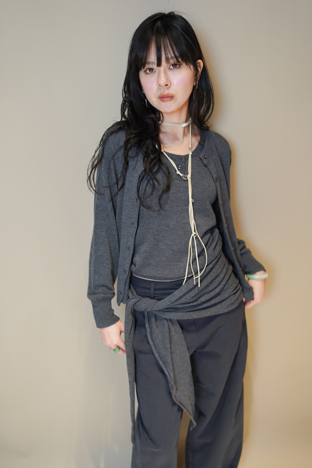 Love~Scarf set cardigan (GREY/BLACK) - wool 6%