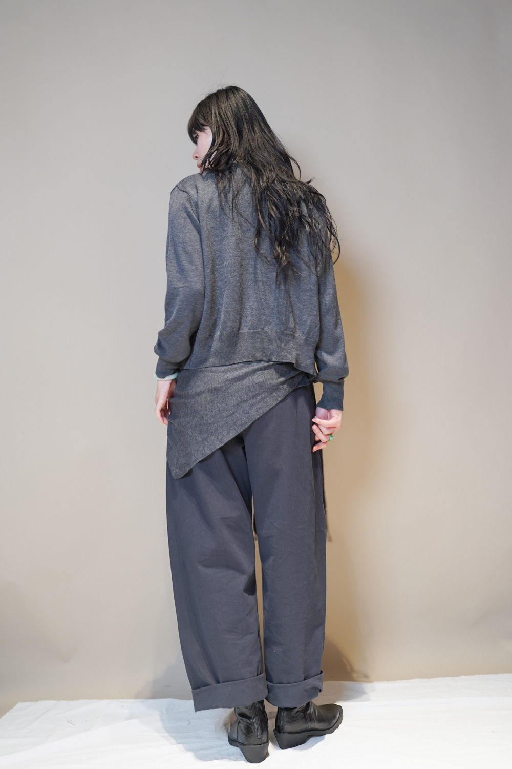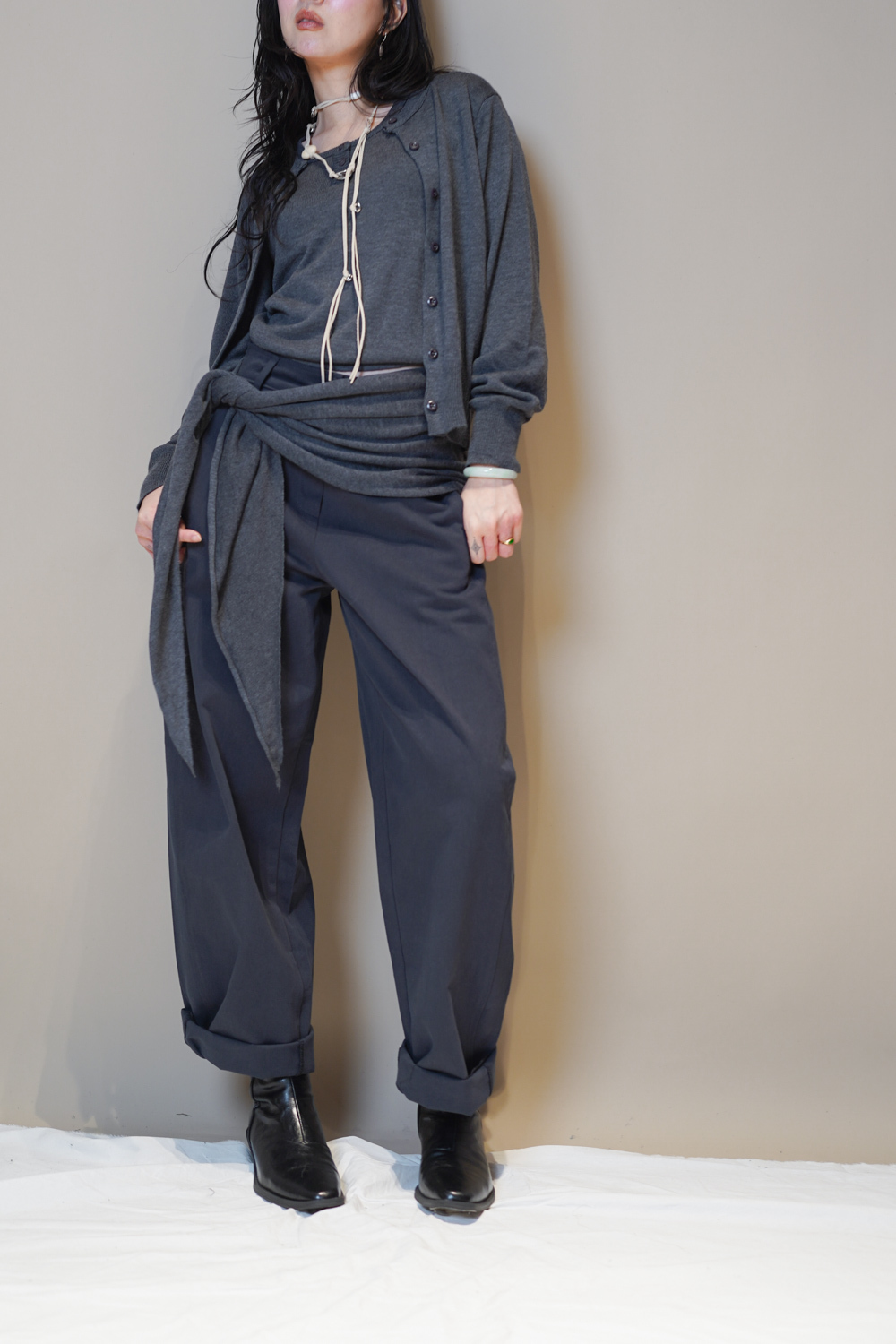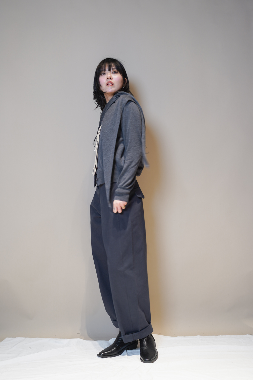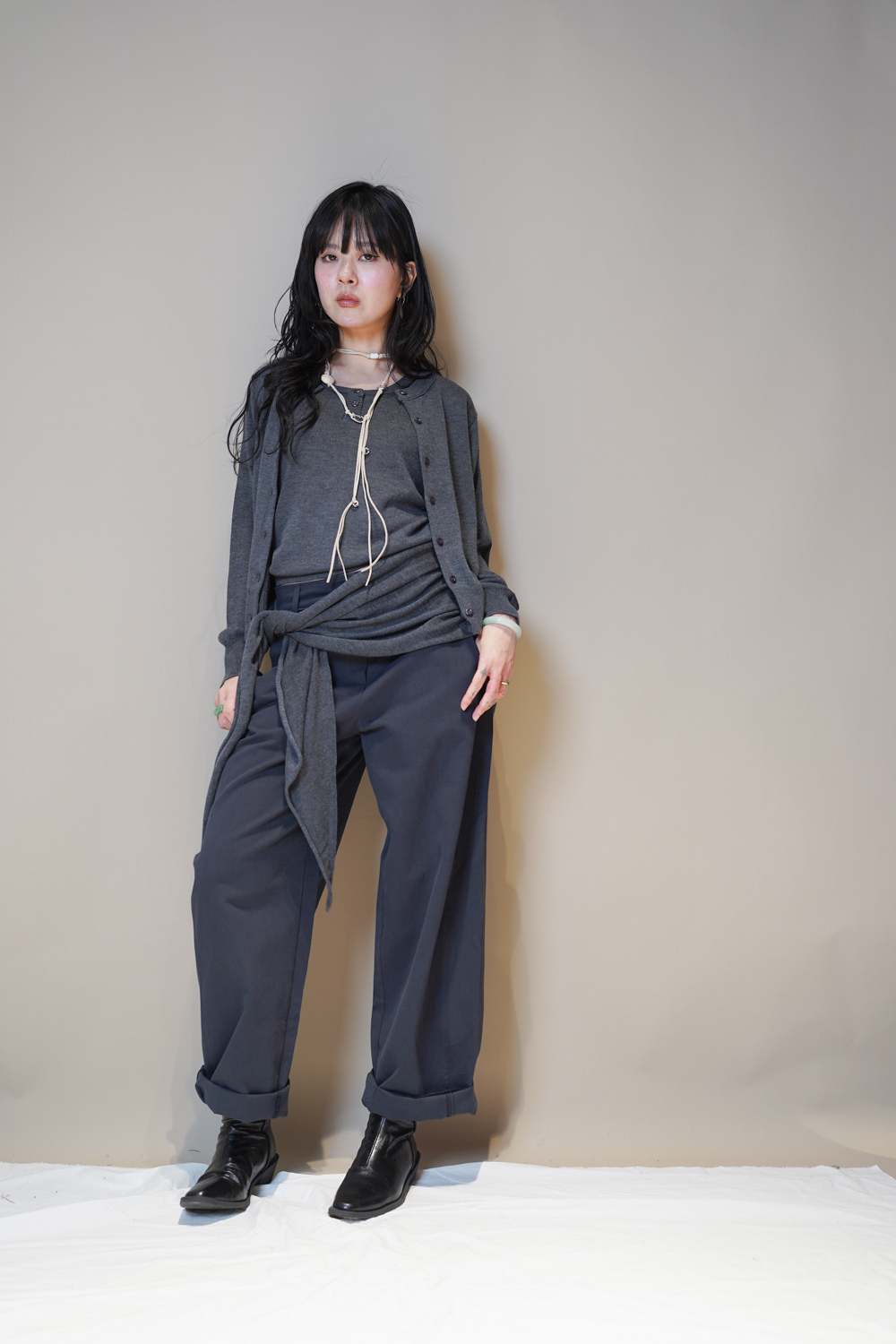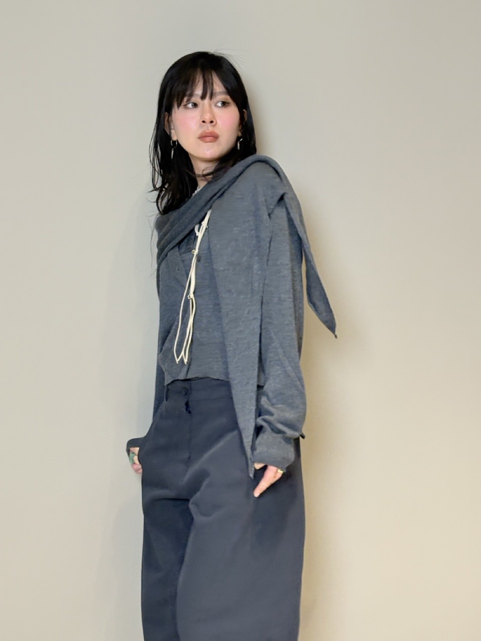 Love~Scarf set cardigan (GREY/BLACK) - wool 6%