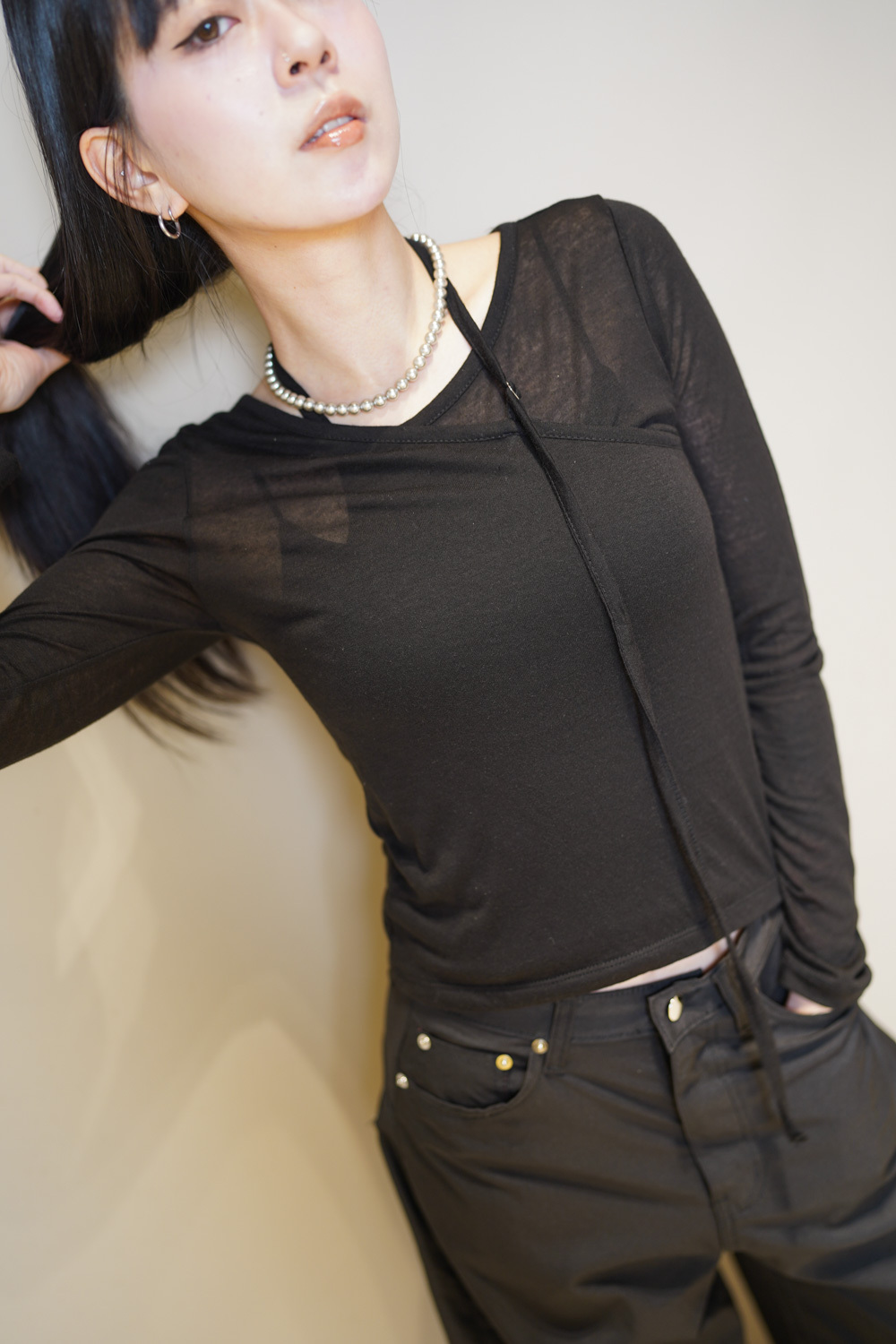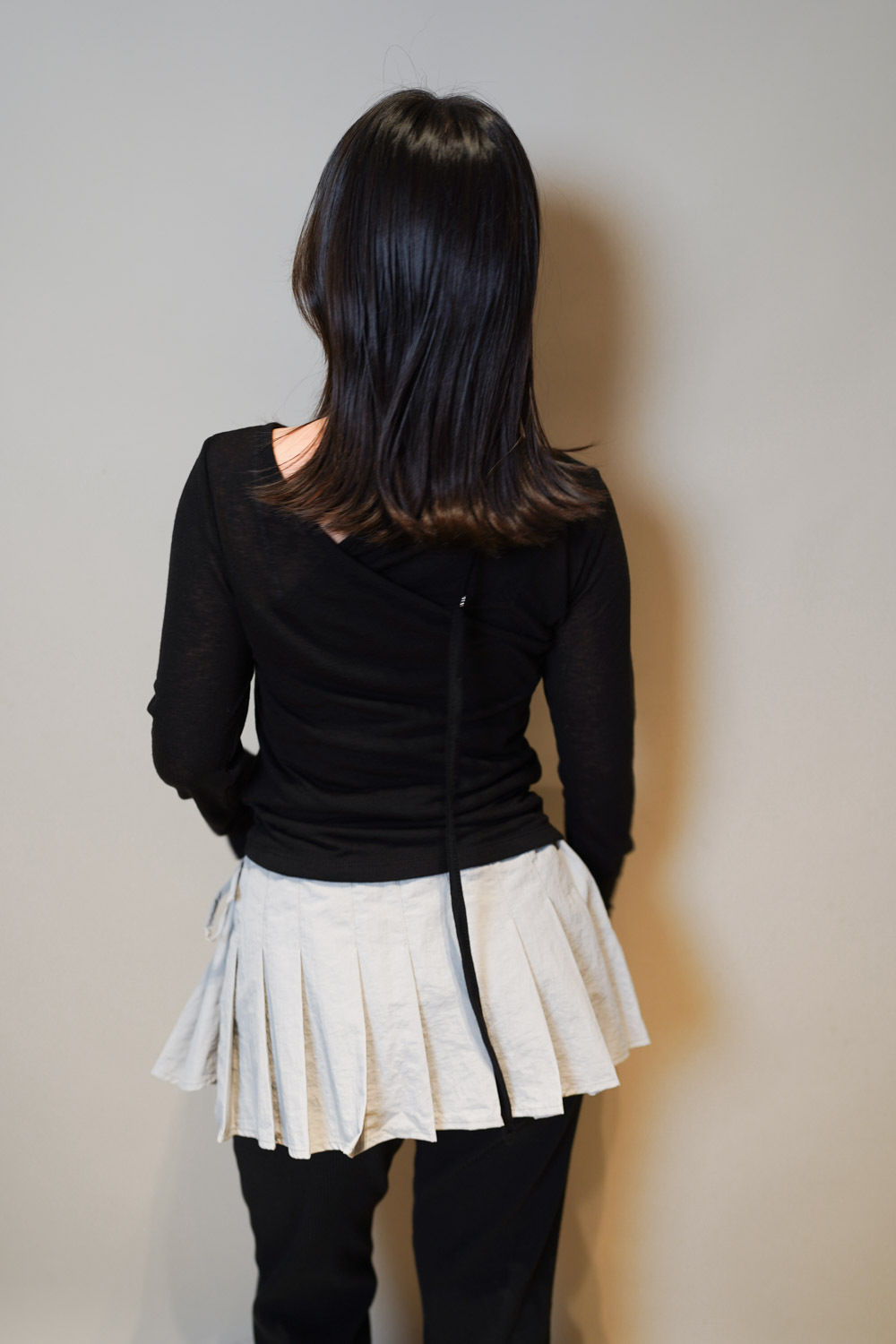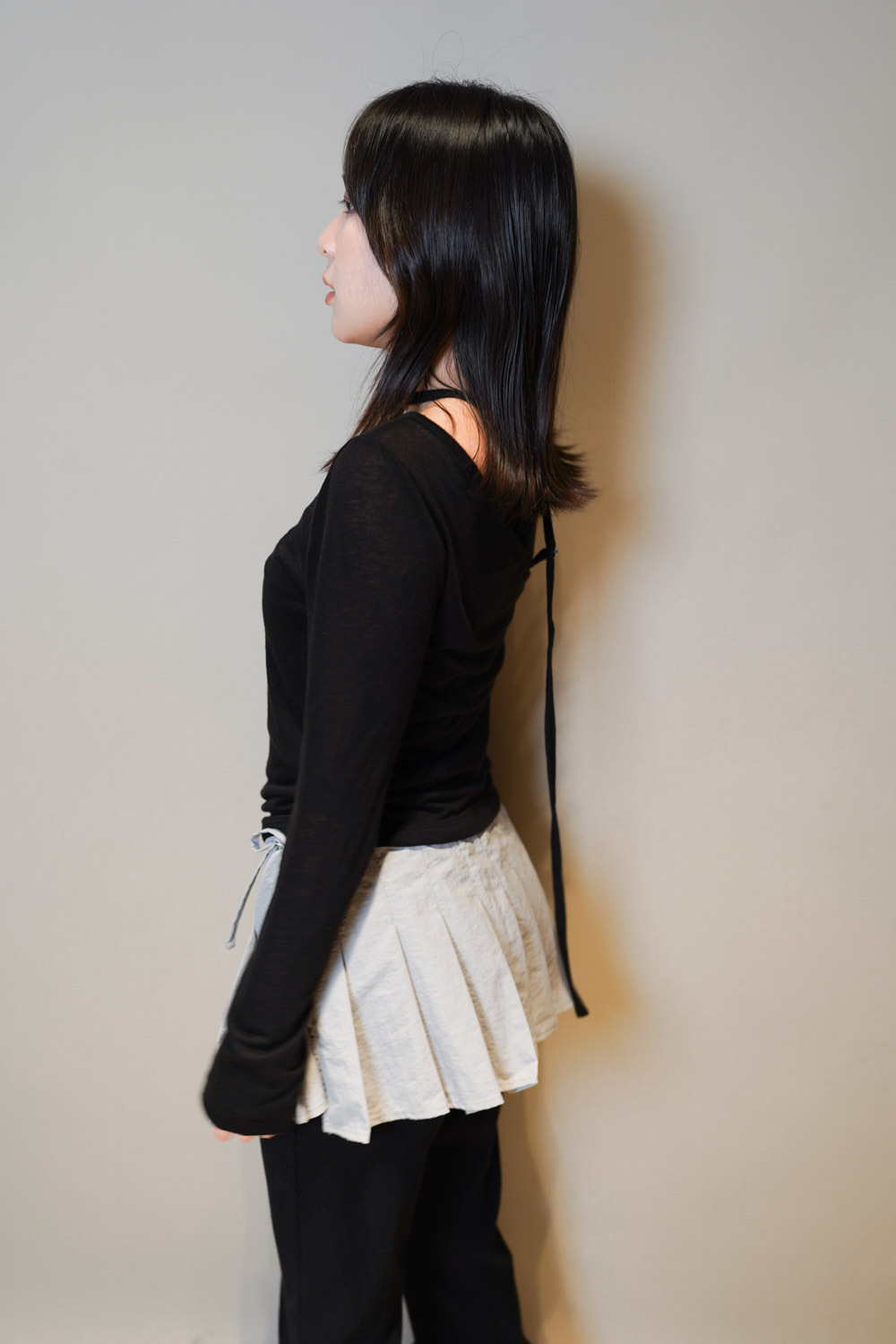 Slash buckle long sleeve top (WHITE/BLUE/BLACK)