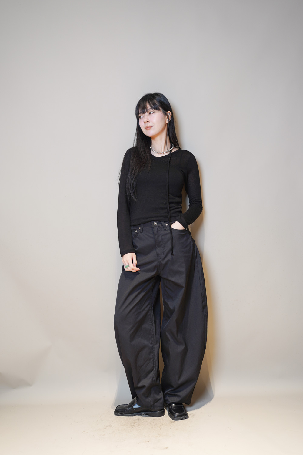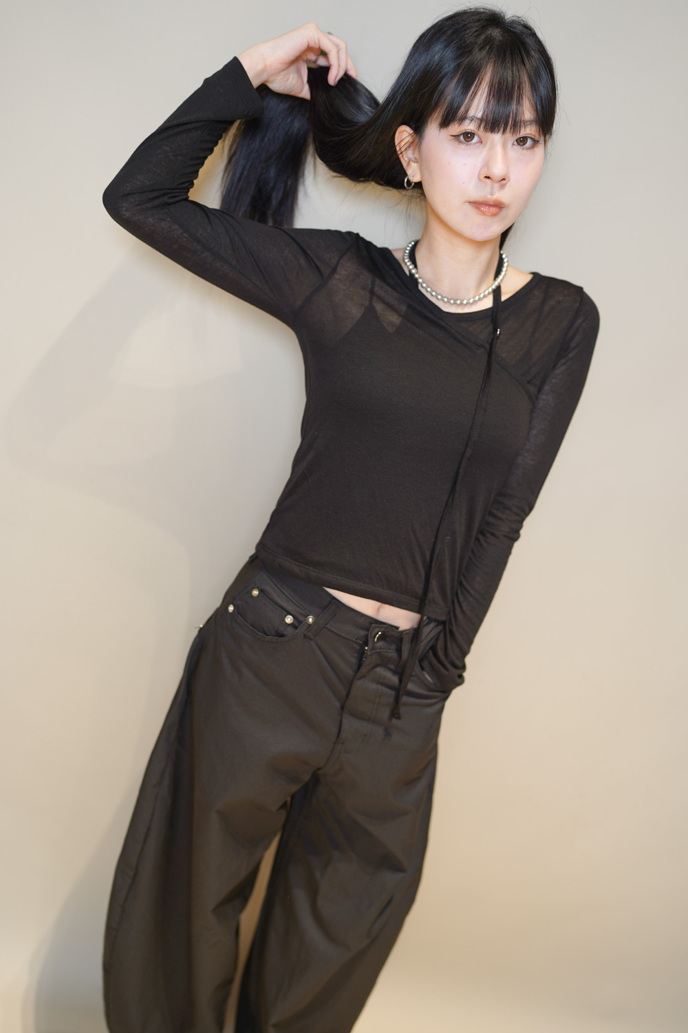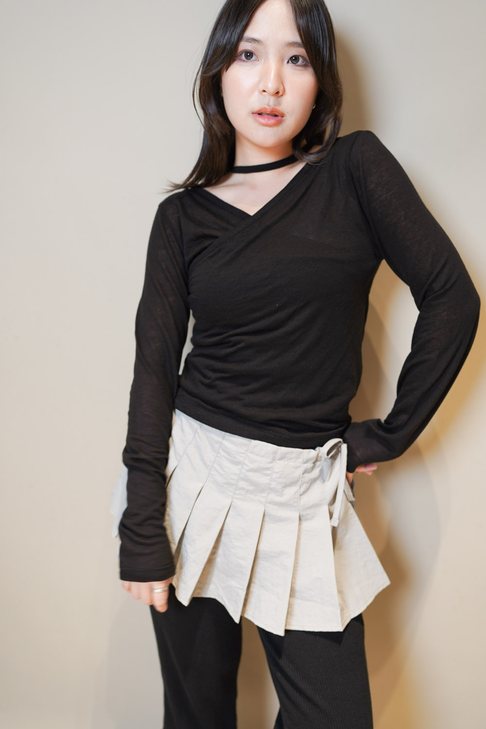 Slash buckle long sleeve top (WHITE/BLUE/BLACK)