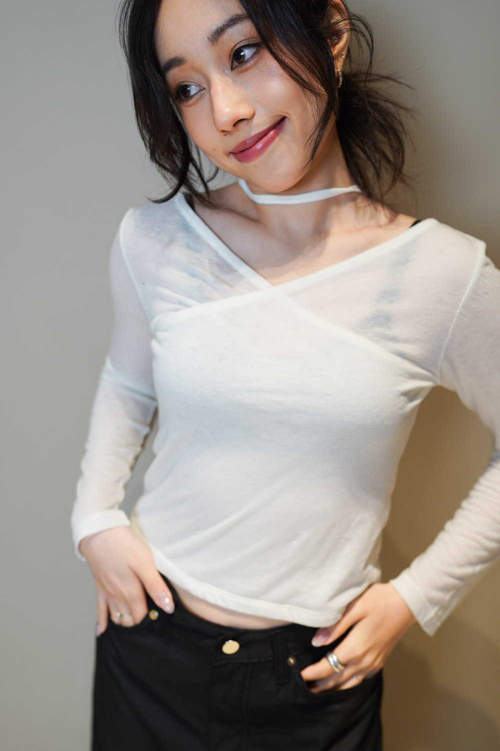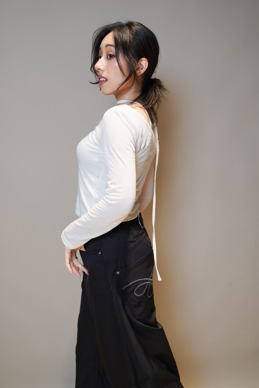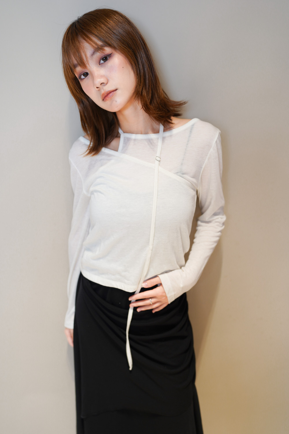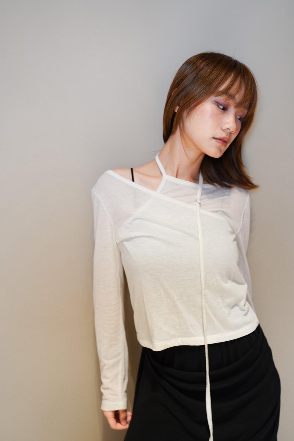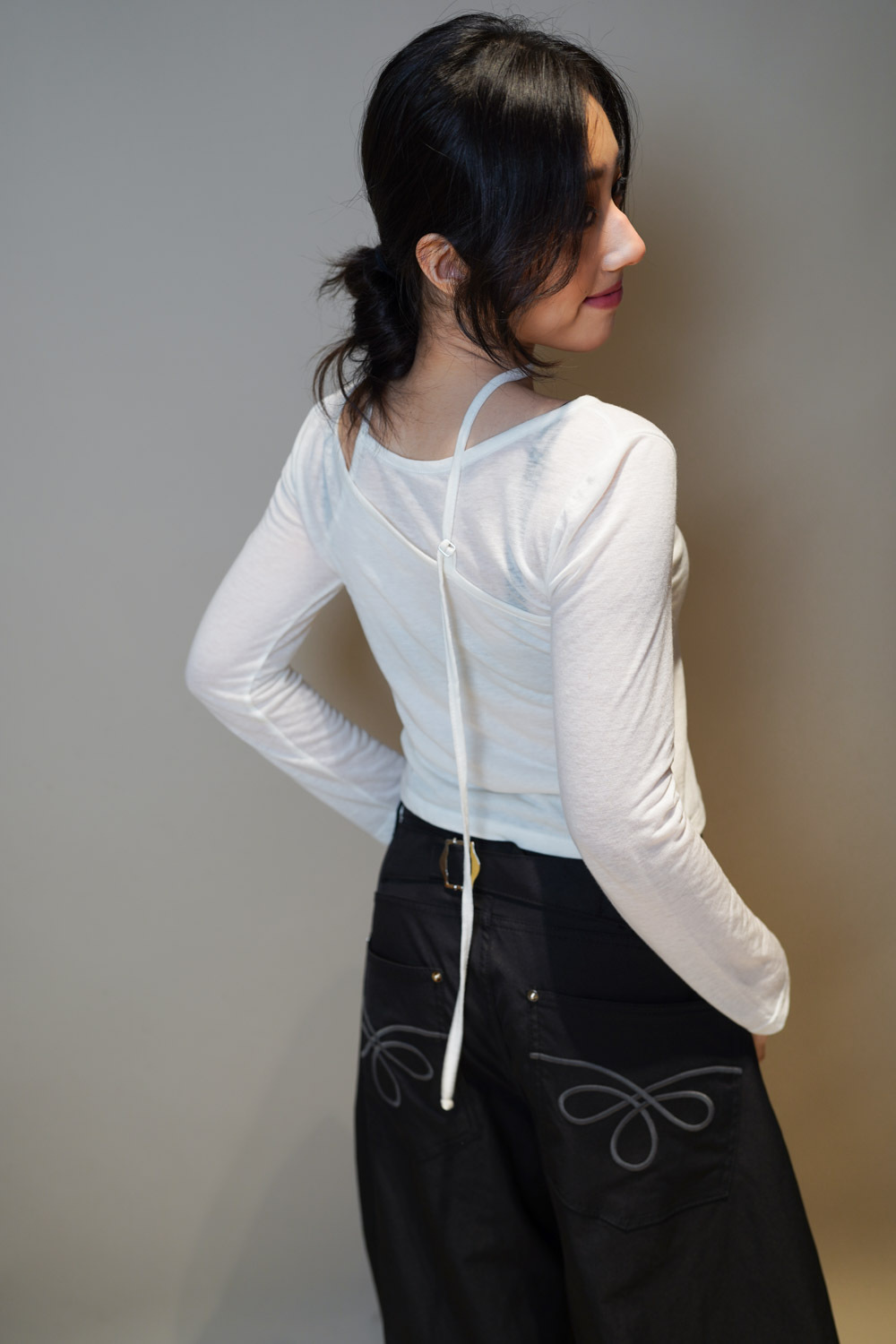 Slash buckle long sleeve top (WHITE/BLUE/BLACK)