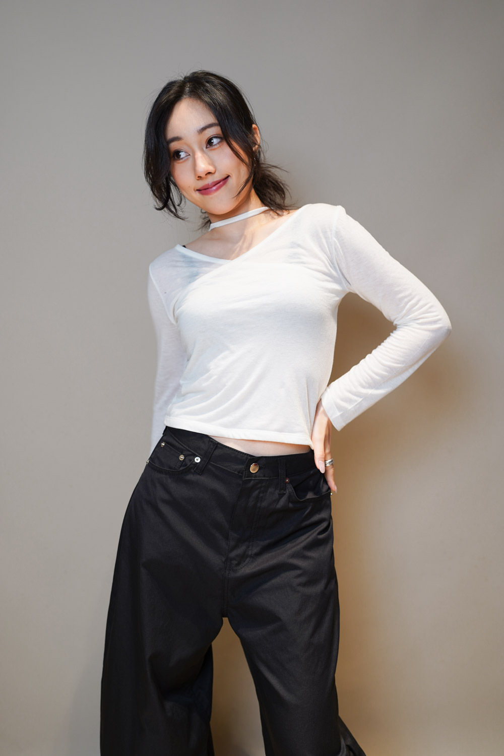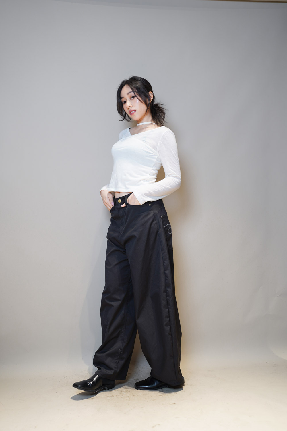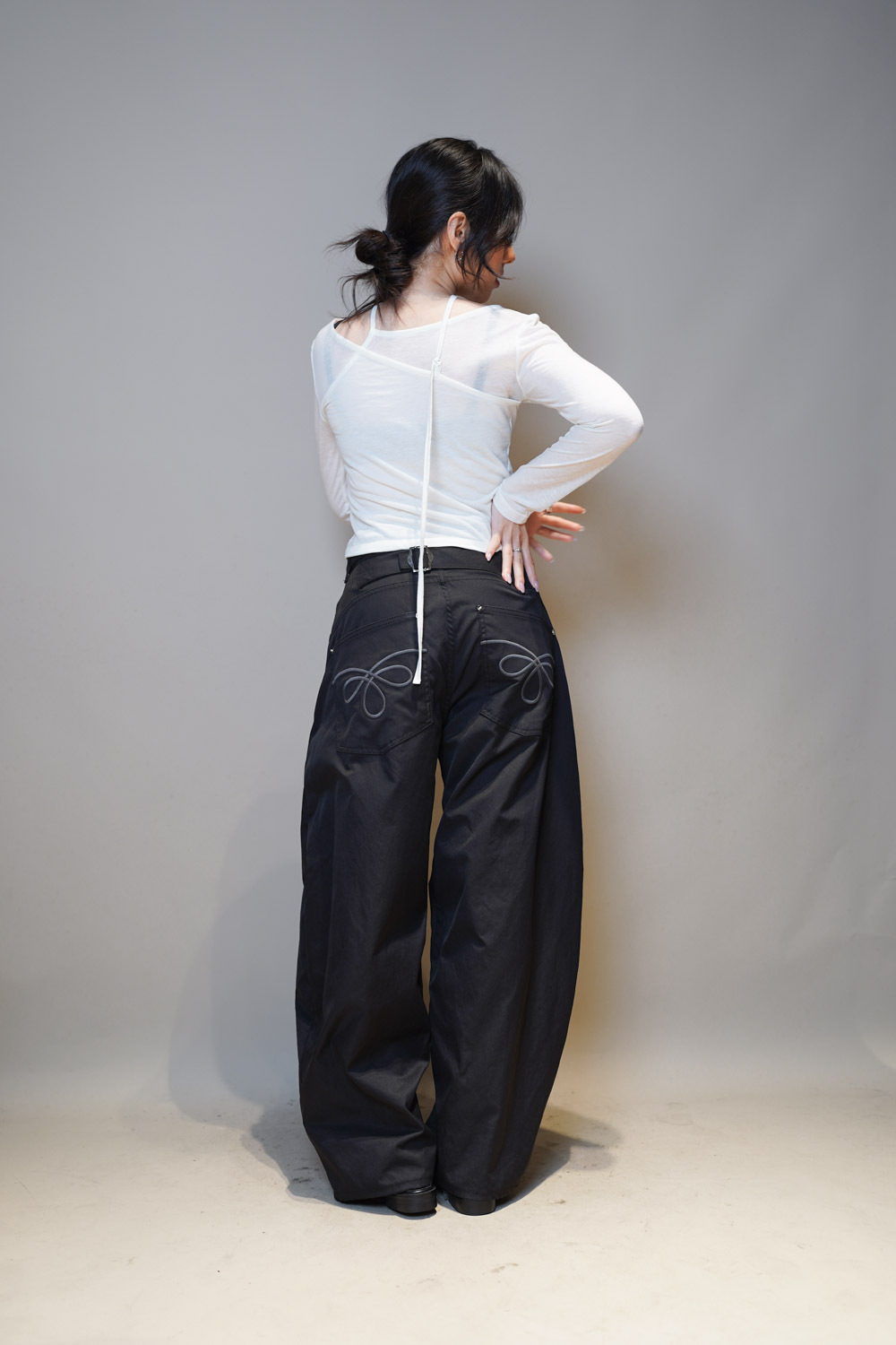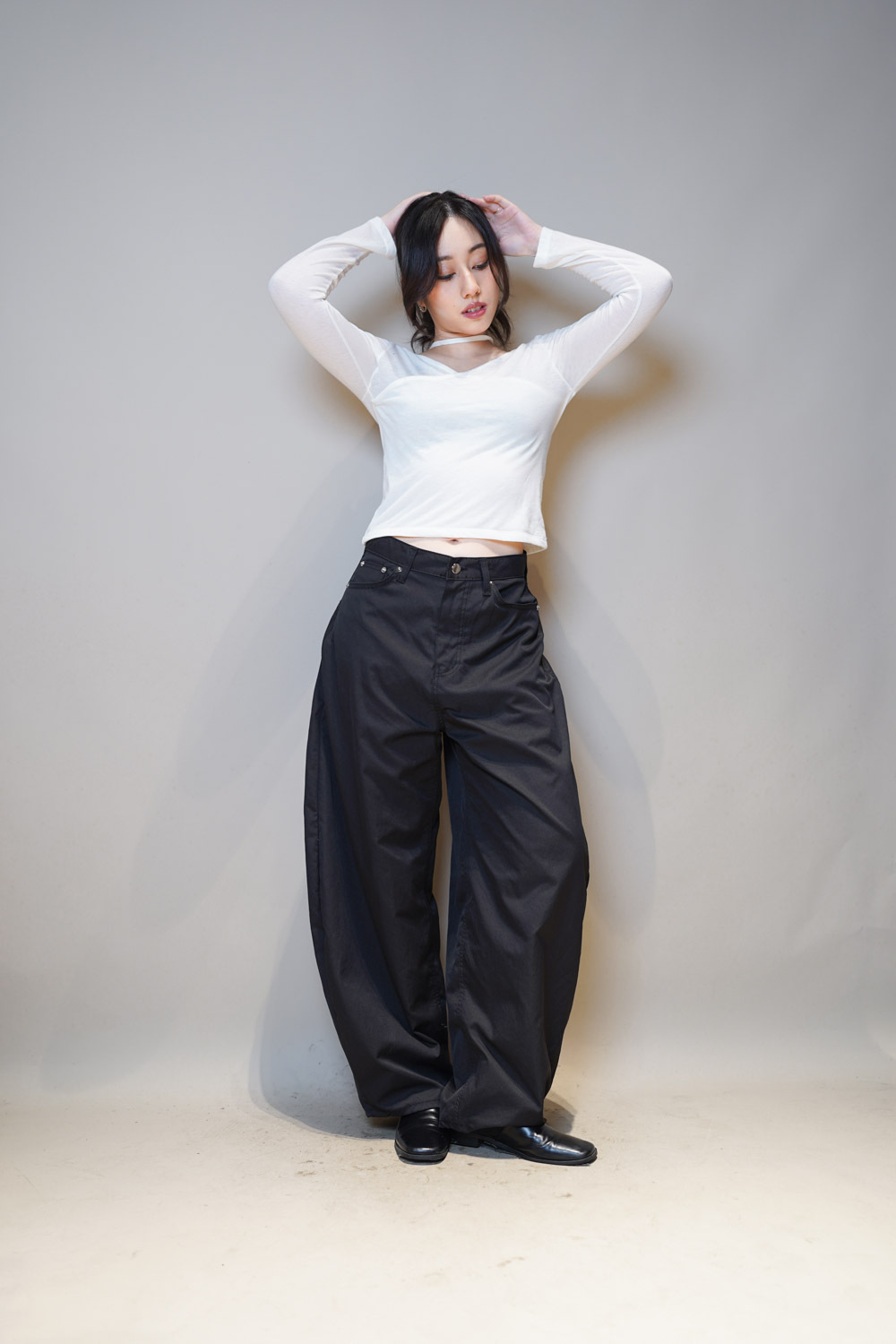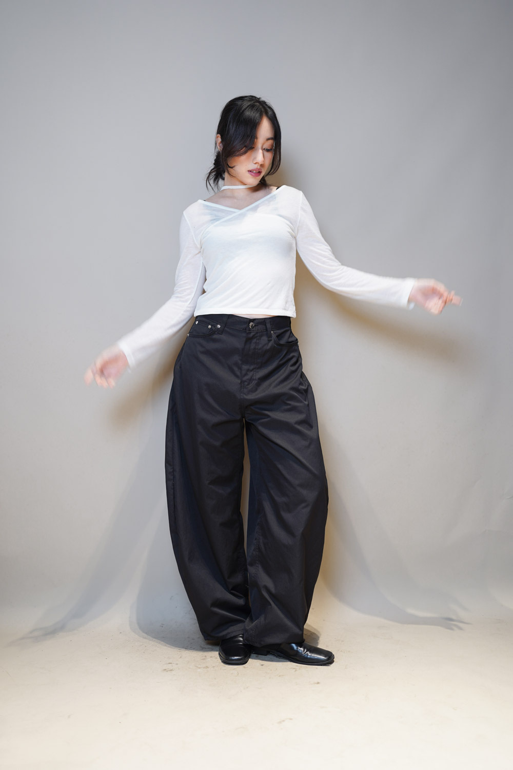 Slash buckle long sleeve top (WHITE/BLUE/BLACK)