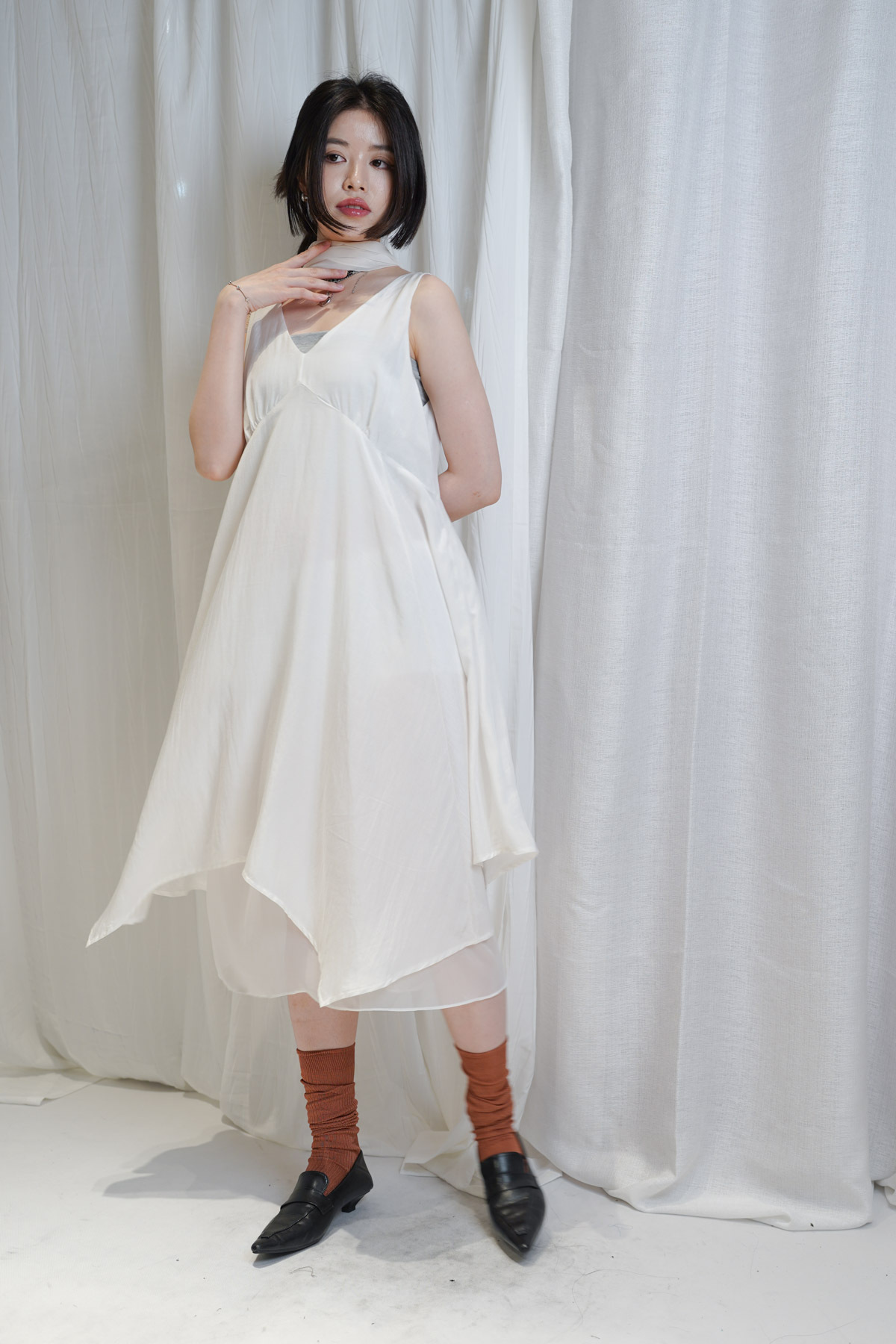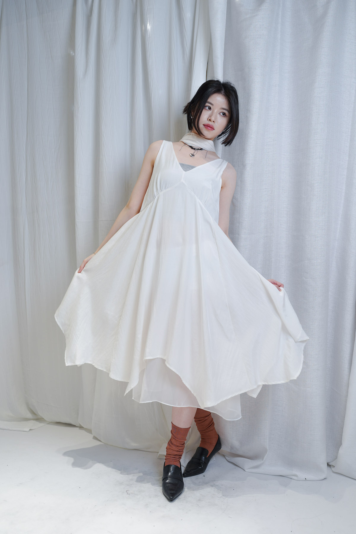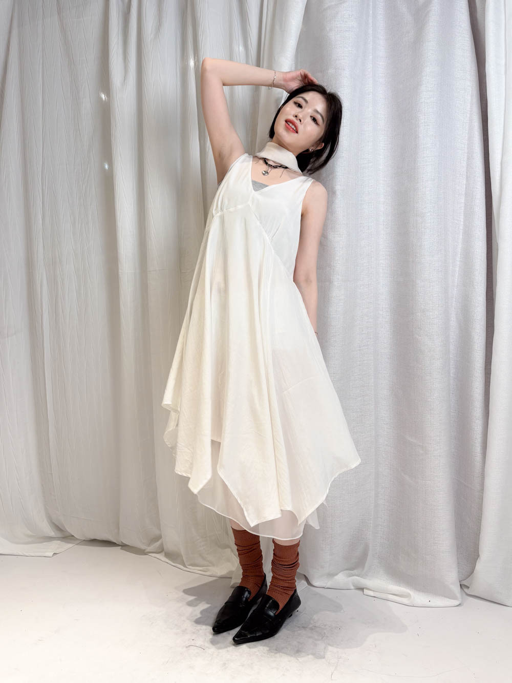 ② 不規則雙層傘襬 裙襬採用了長短不一的 Layering 剪裁: