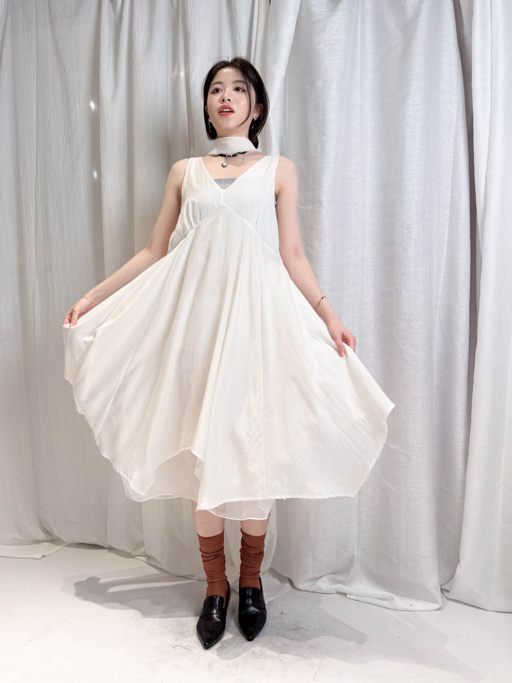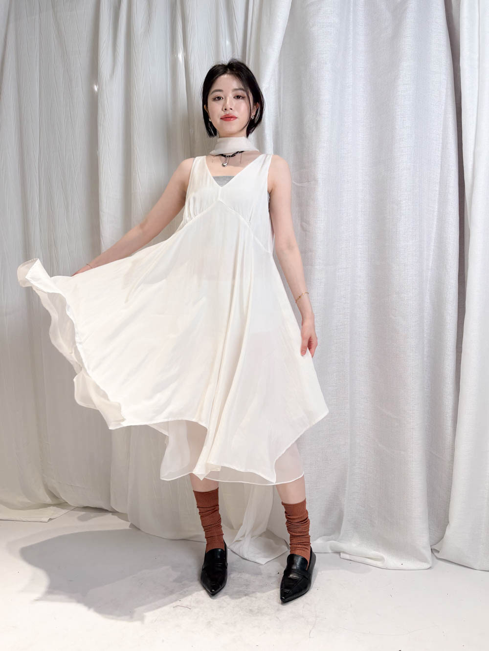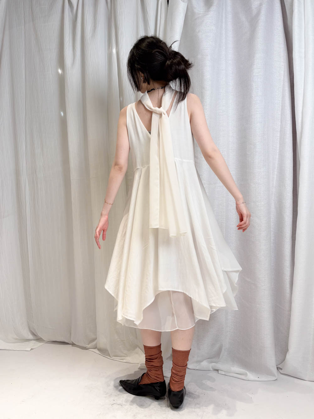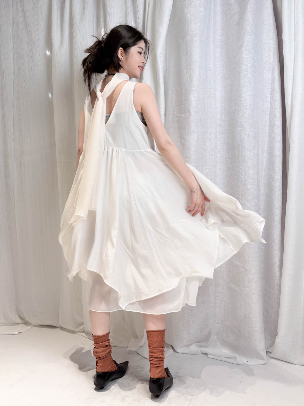 Soft Breeze Sheering Dress / Set with scarf (WHITE/BLACK) SET
