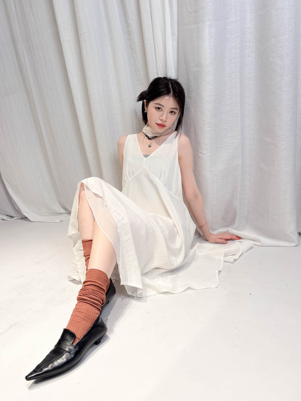 /內搭一件小背心(如 Model 示範的淺灰色) 就能穿出層次感,同時保持清爽。