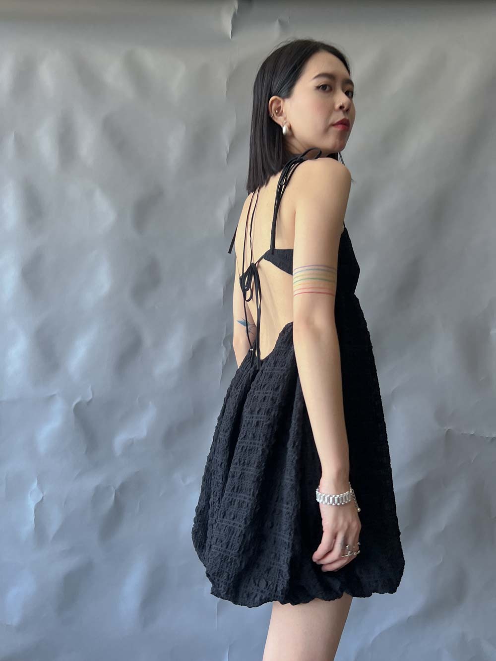 Chest: Free 後綁結 / Waist (from shoulder 48cm) : 124cm (49”) / Hip(from waist 18cm) : 134cm (52.5") / Length: front: 68cm;back: 49cm (not included strap)