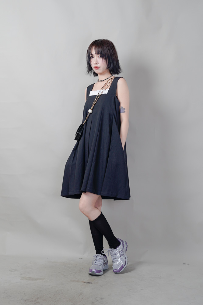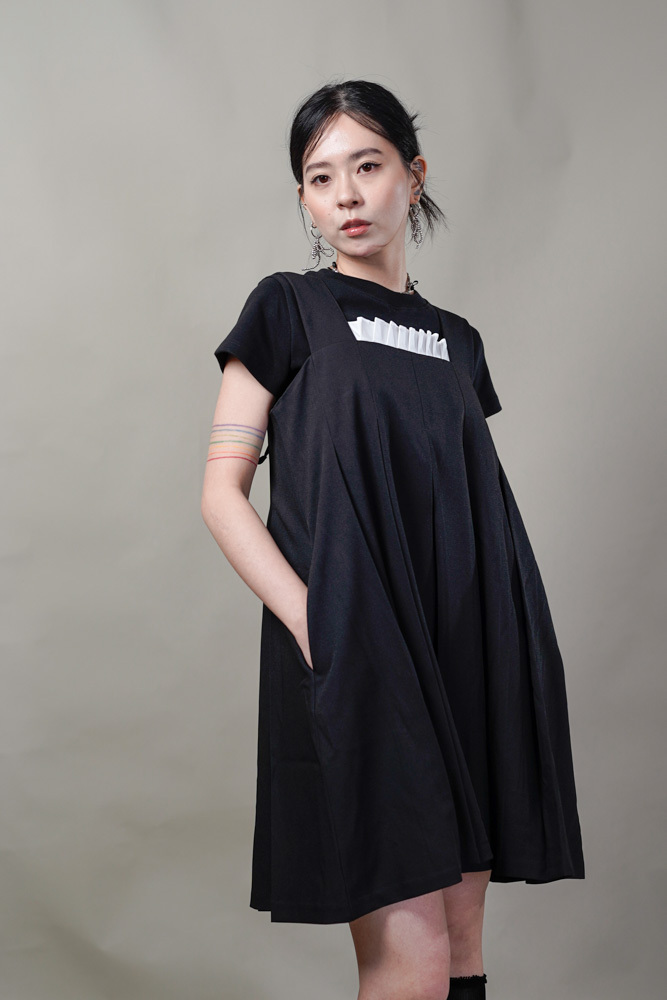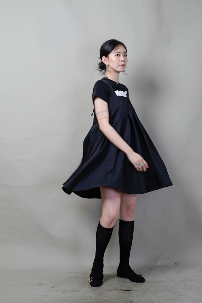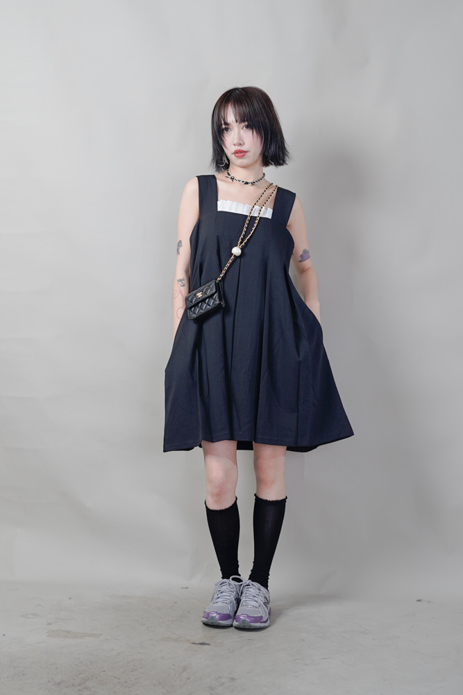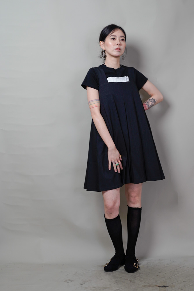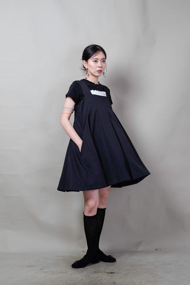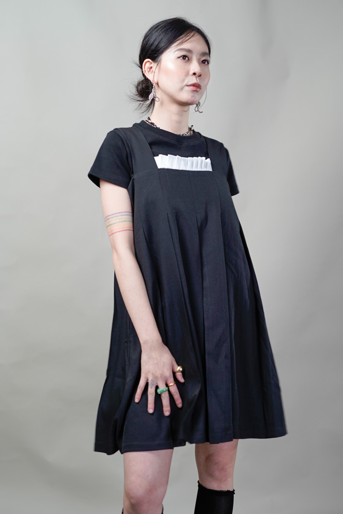 Stranger room made: frilling Paris Dress (BEIGE/BLACK)