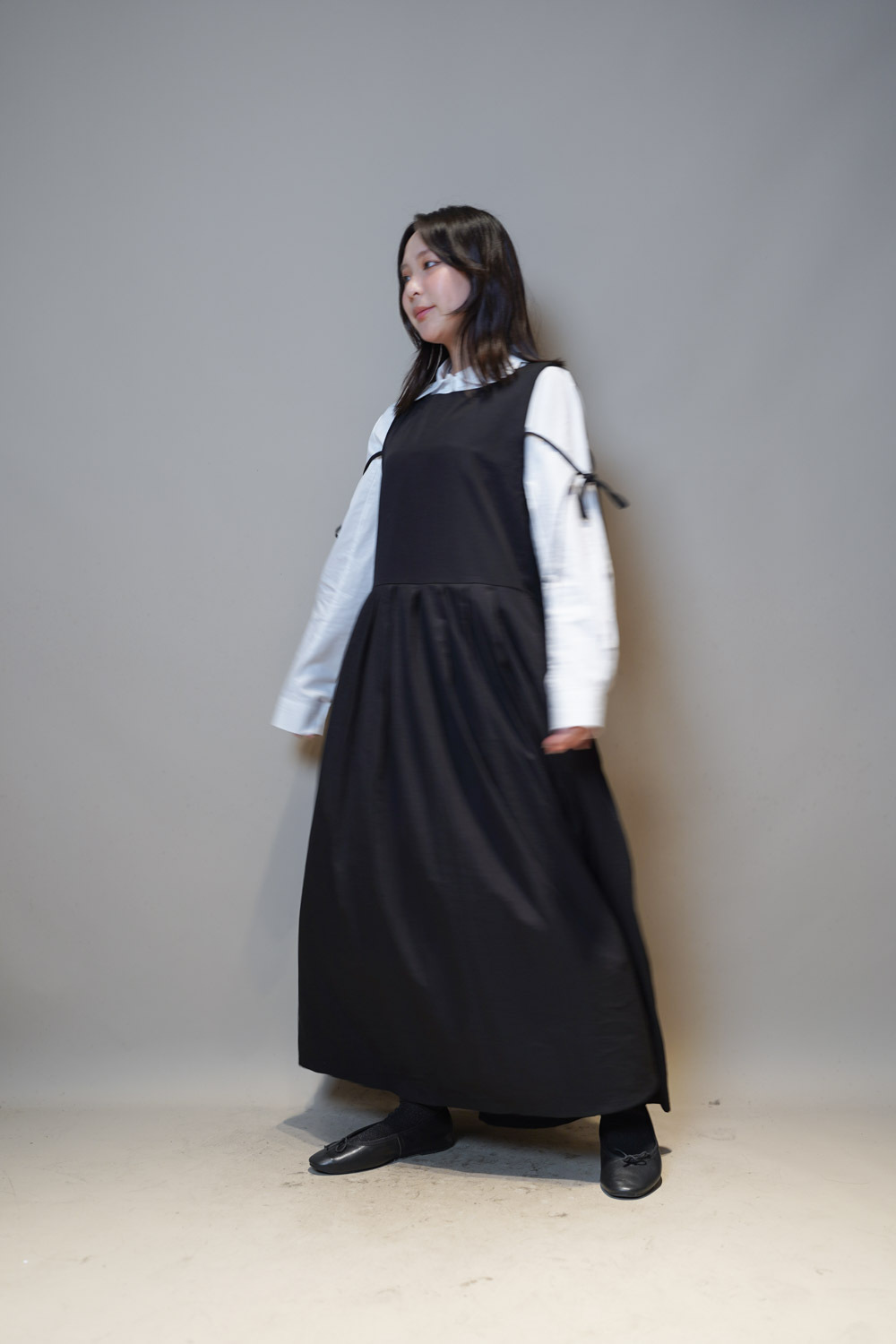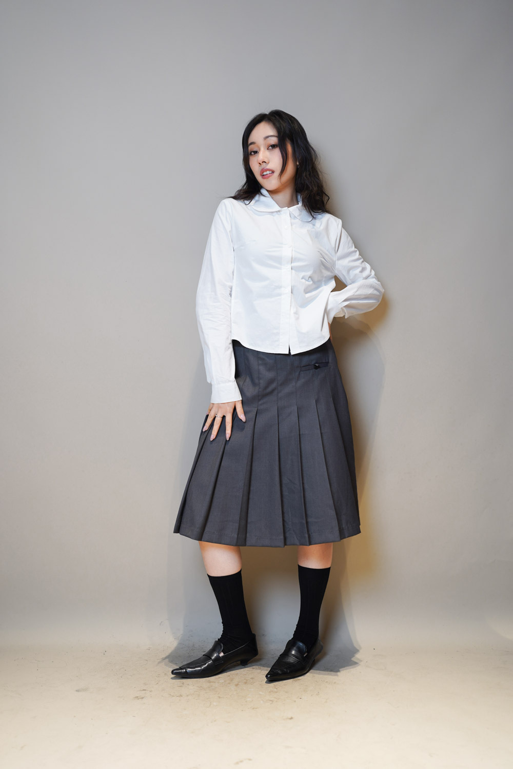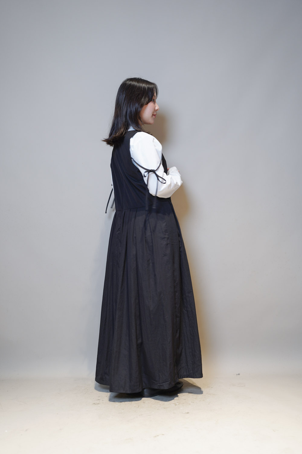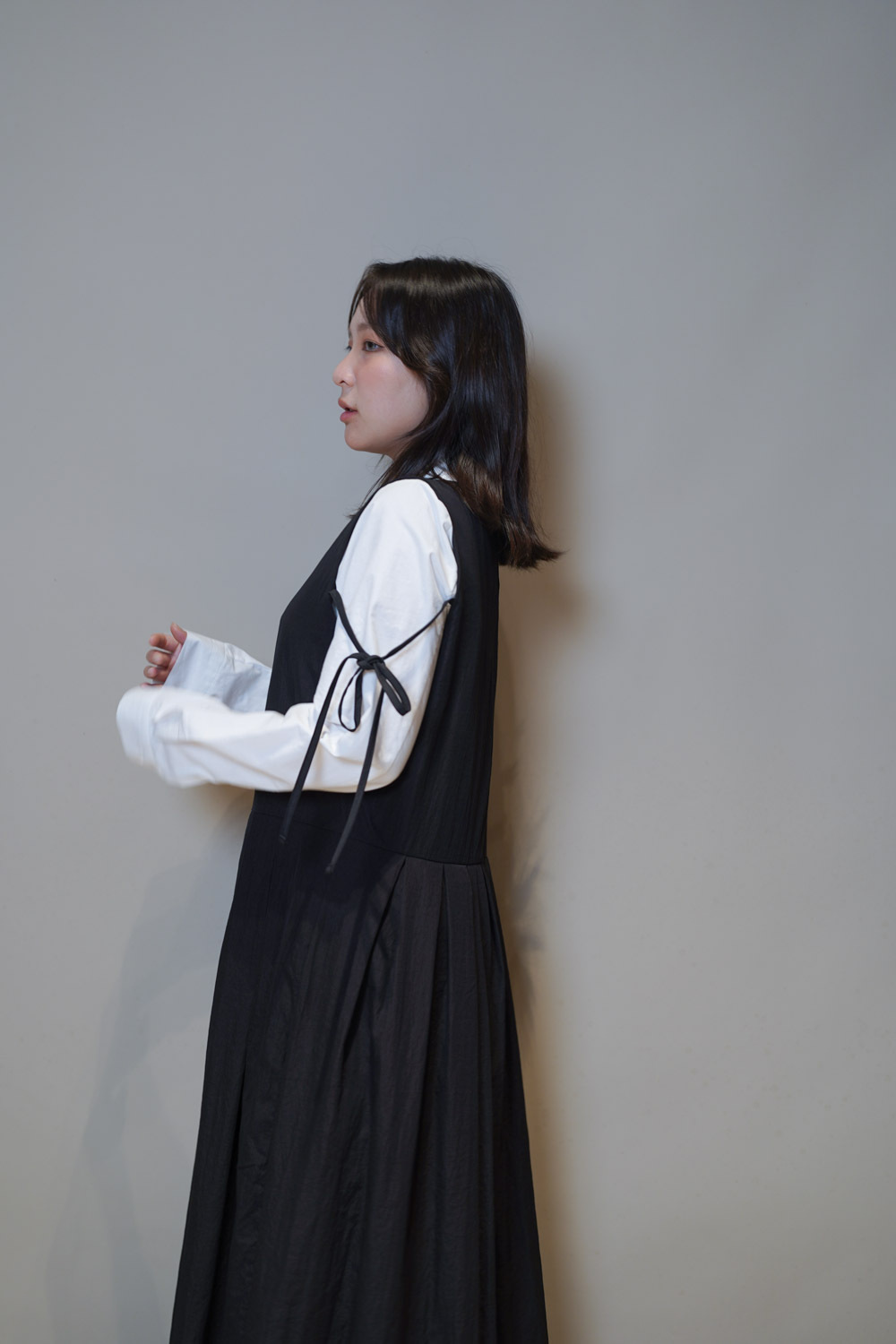 下身任意配搭裙或褲皆可: 側身亦有弧度 修身效果 /