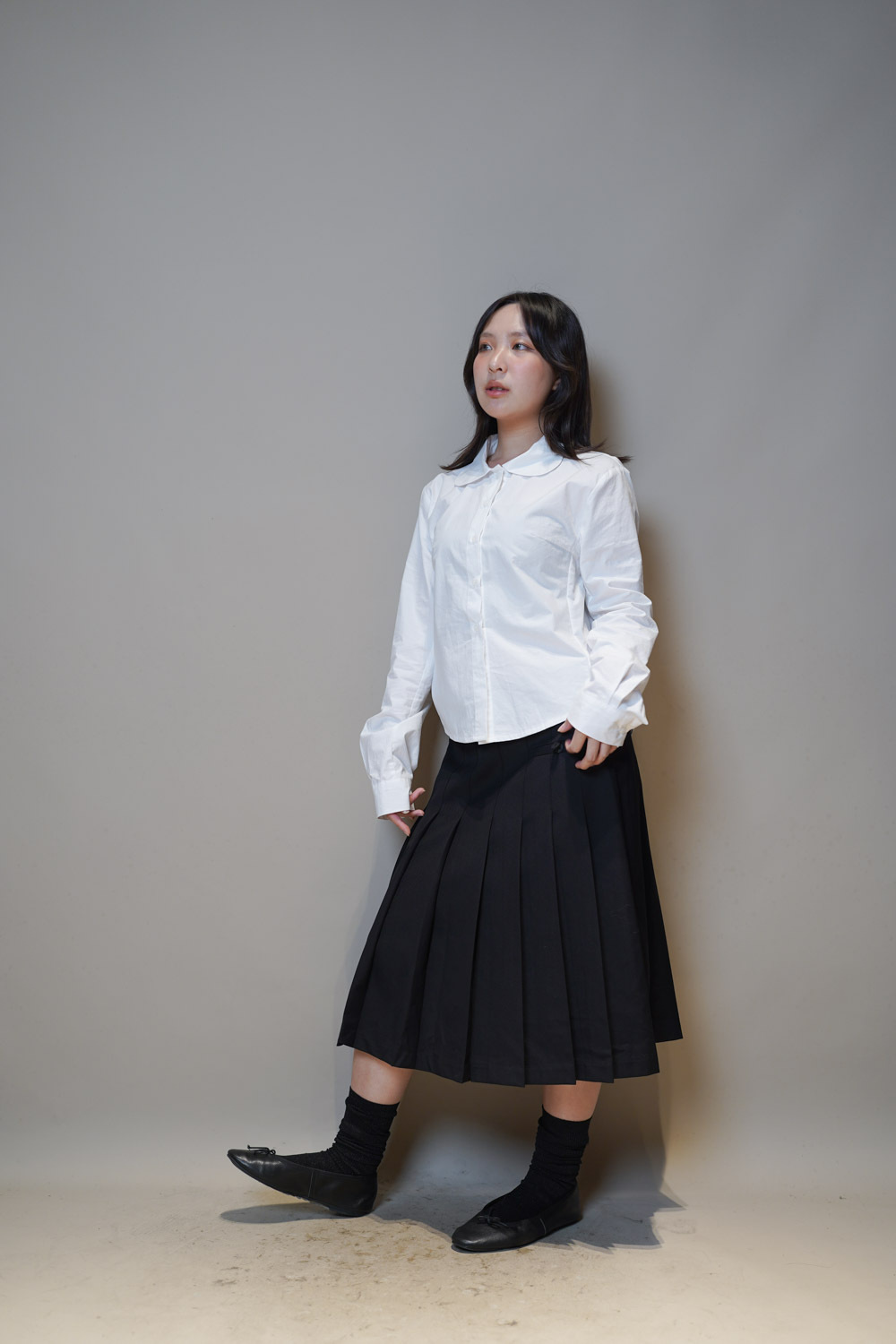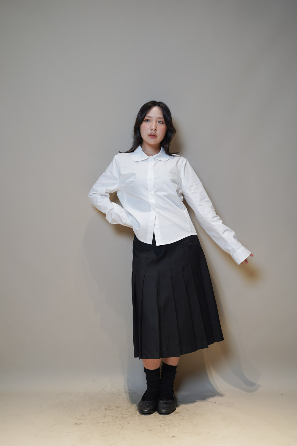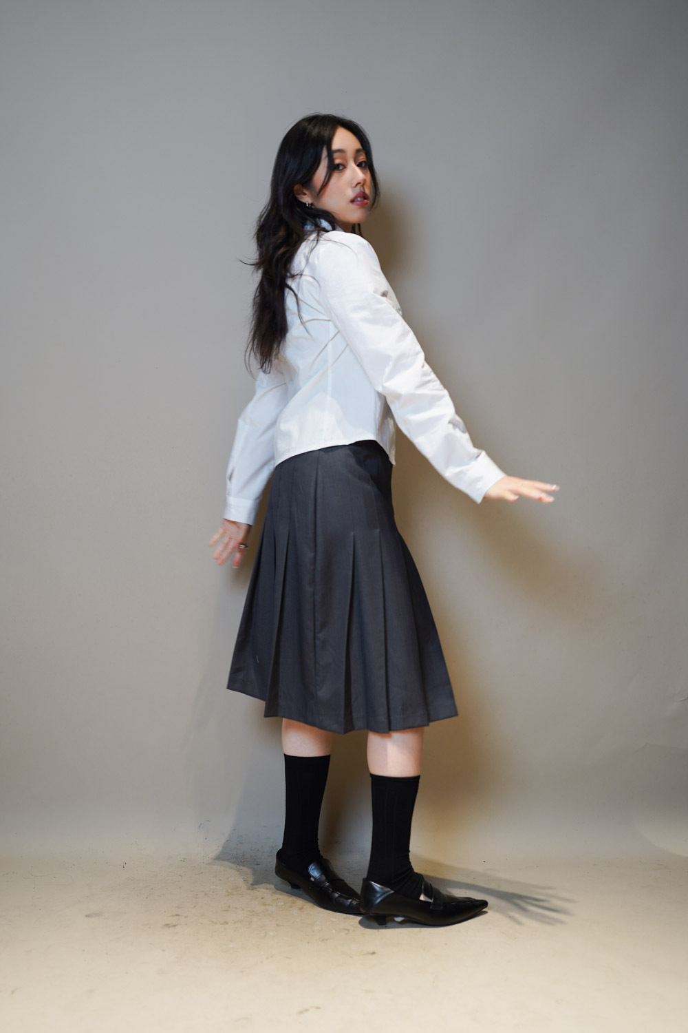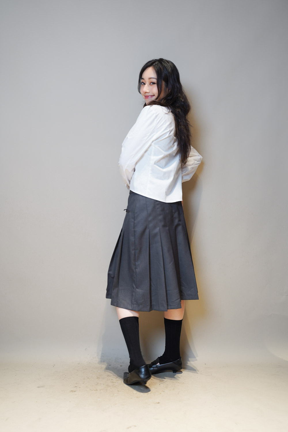 下身任意配搭裙或褲皆可: 側身亦有弧度 修身效果 /