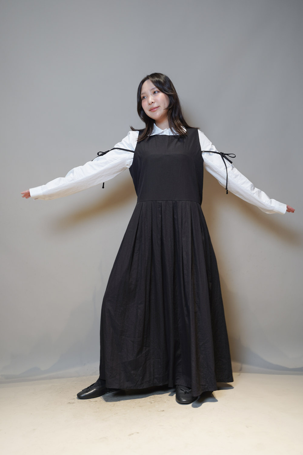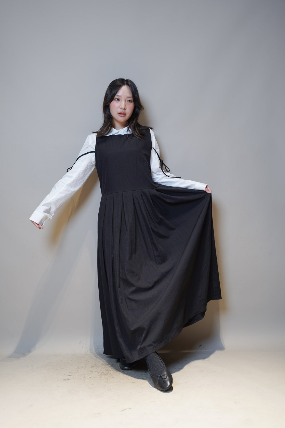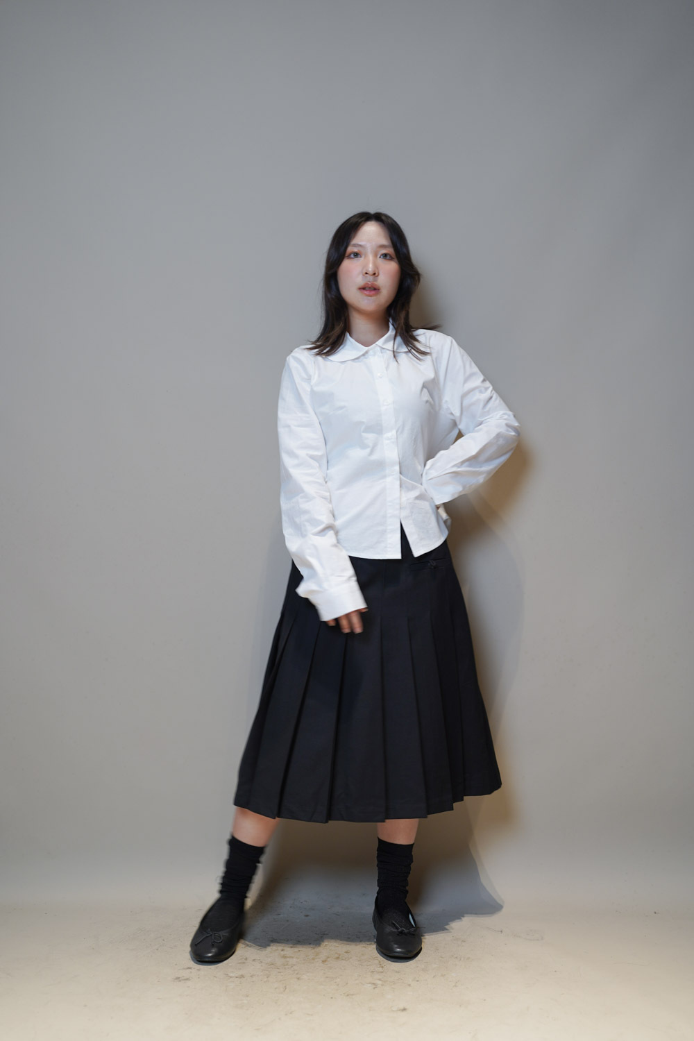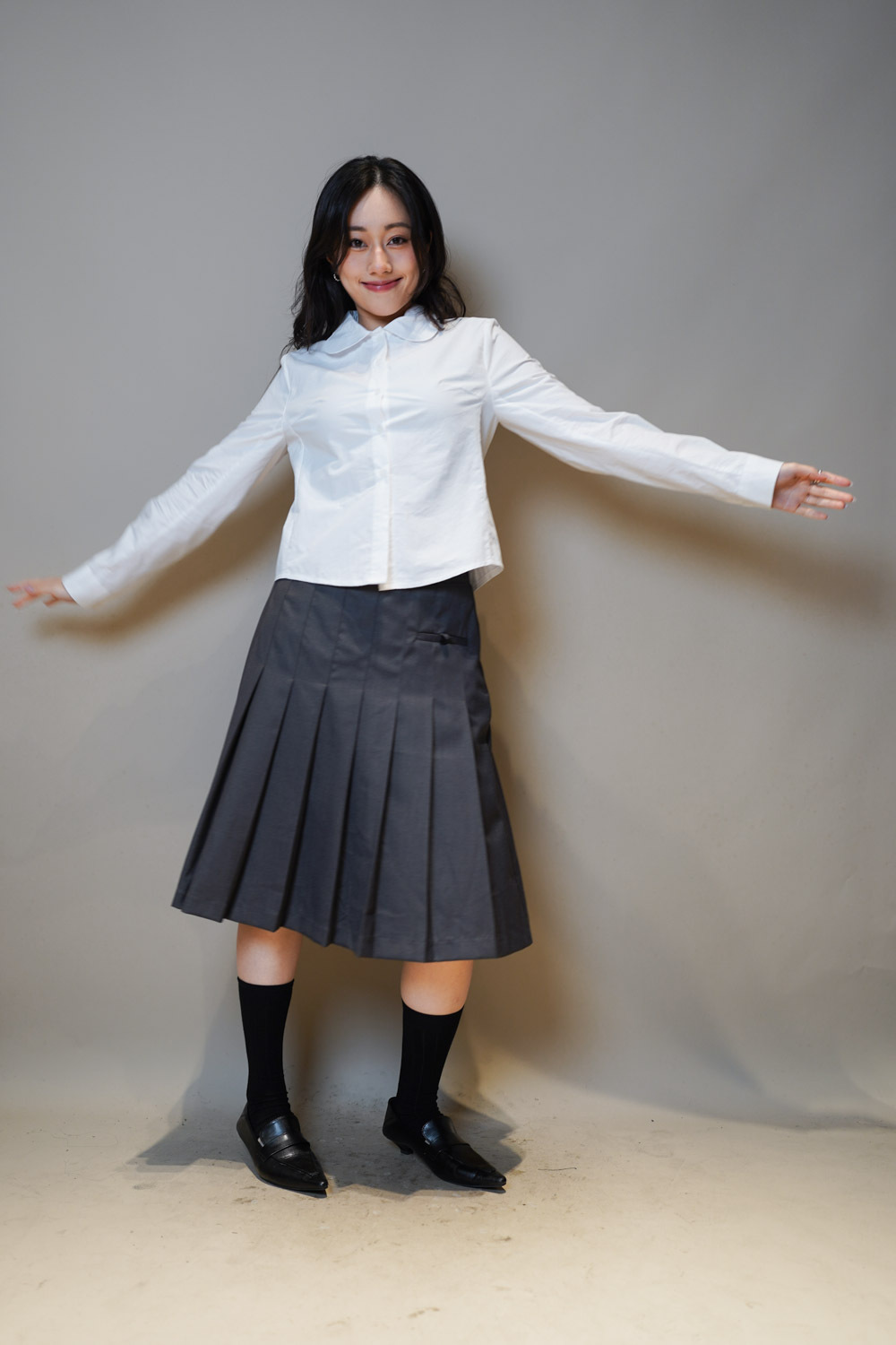 下身任意配搭裙或褲皆可: 側身亦有弧度 修身效果 /