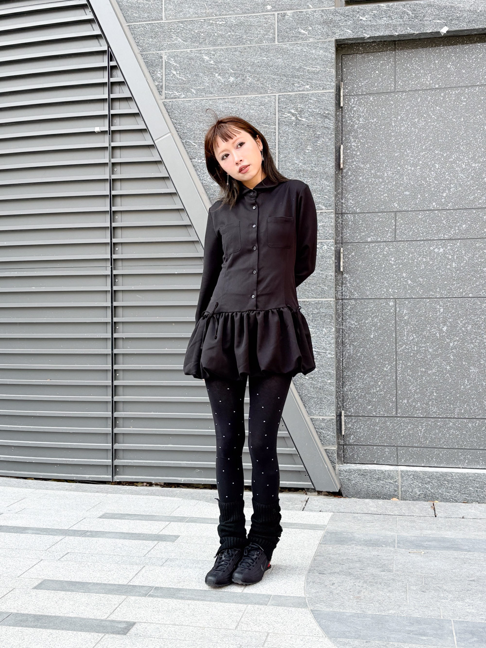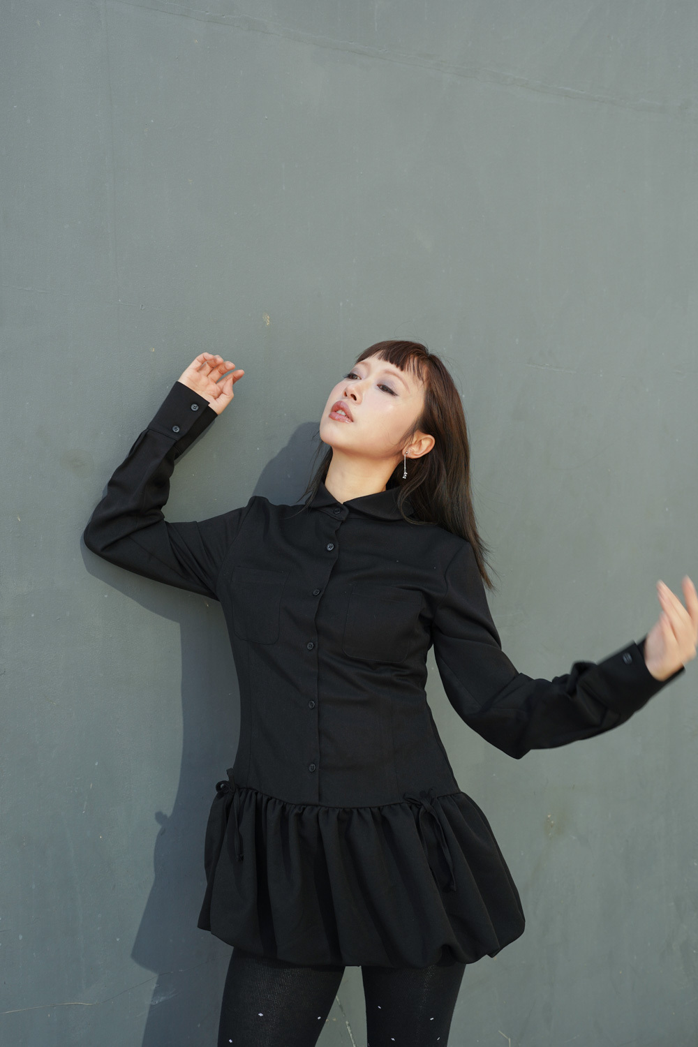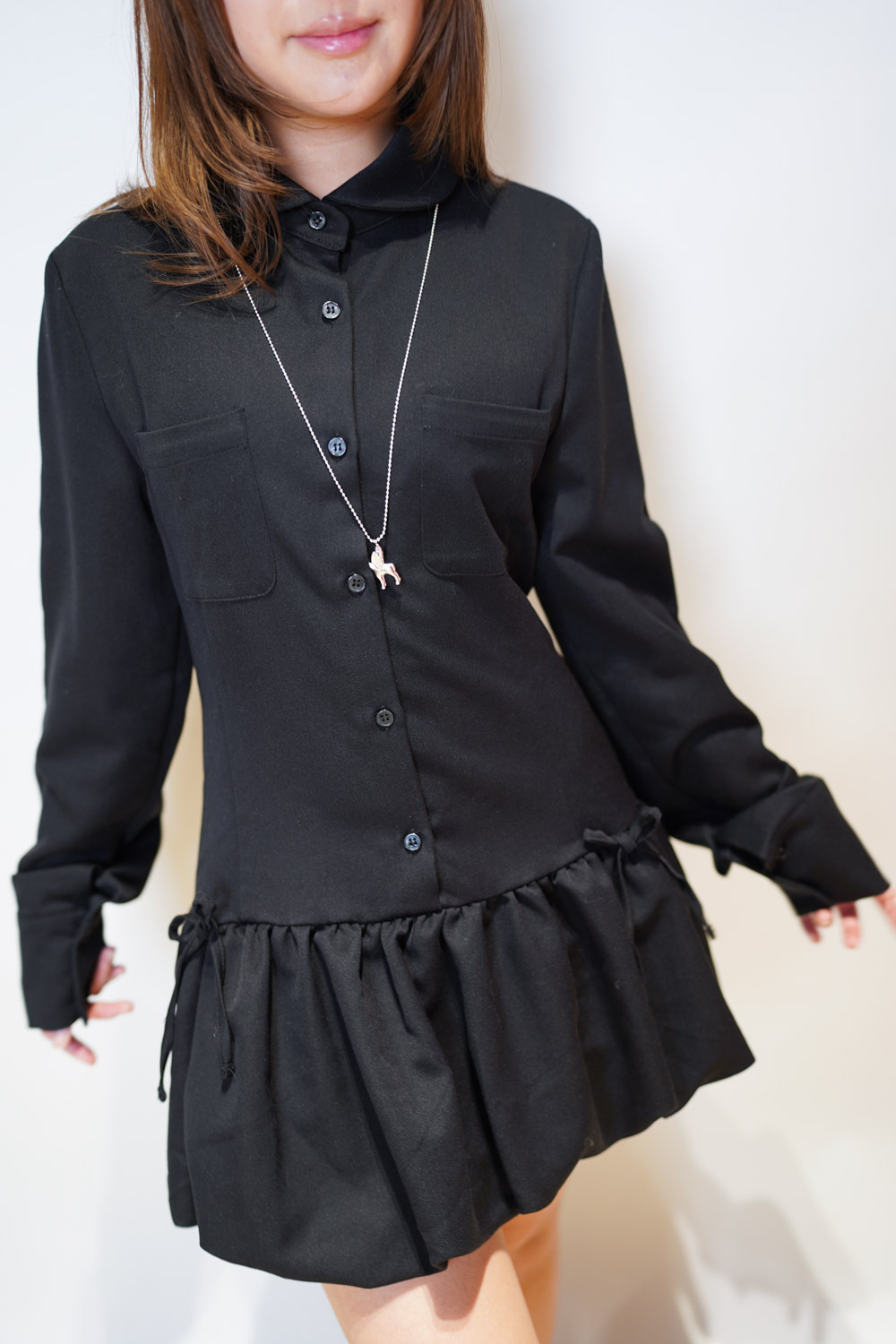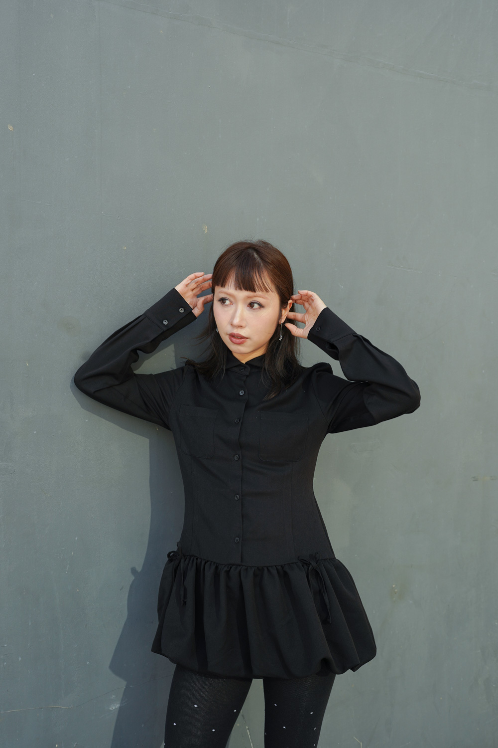 Low puff ribbons tokyo dress (GREY/ BLACK)