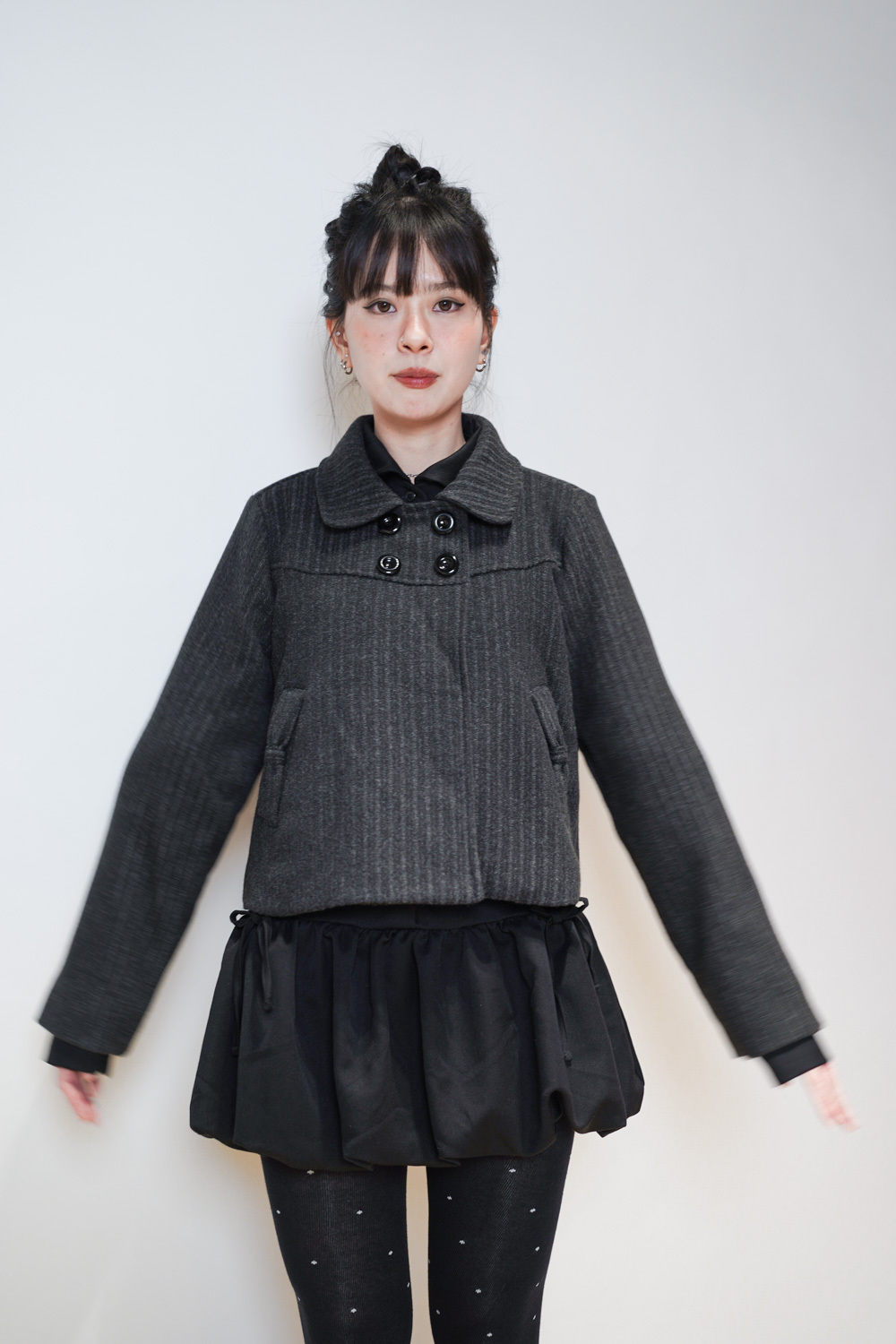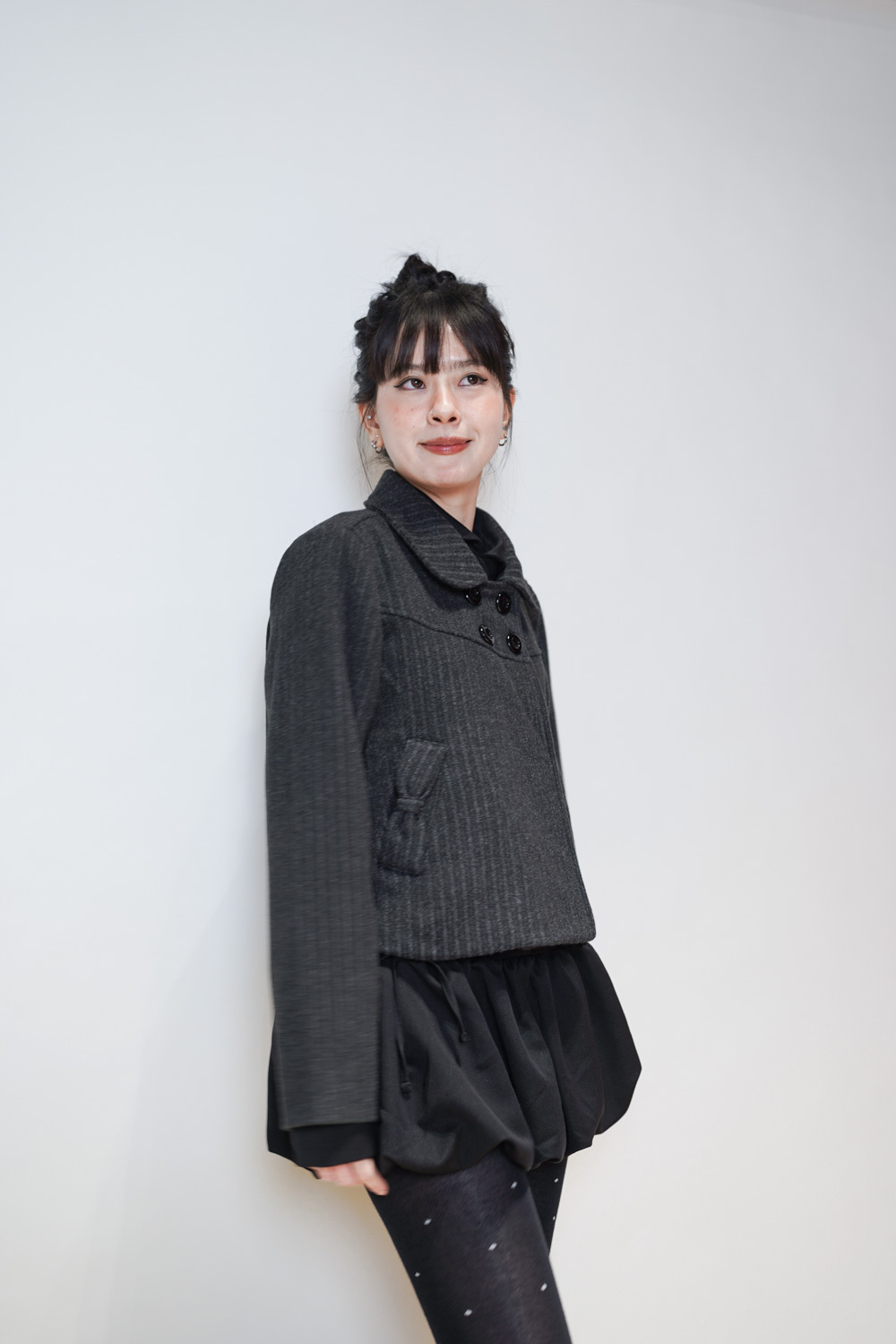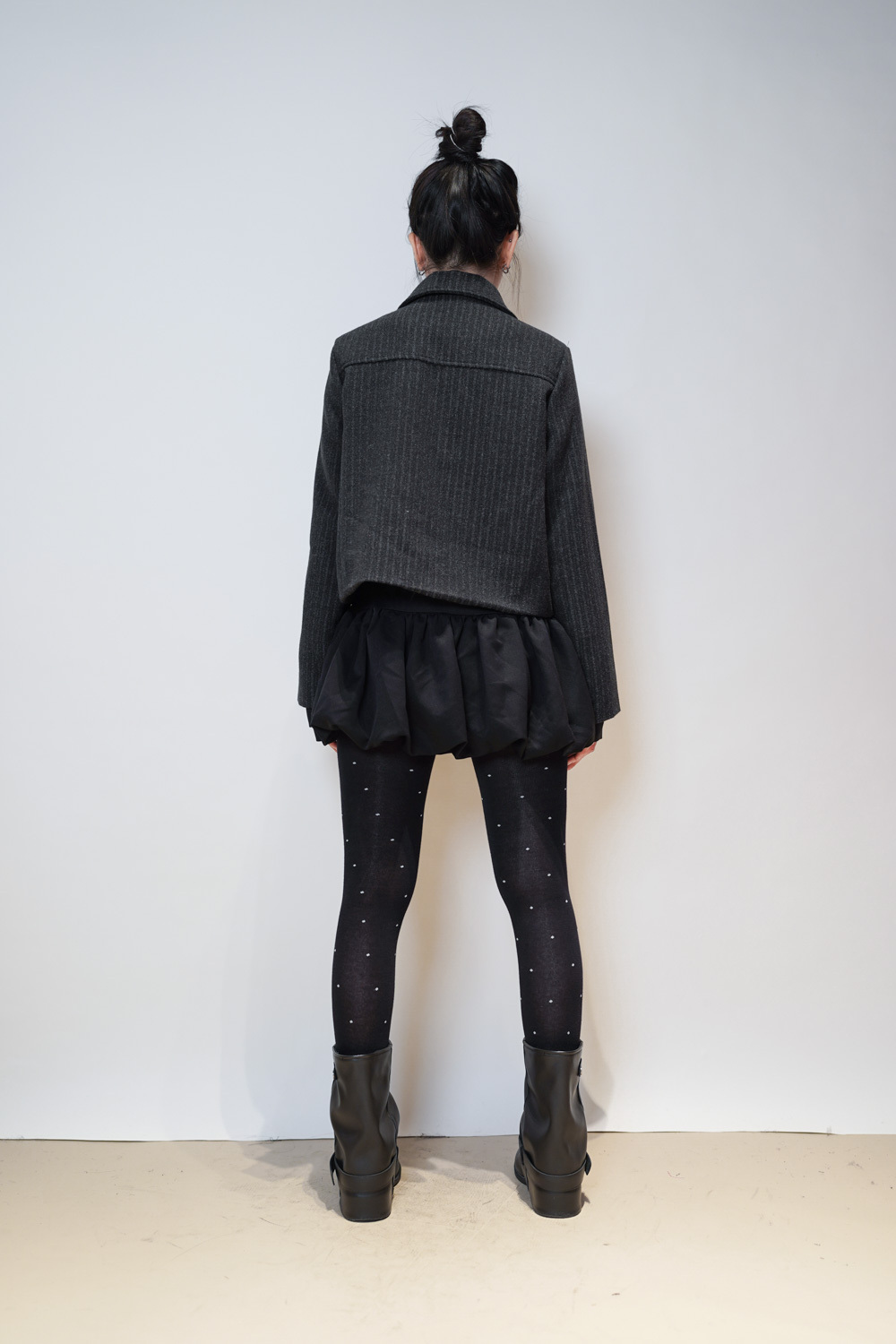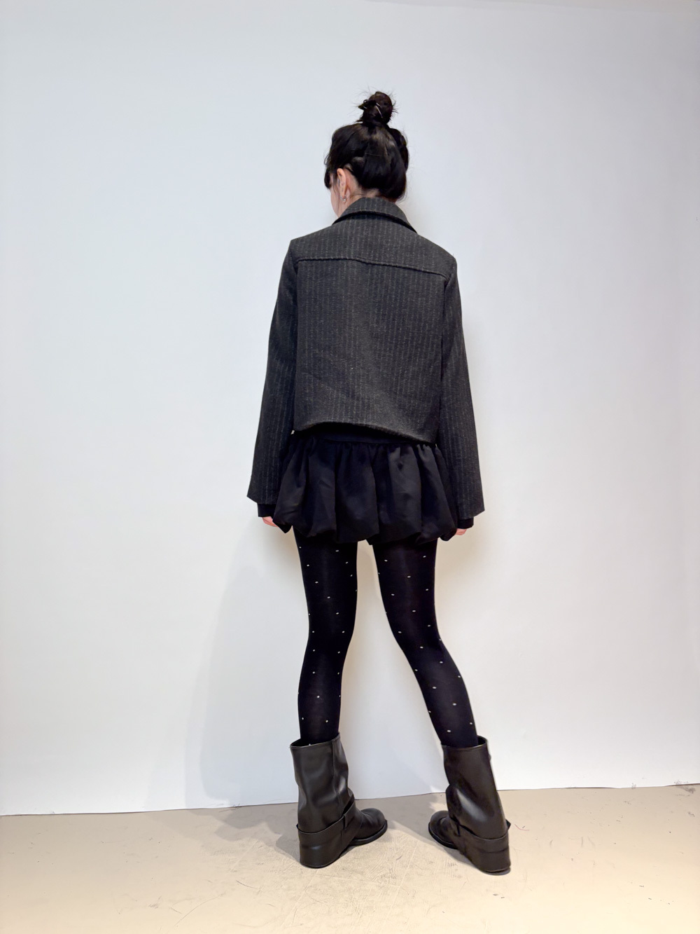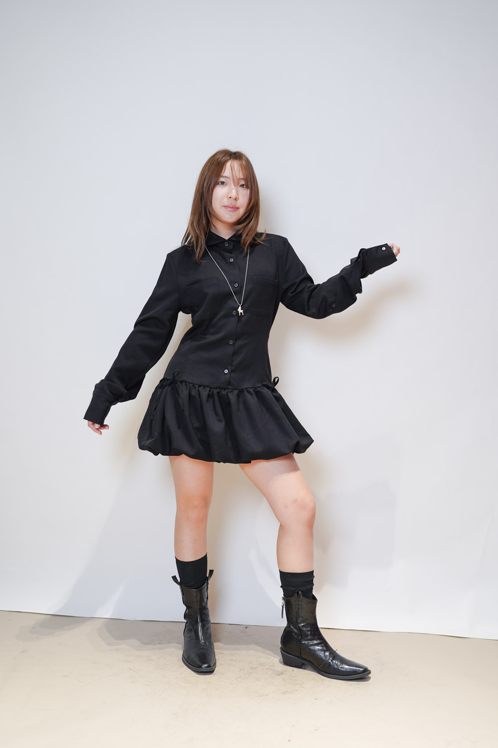 Low puff ribbons tokyo dress (GREY/ BLACK)