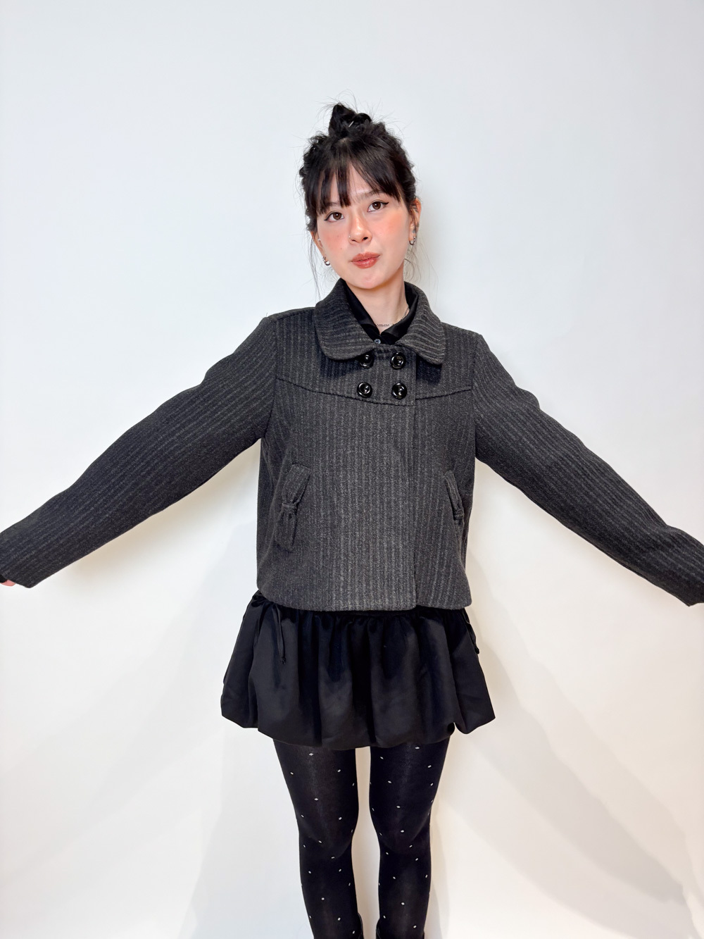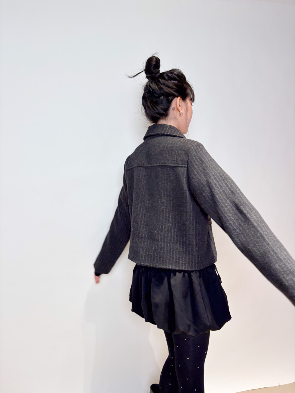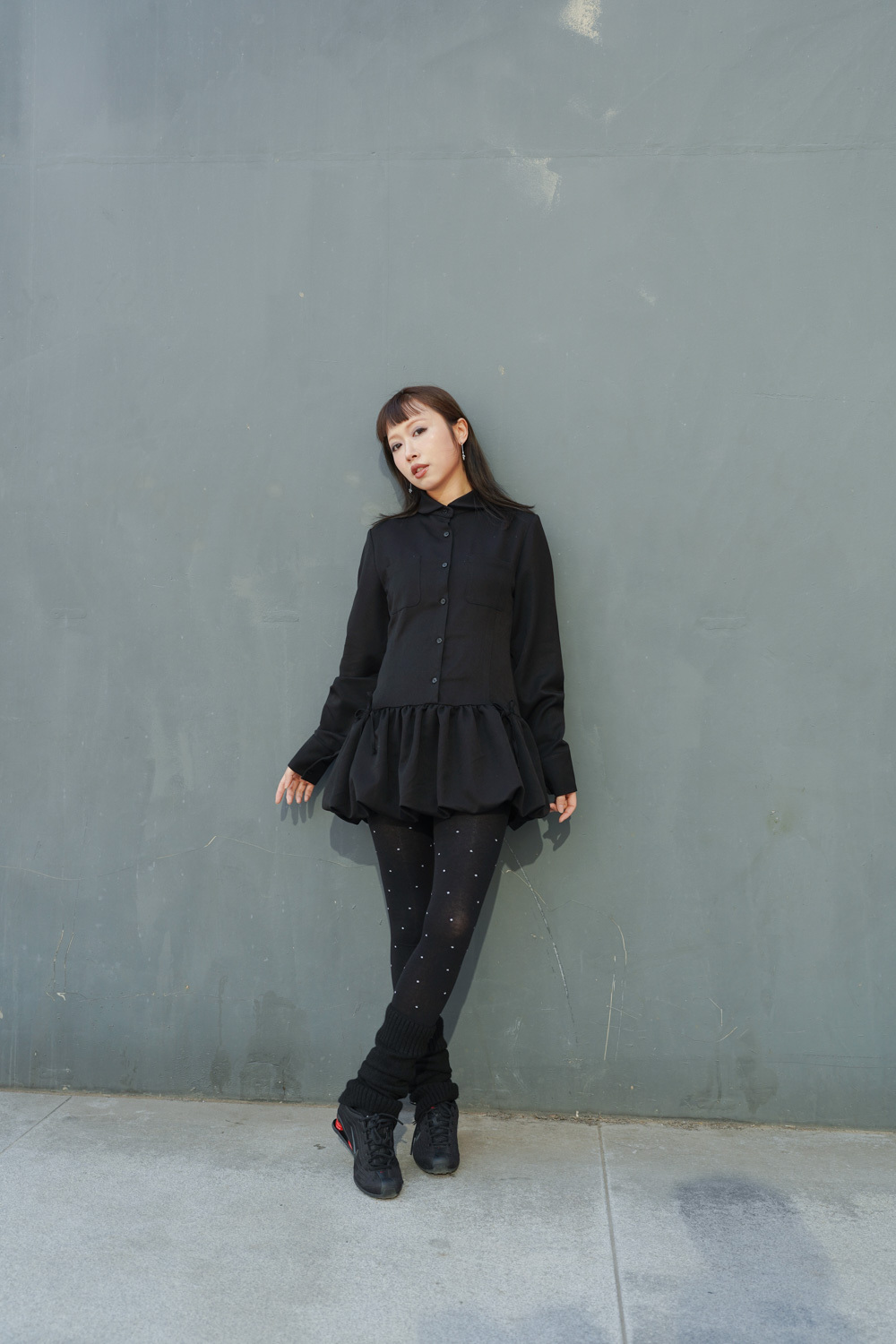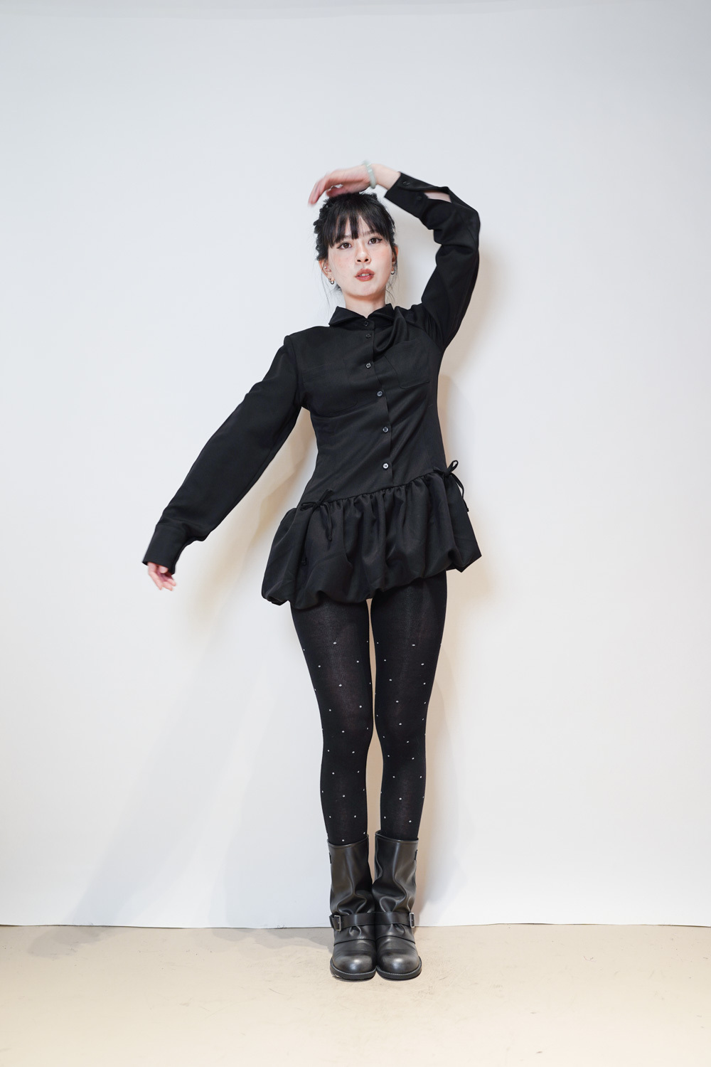 Low puff ribbons tokyo dress (GREY/ BLACK)