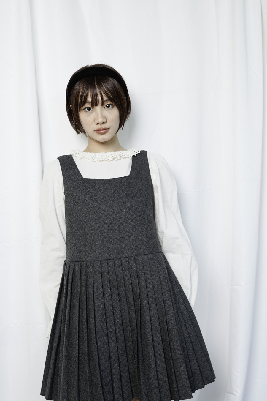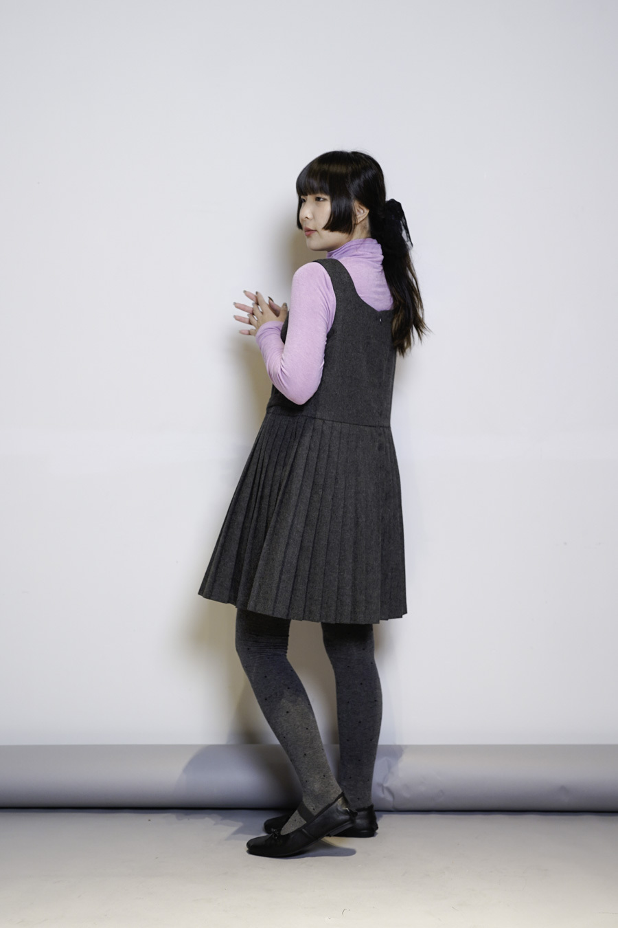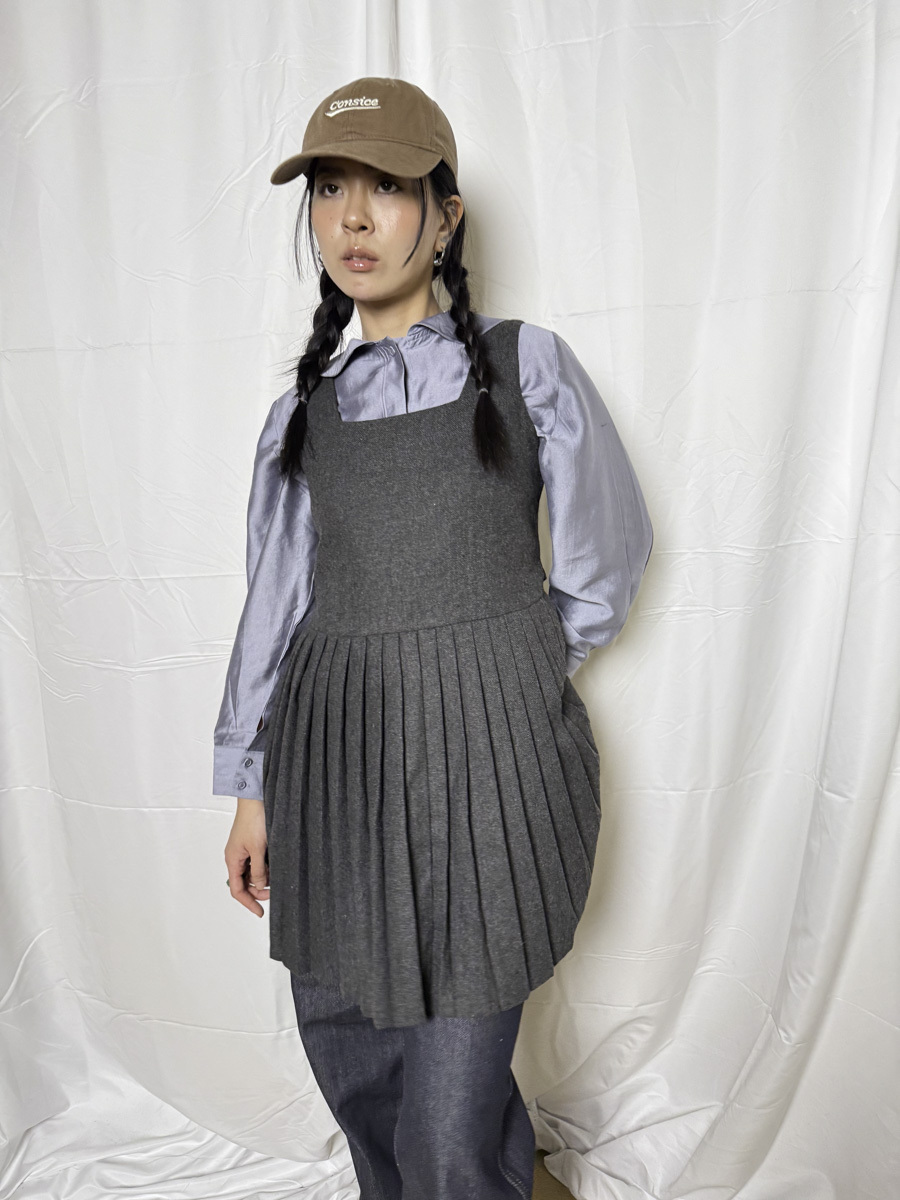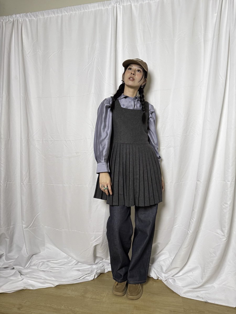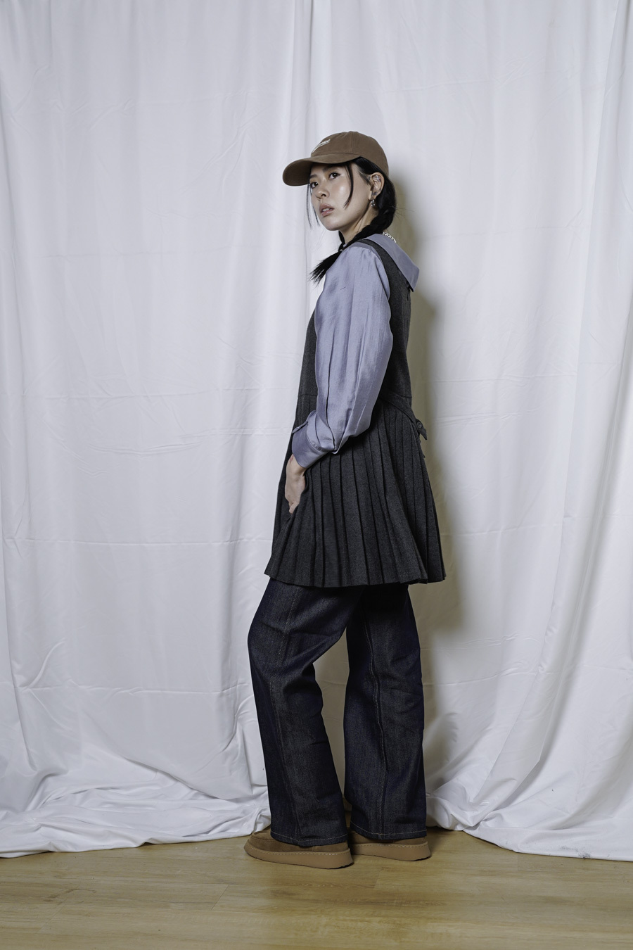 裙擺百摺設計/ 領口方形設計/顯露直角肩/