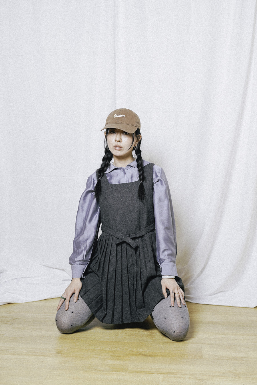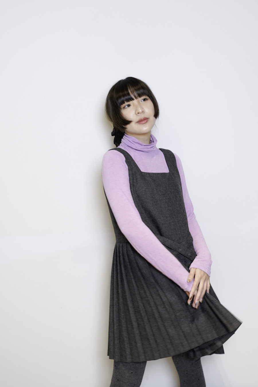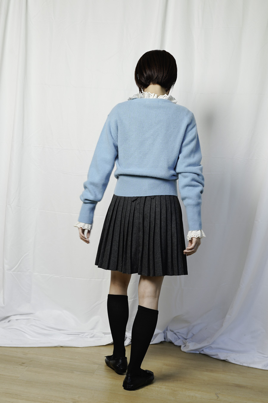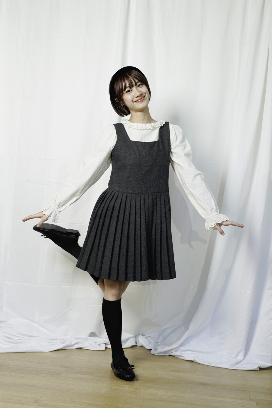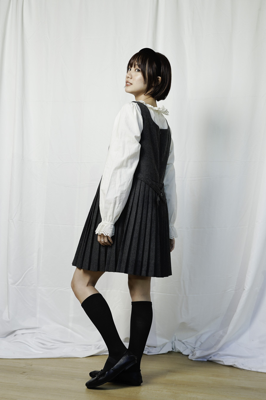 裙擺百摺設計/ 領口方形設計/顯露直角肩/