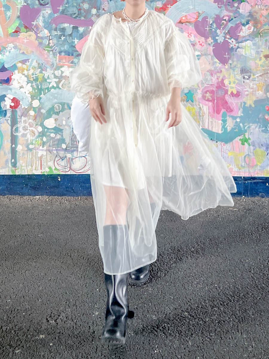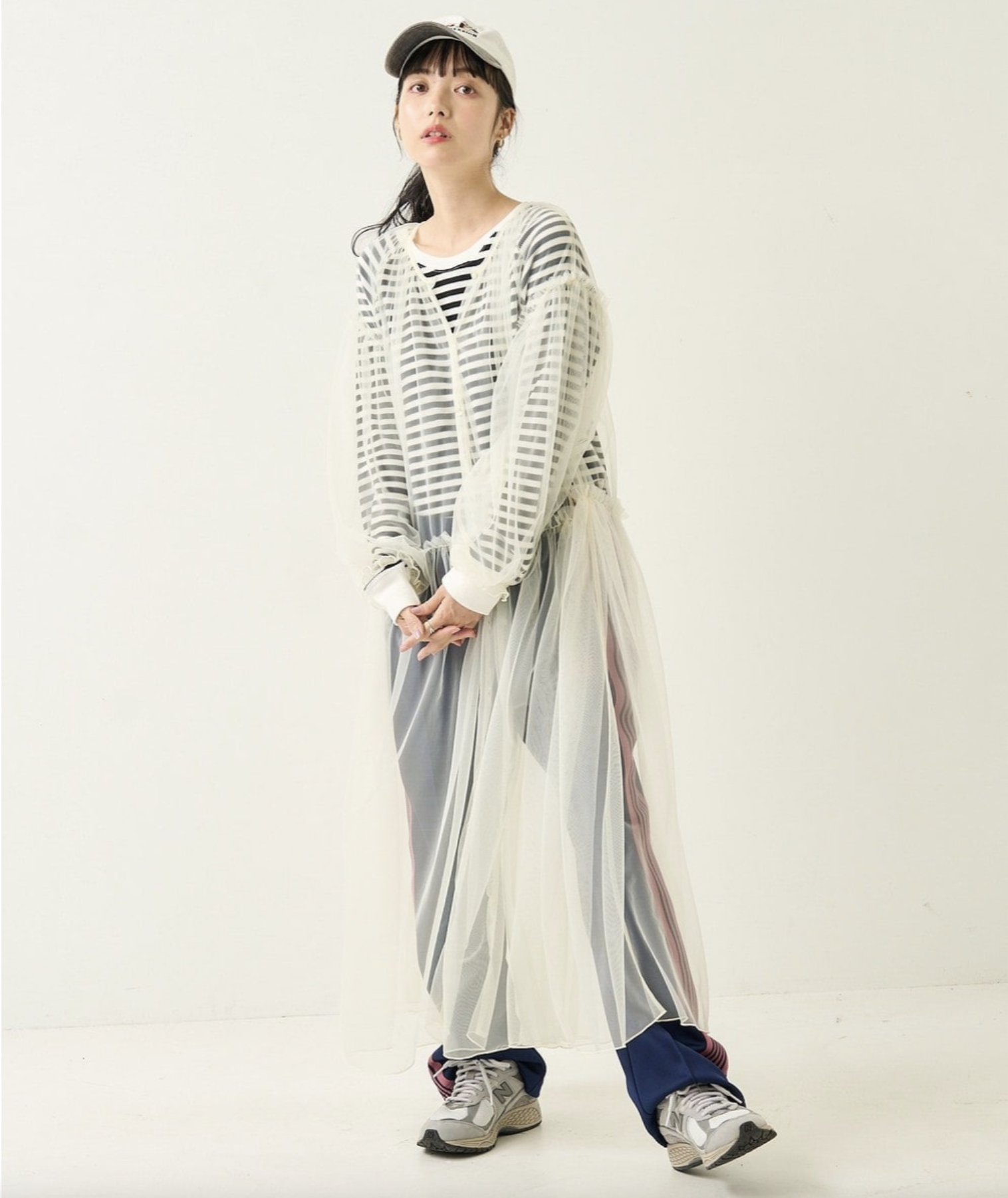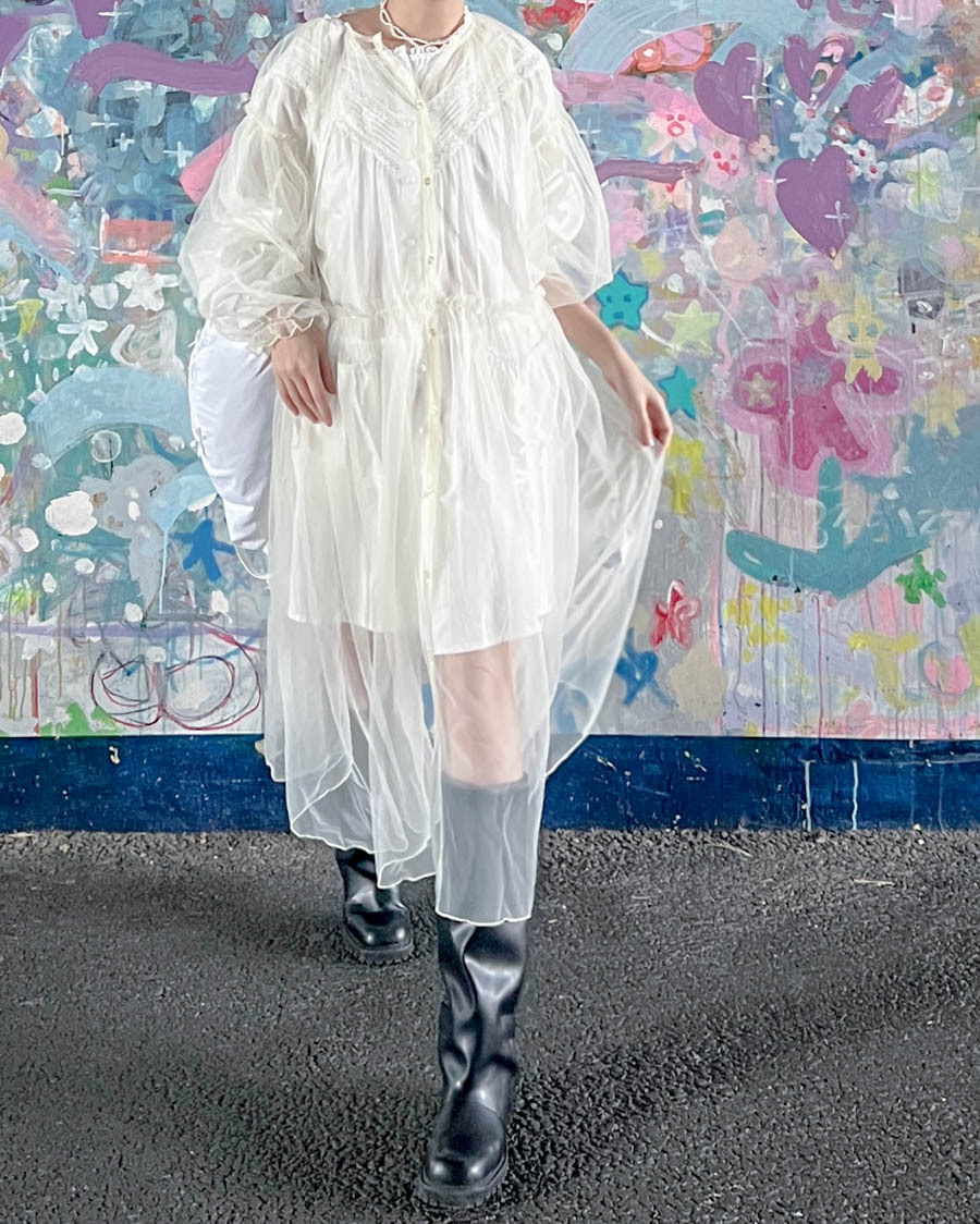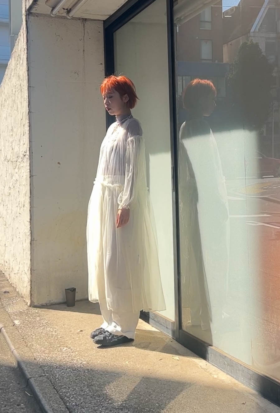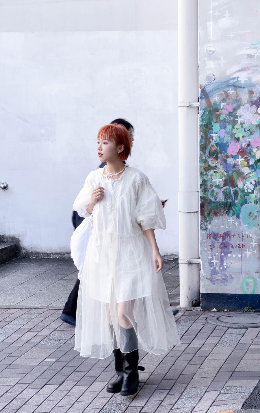 ●不同質感的薄紗長袖連身裙,改變你一貫的風格。