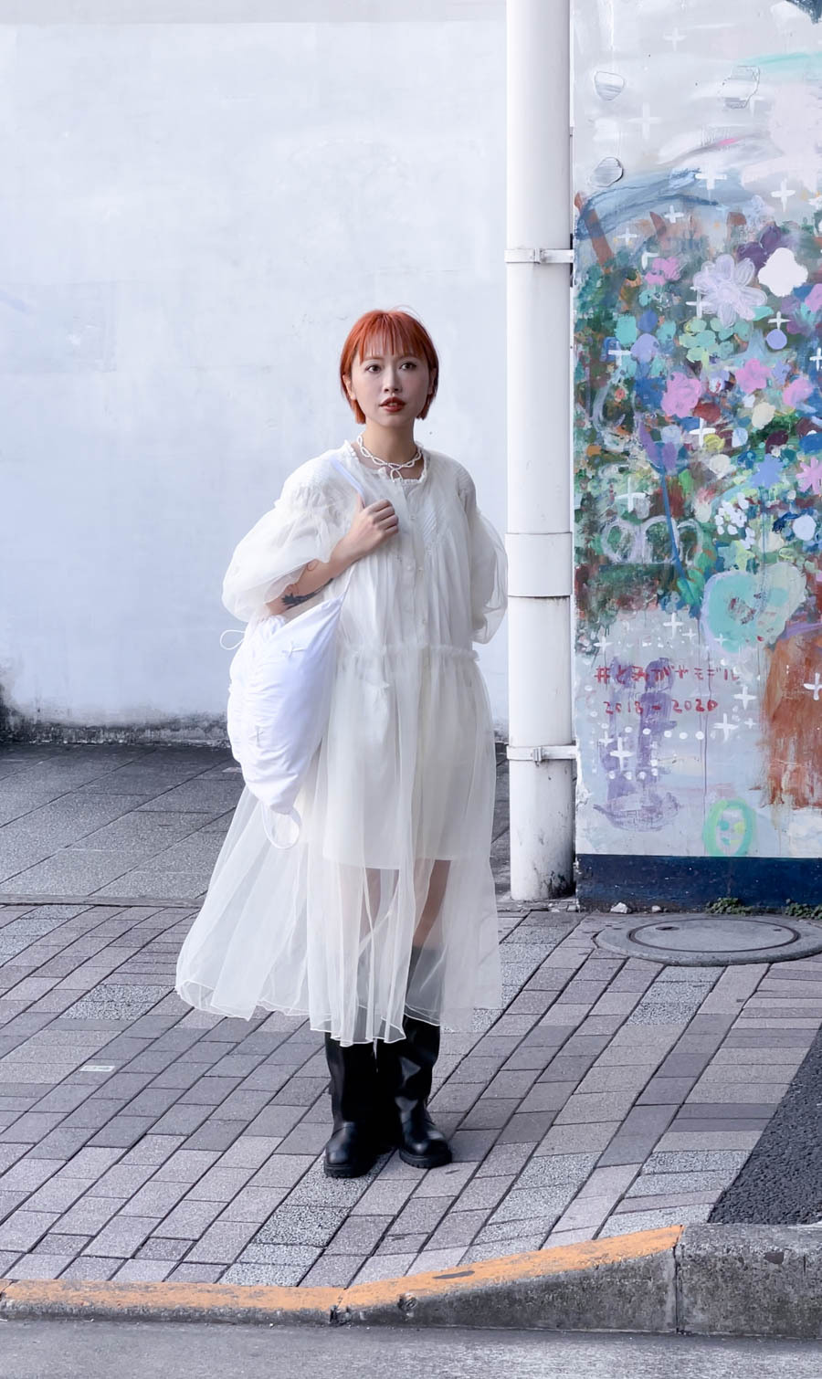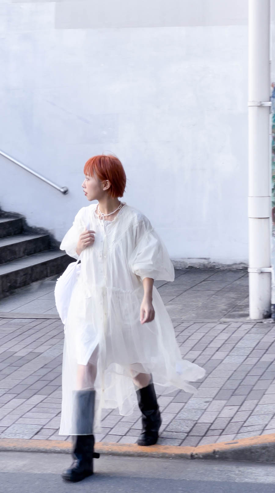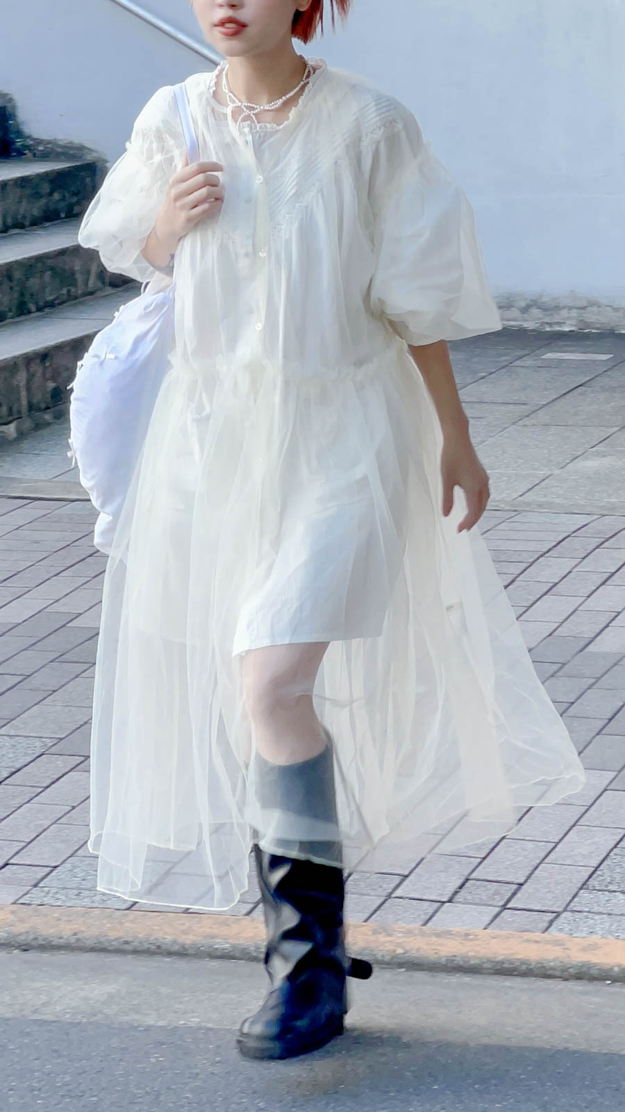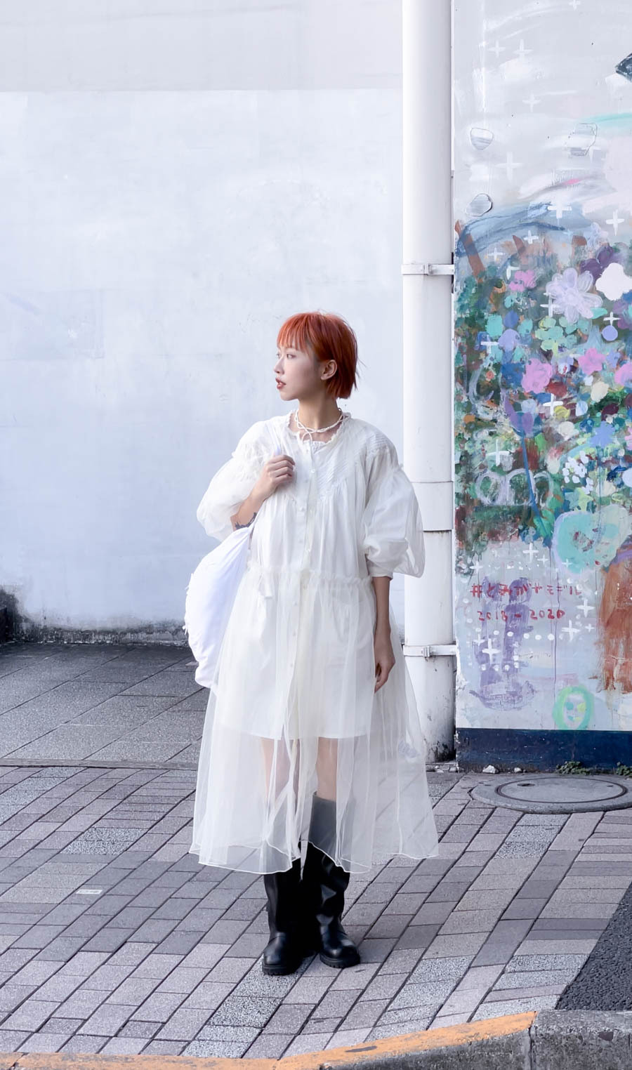 ●不同質感的薄紗長袖連身裙,改變你一貫的風格。
