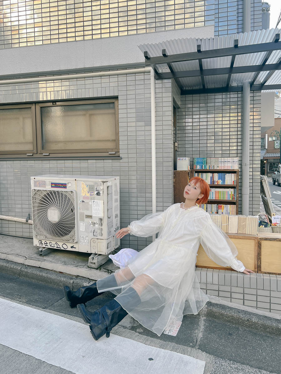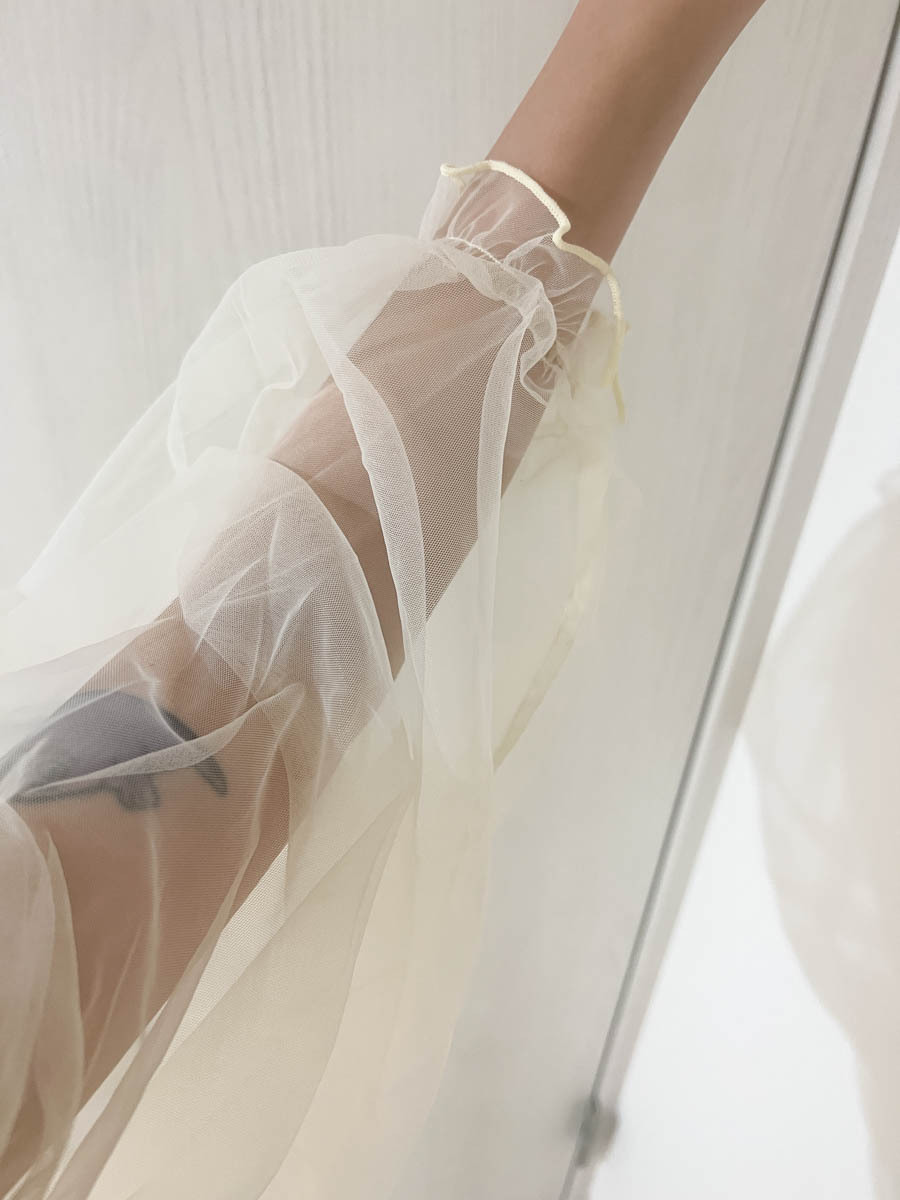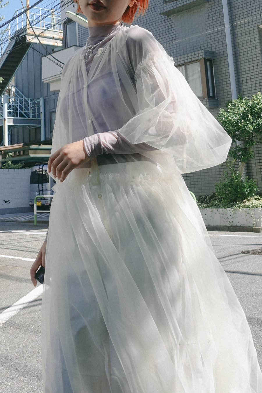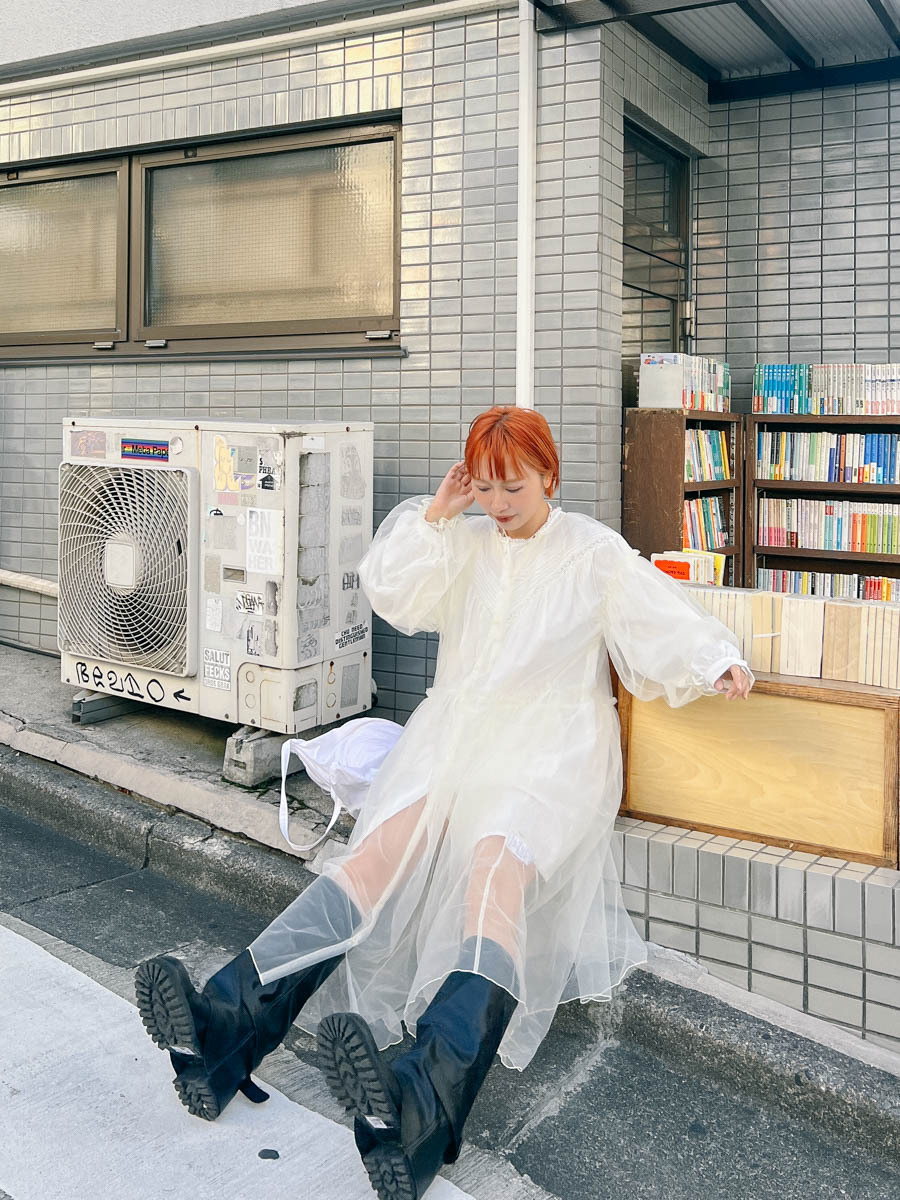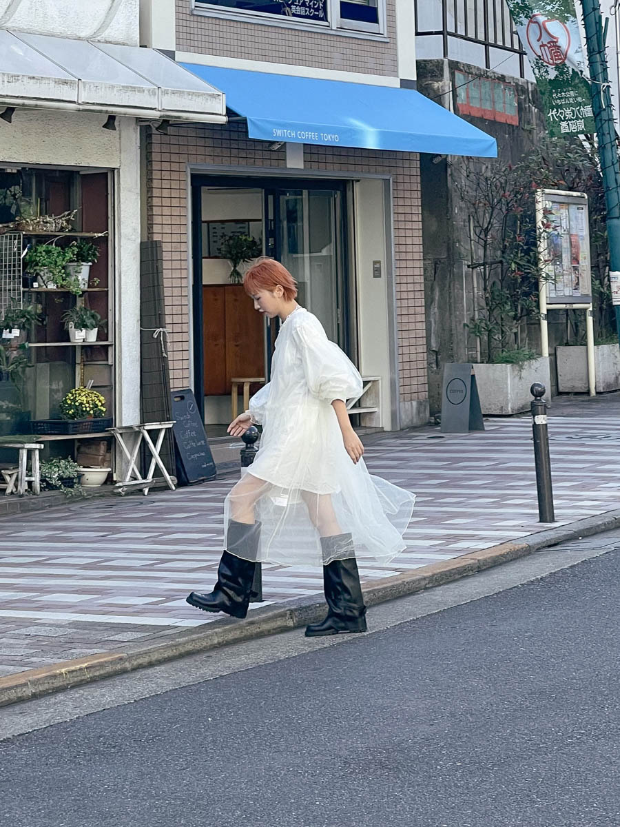 ●不同質感的薄紗長袖連身裙,改變你一貫的風格。