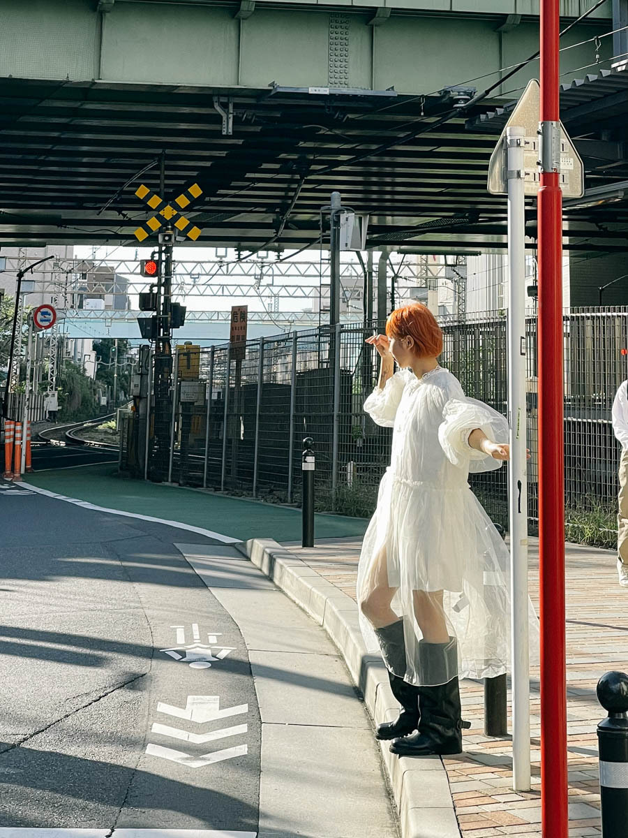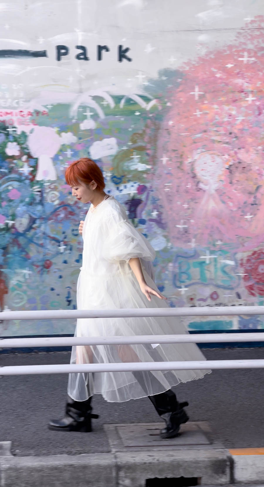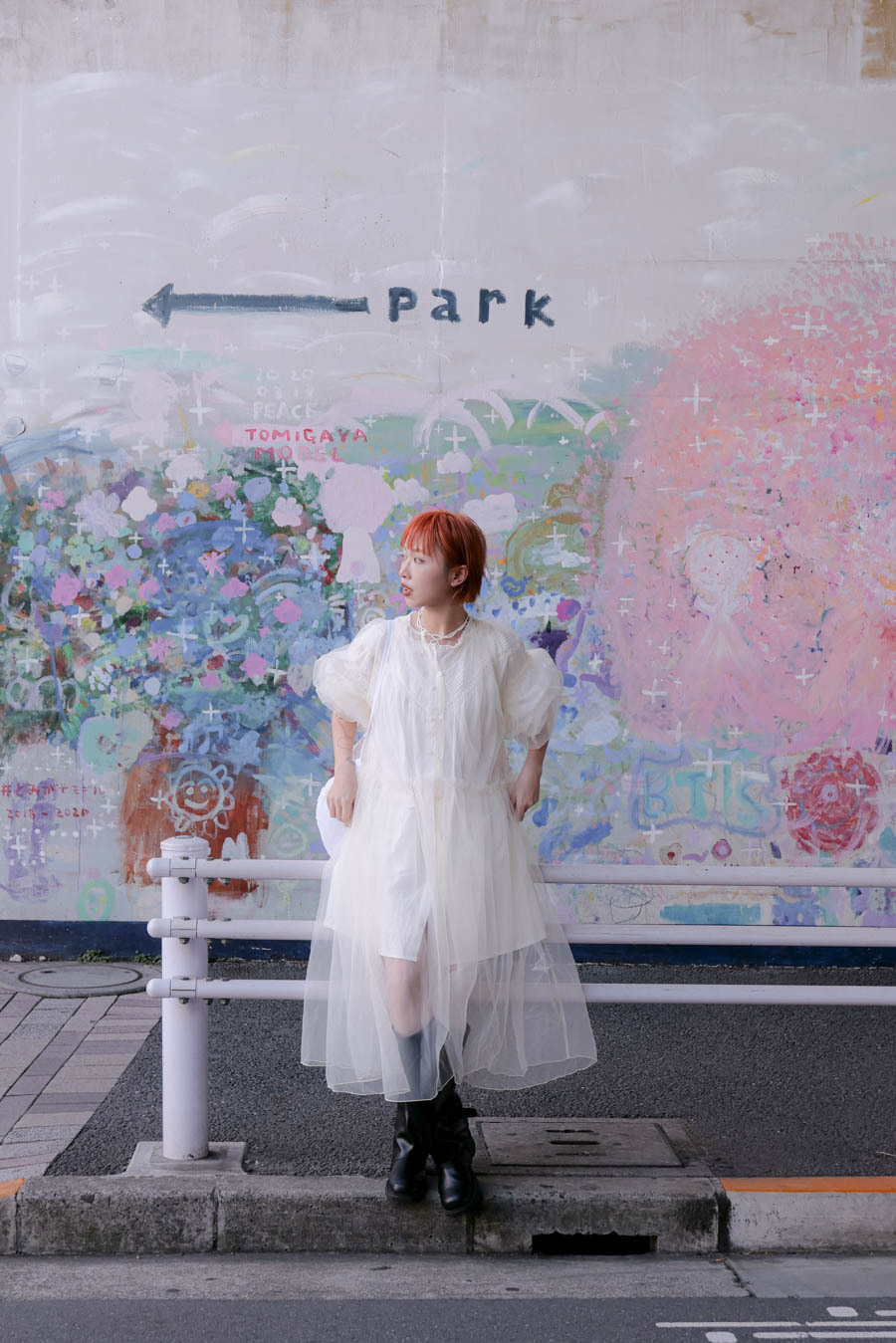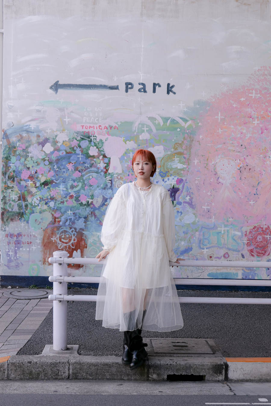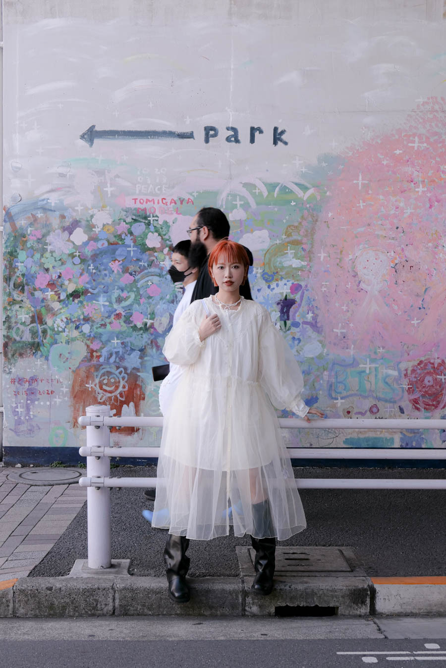 ●不同質感的薄紗長袖連身裙,改變你一貫的風格。