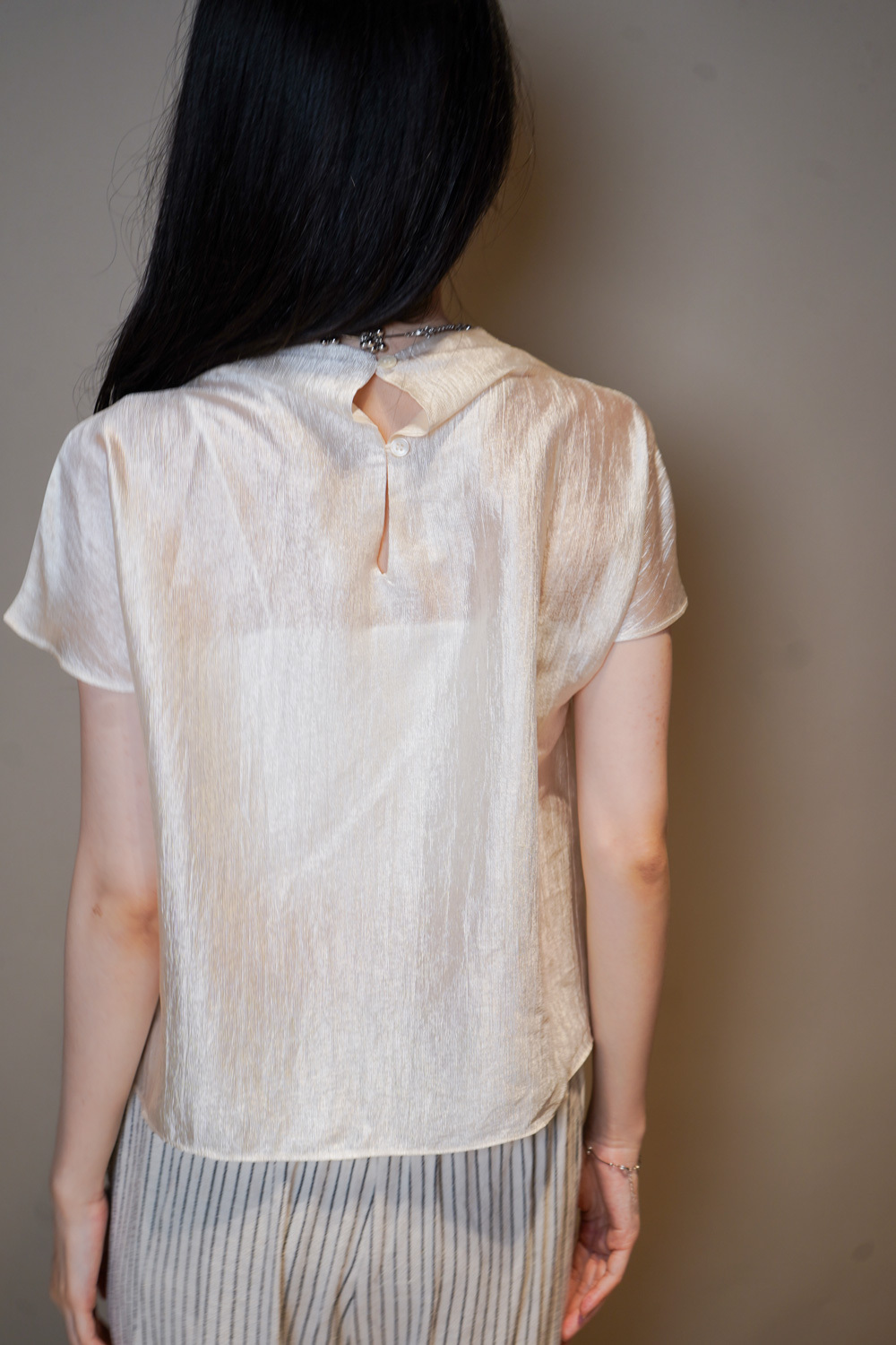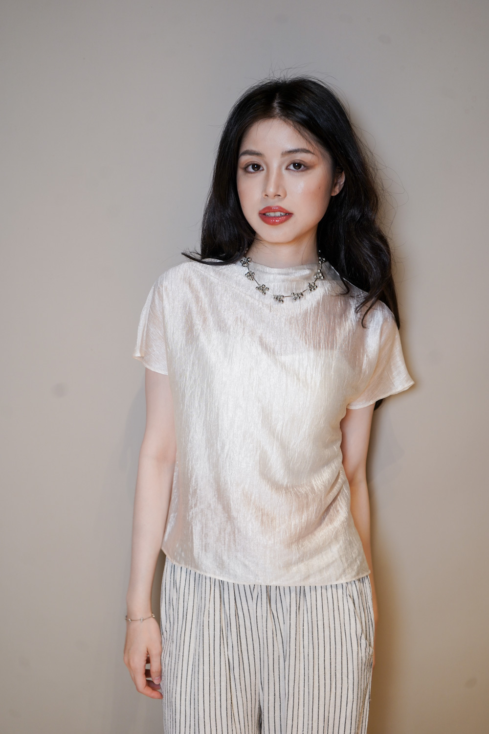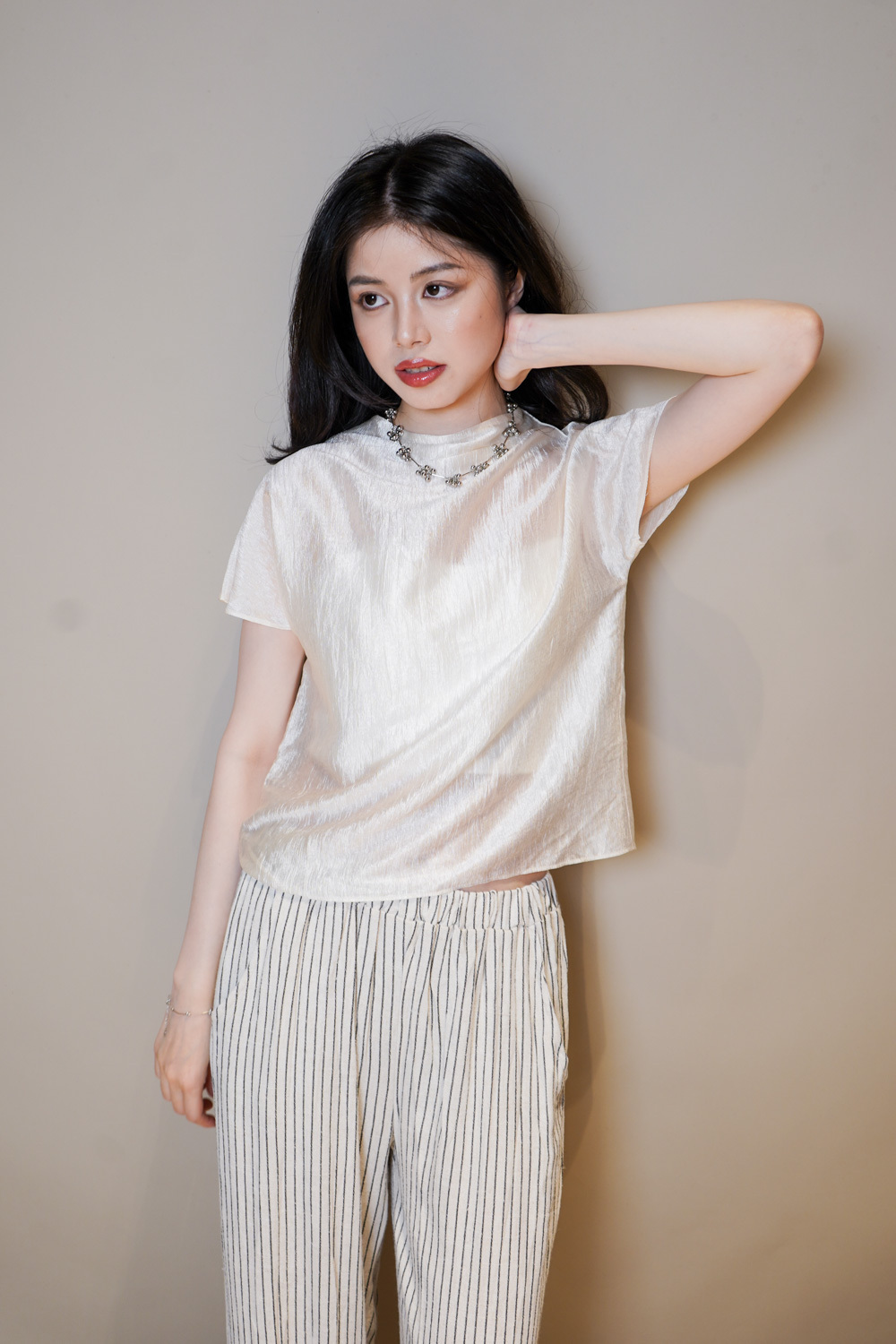 Metallic wing sleeve top (SILVER GREY/WHITE)
