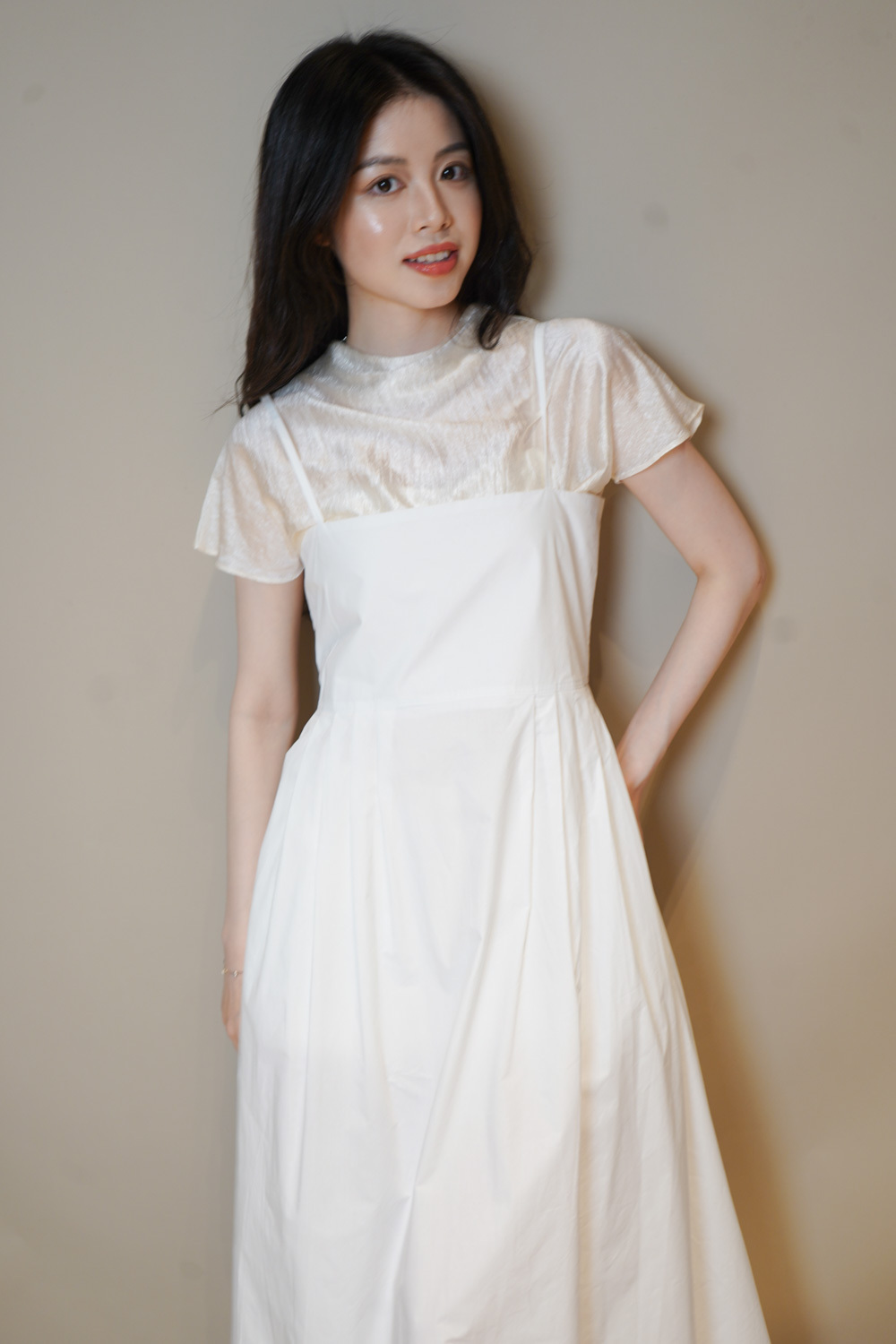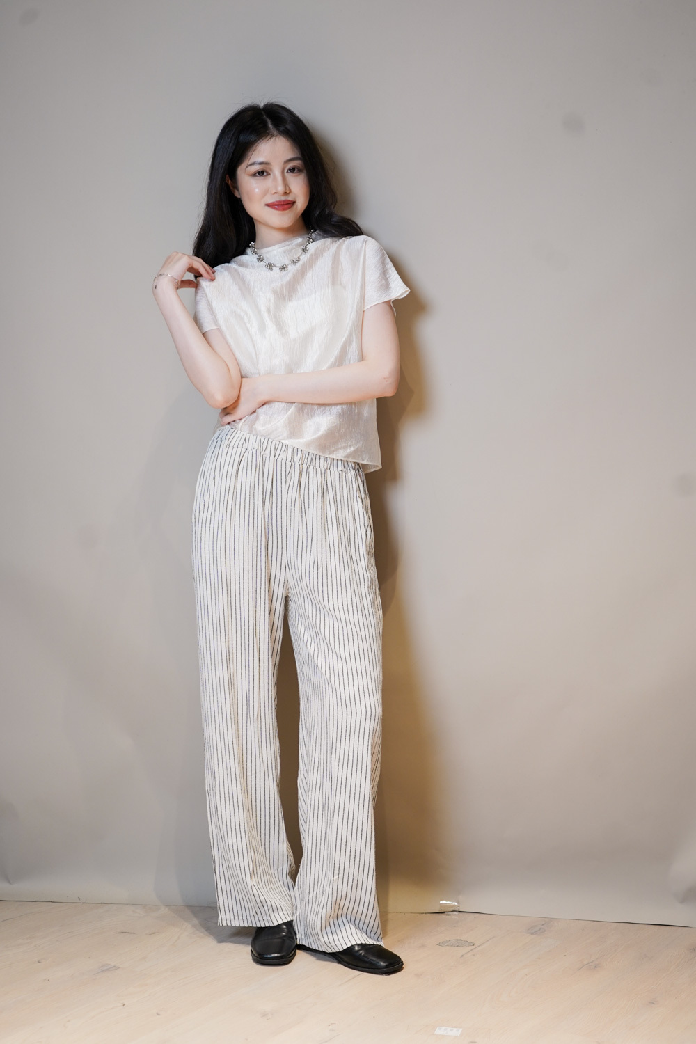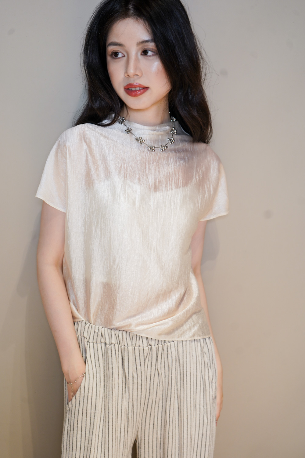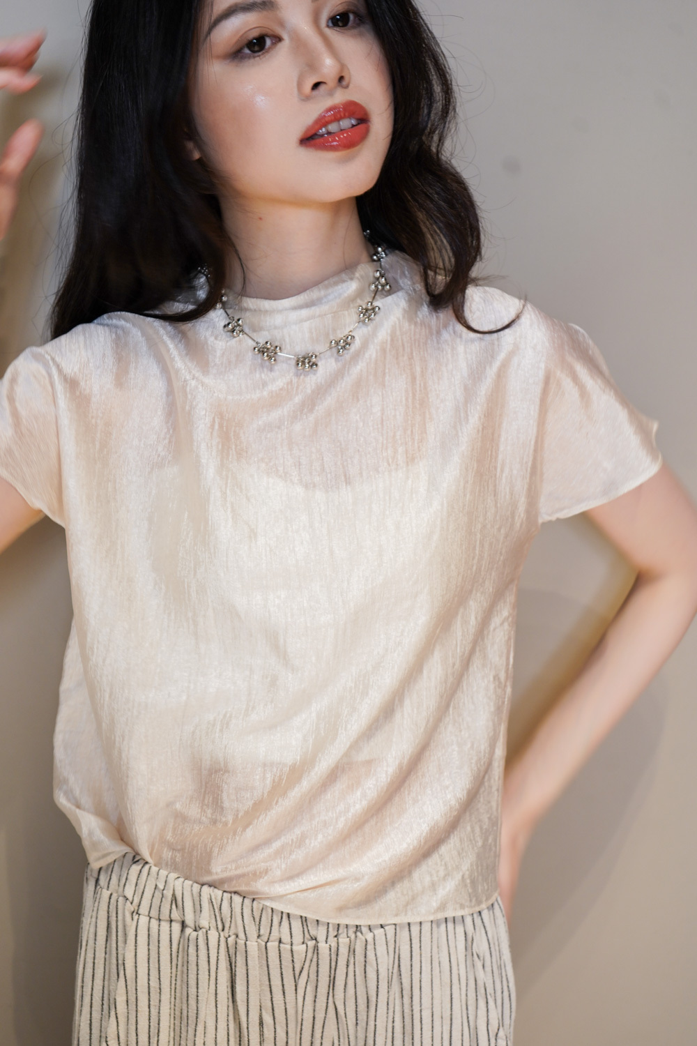 Metallic wing sleeve top (SILVER GREY/WHITE)