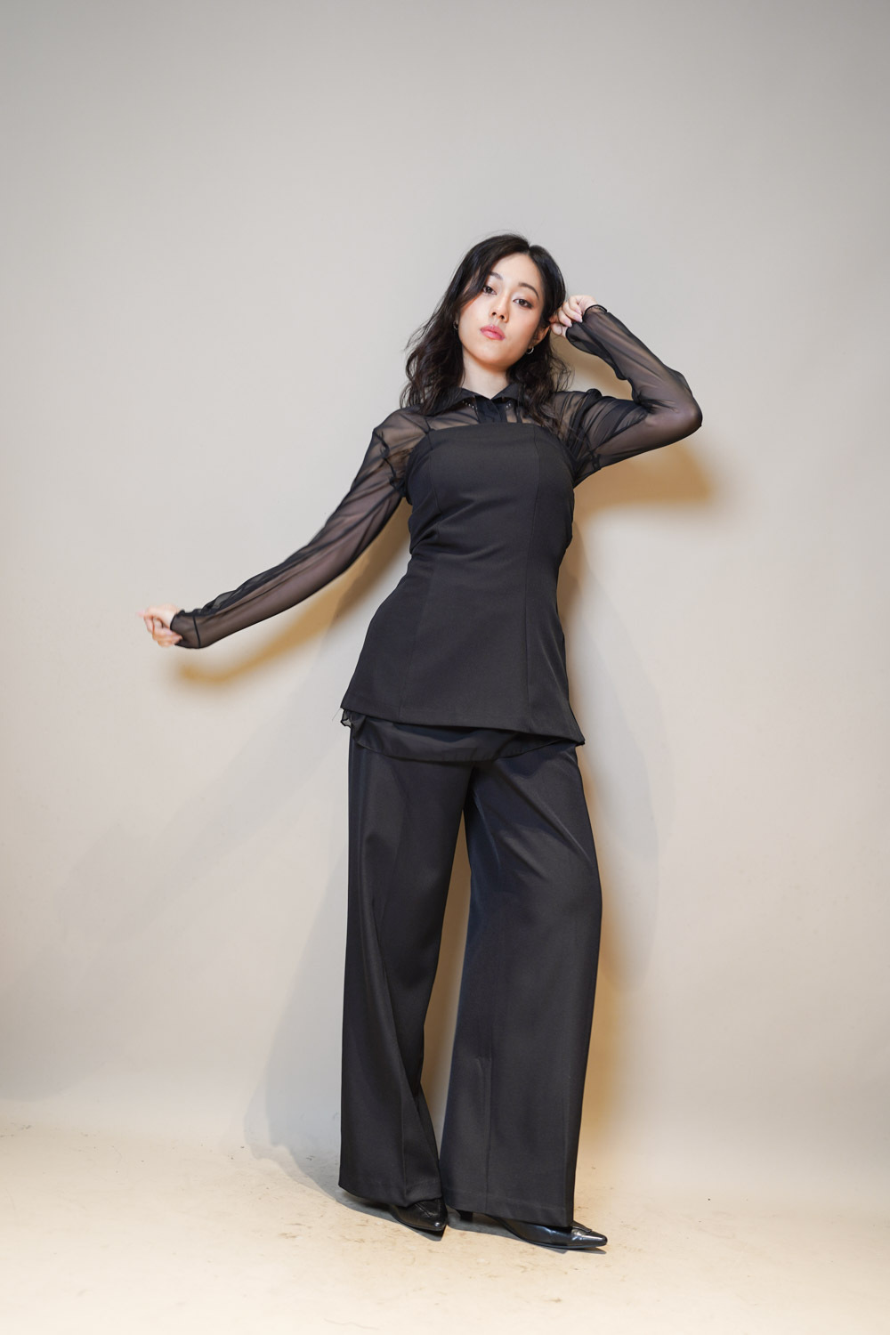 Metro tube set : Straight leg trousers (KHAKI/BLACK)