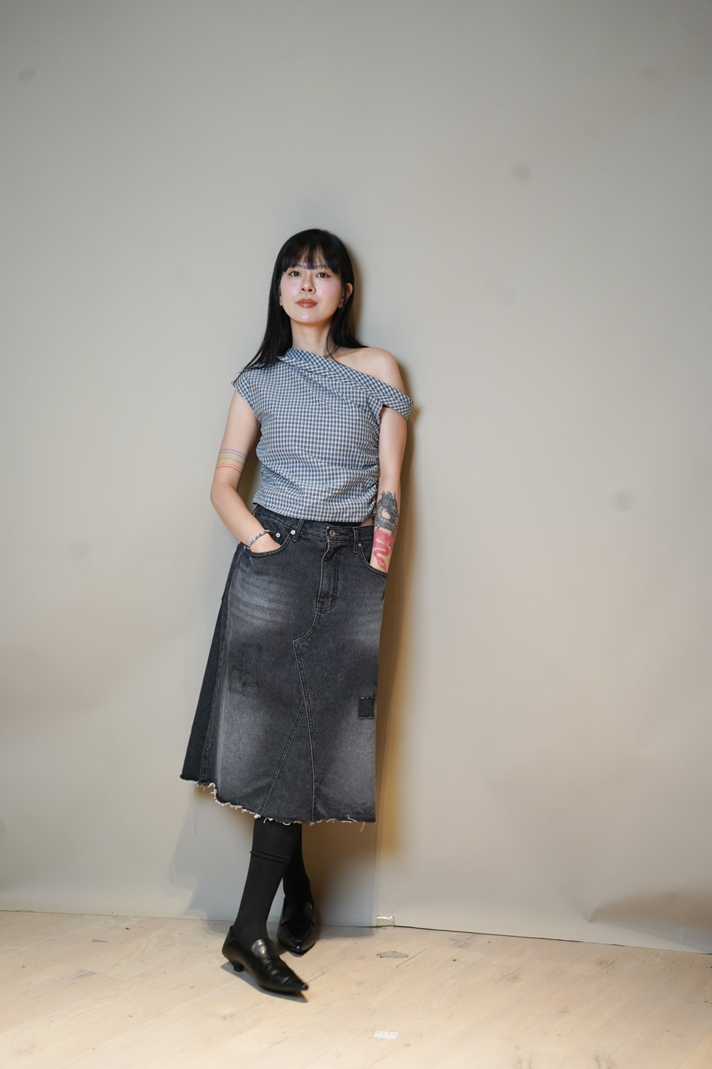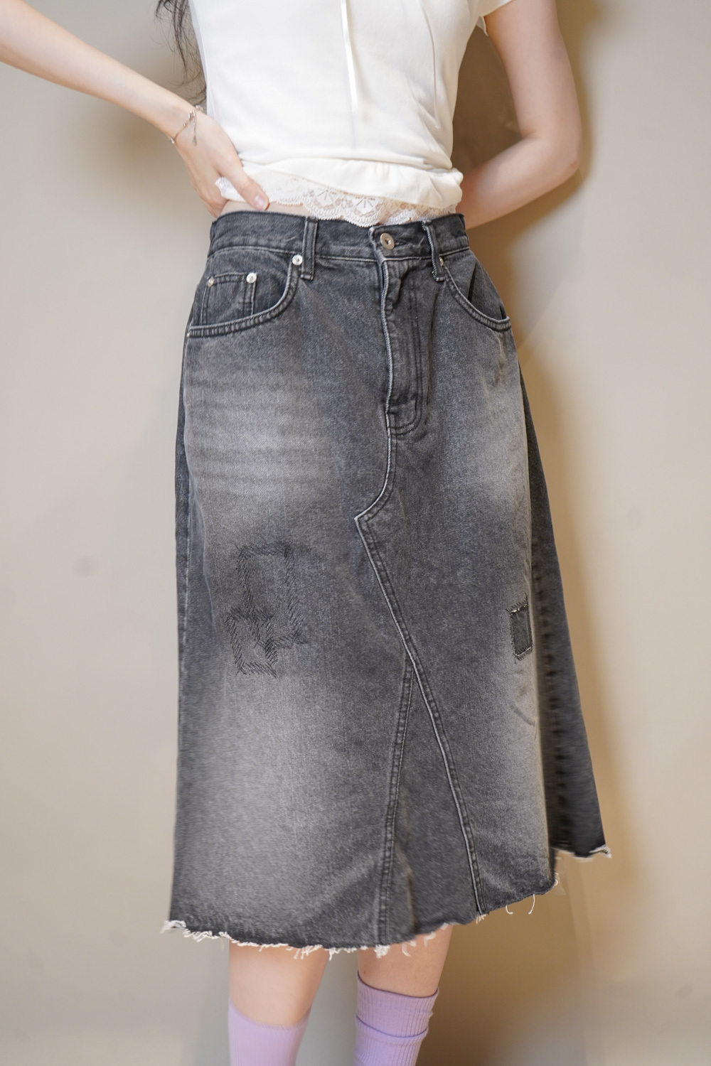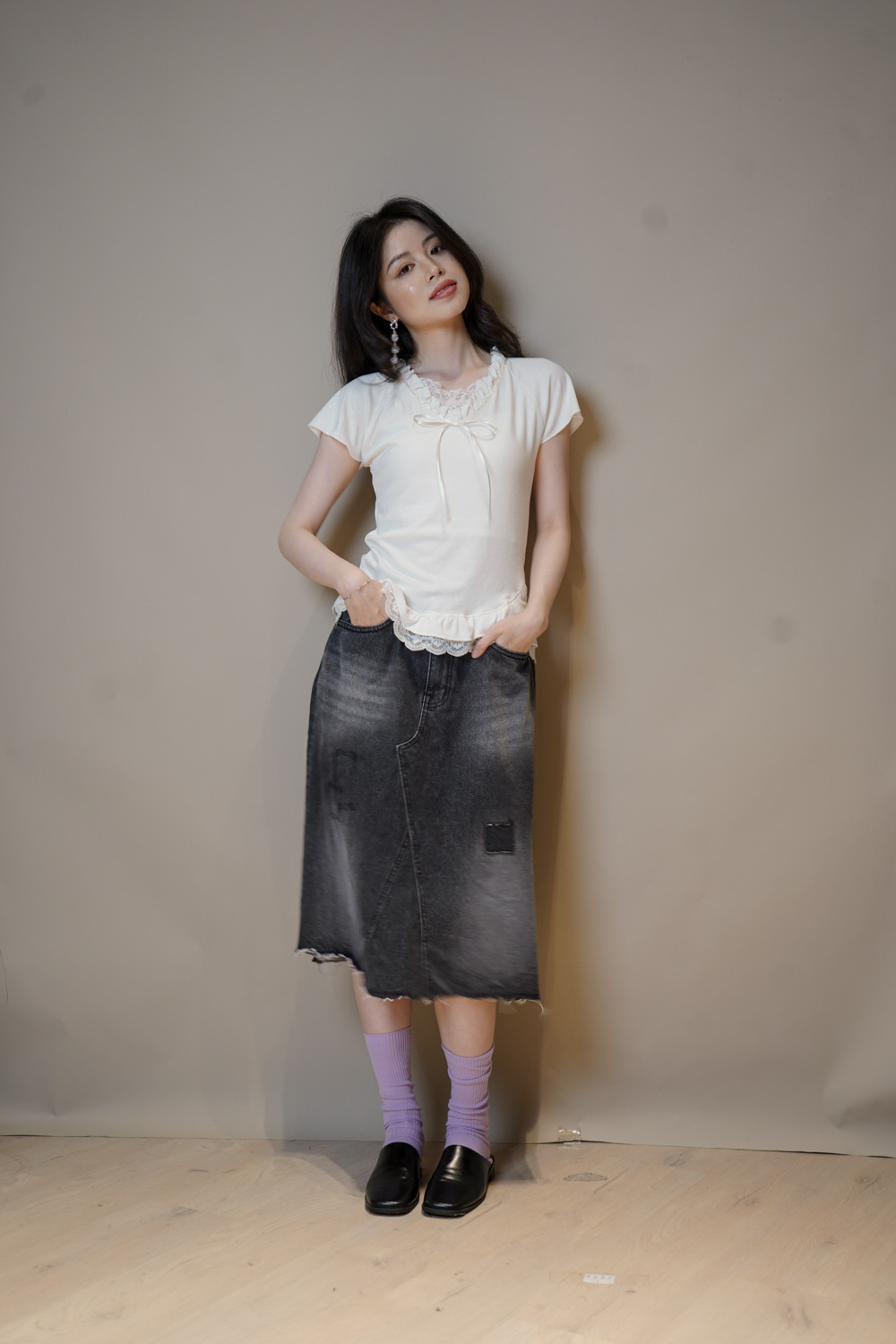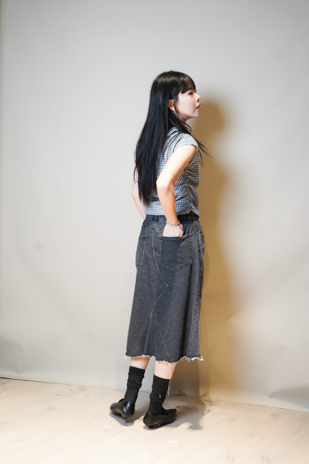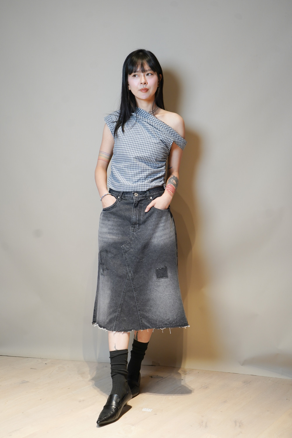 裙尾破邊設計/ 方形仿縫補 基本款中顯設計感/
