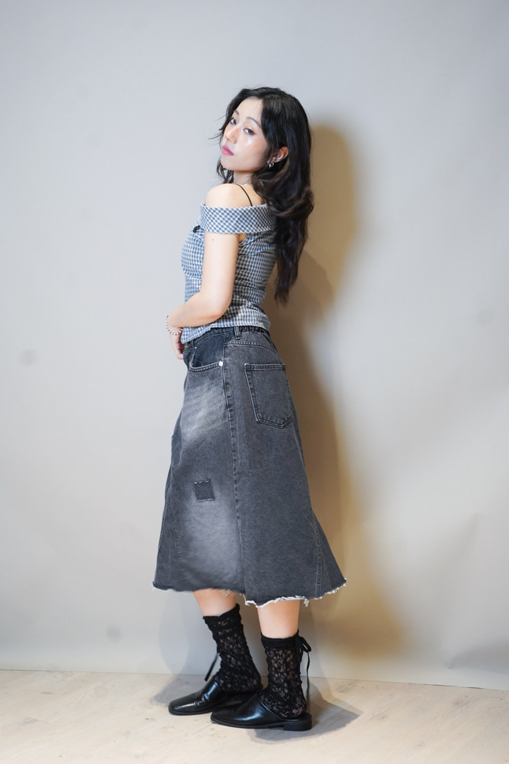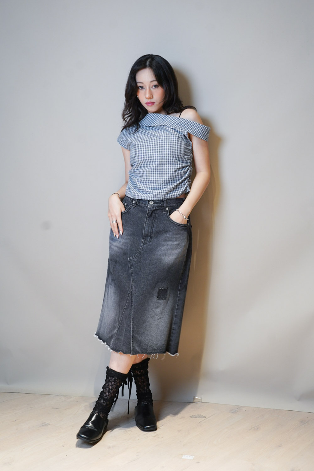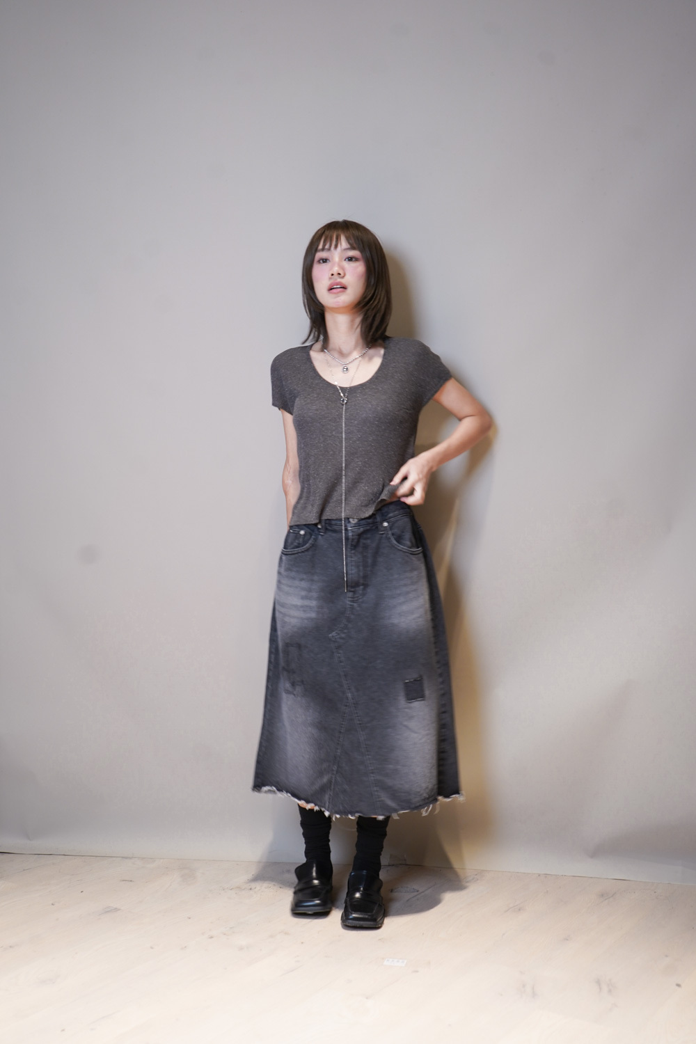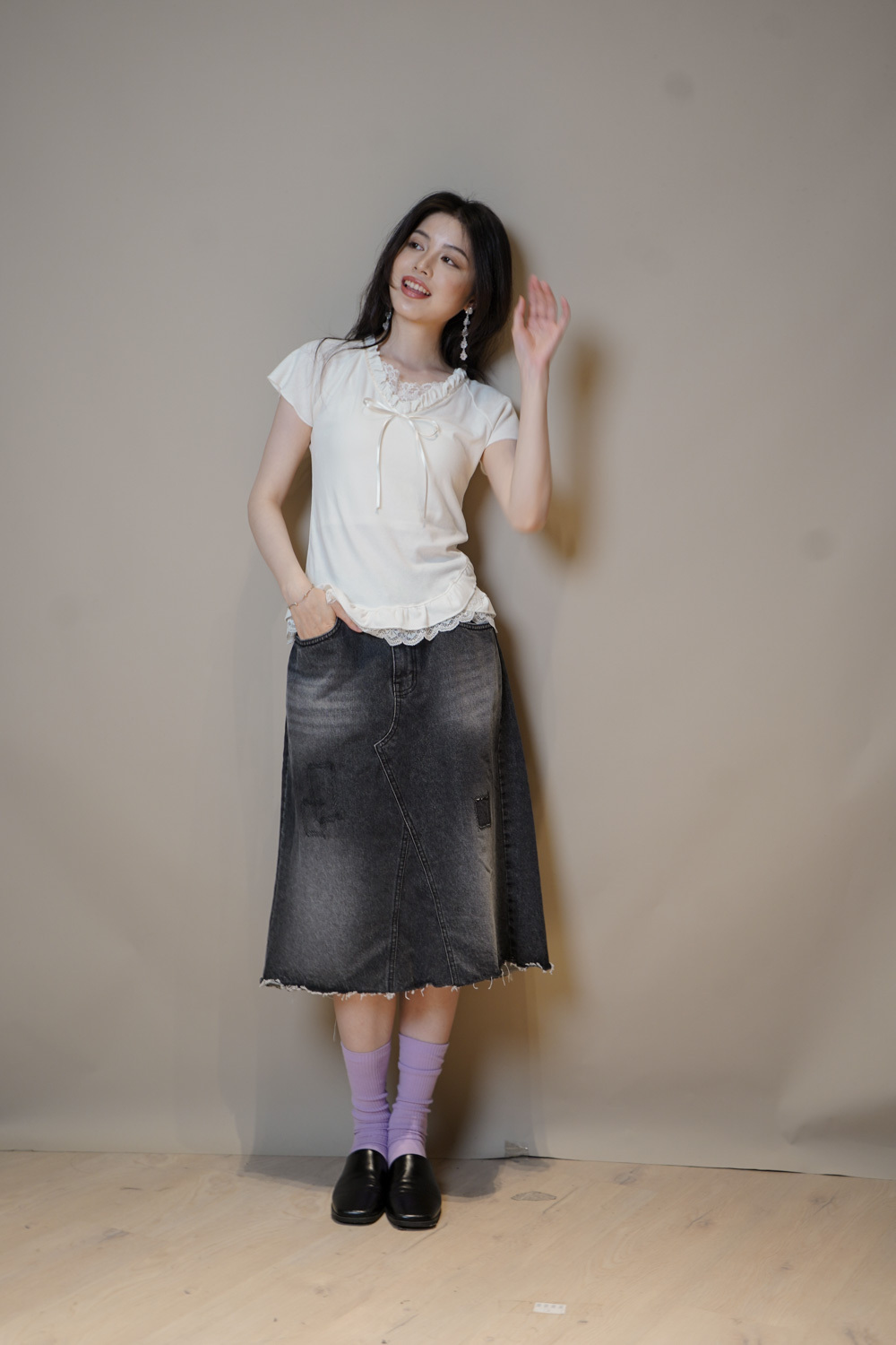 裙尾破邊設計/ 方形仿縫補 基本款中顯設計感/