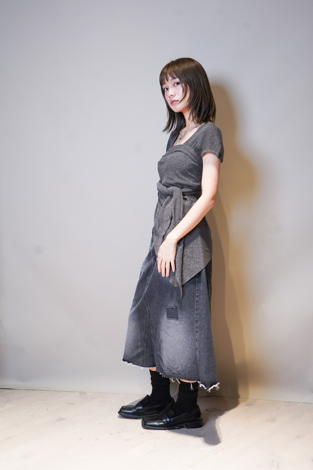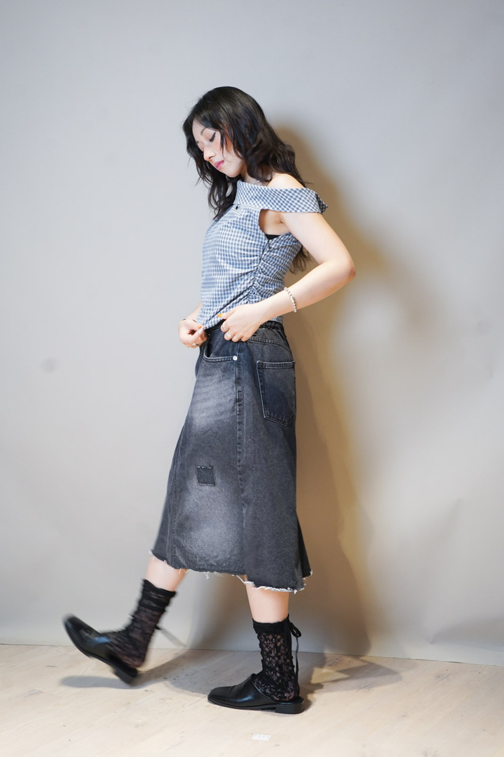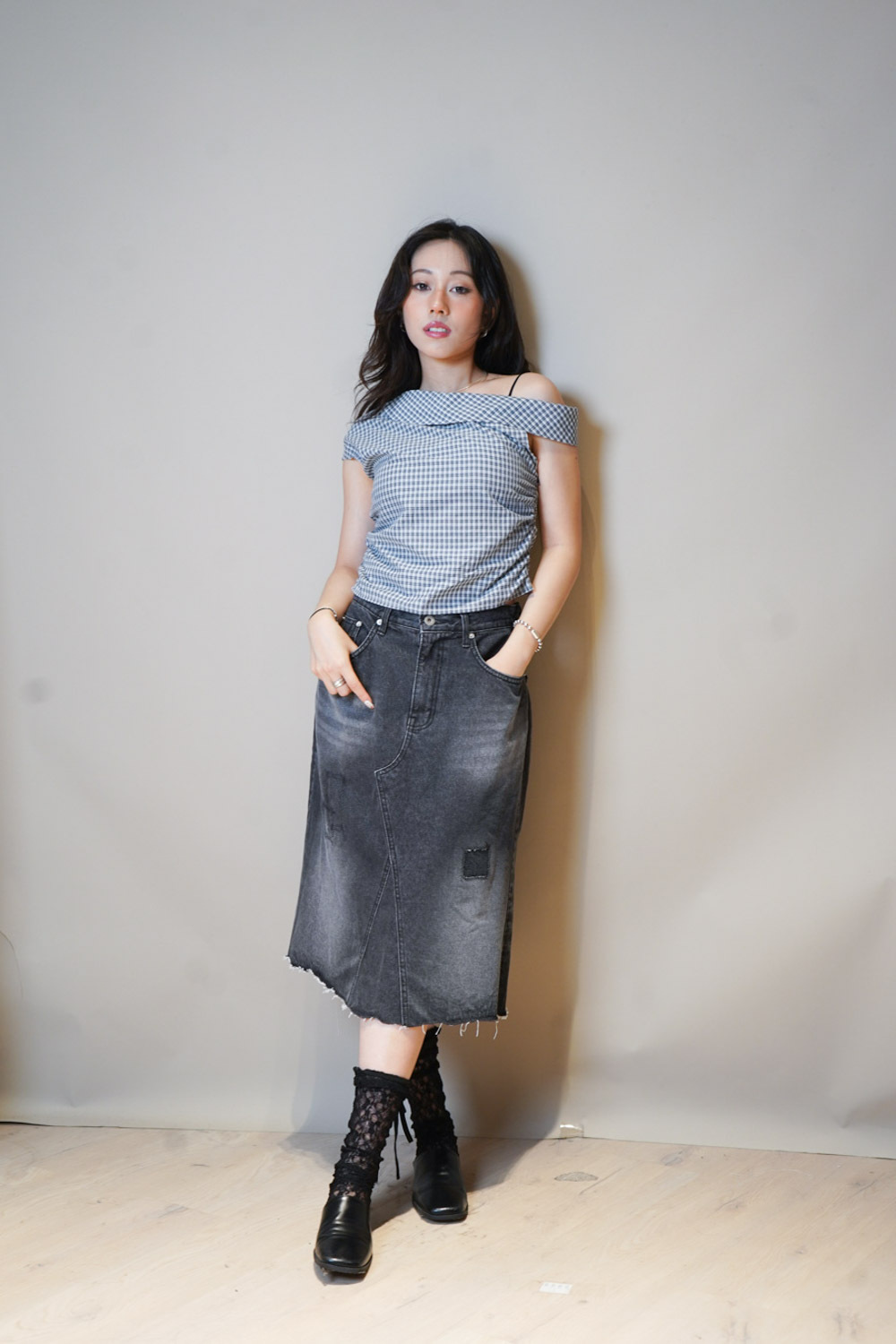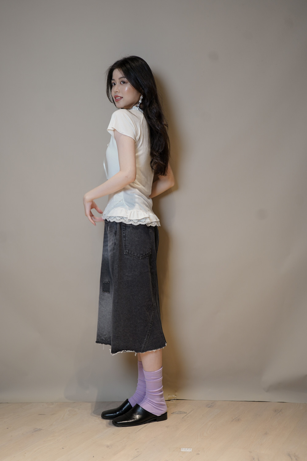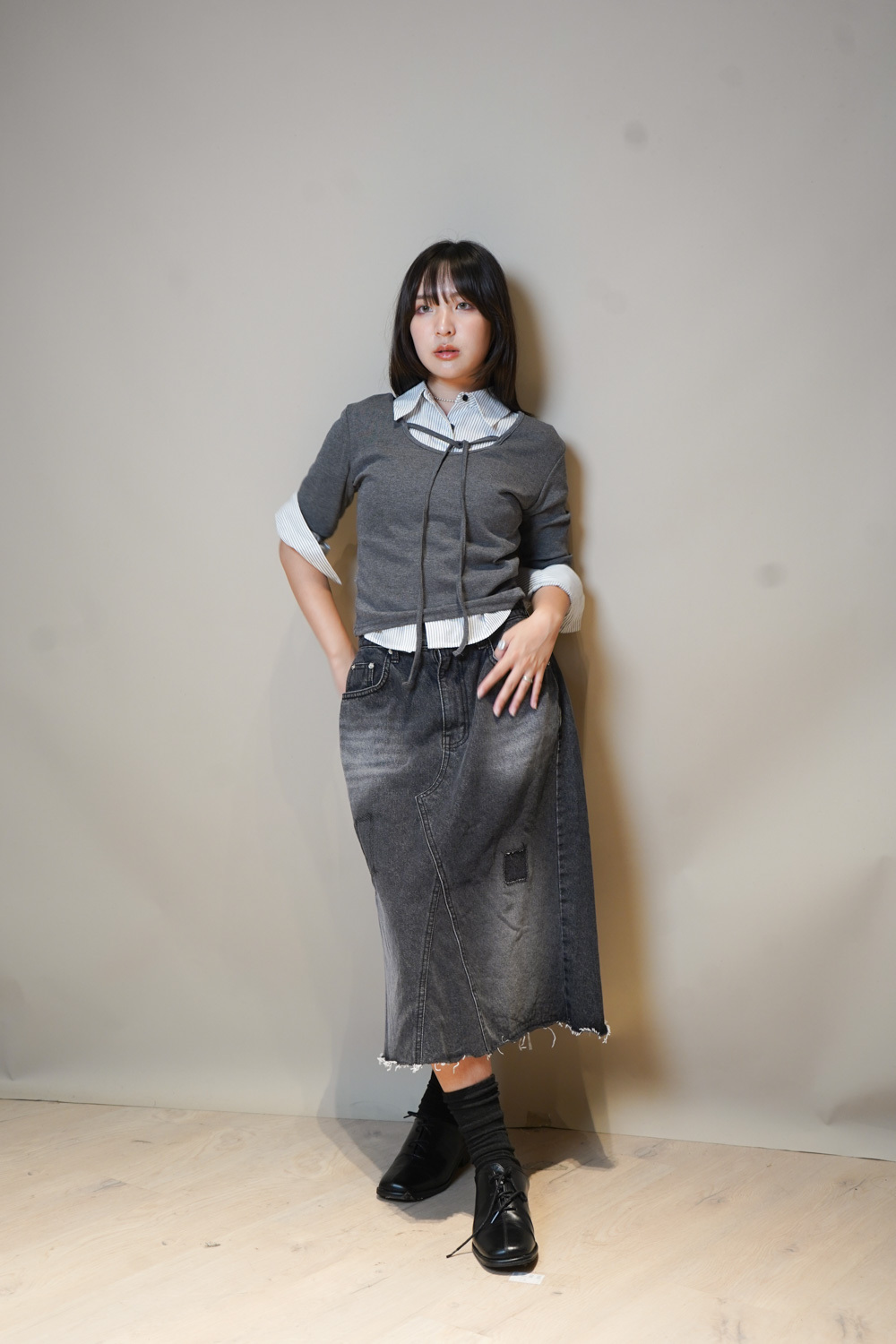 裙尾破邊設計/ 方形仿縫補 基本款中顯設計感/