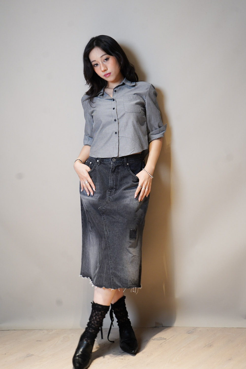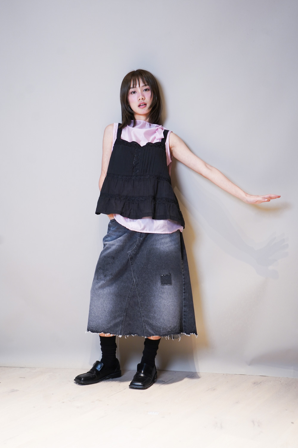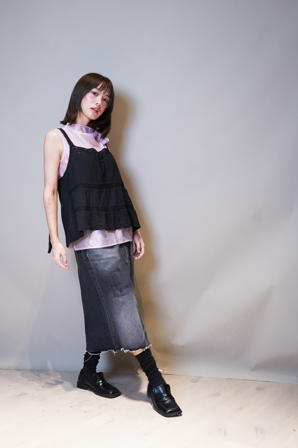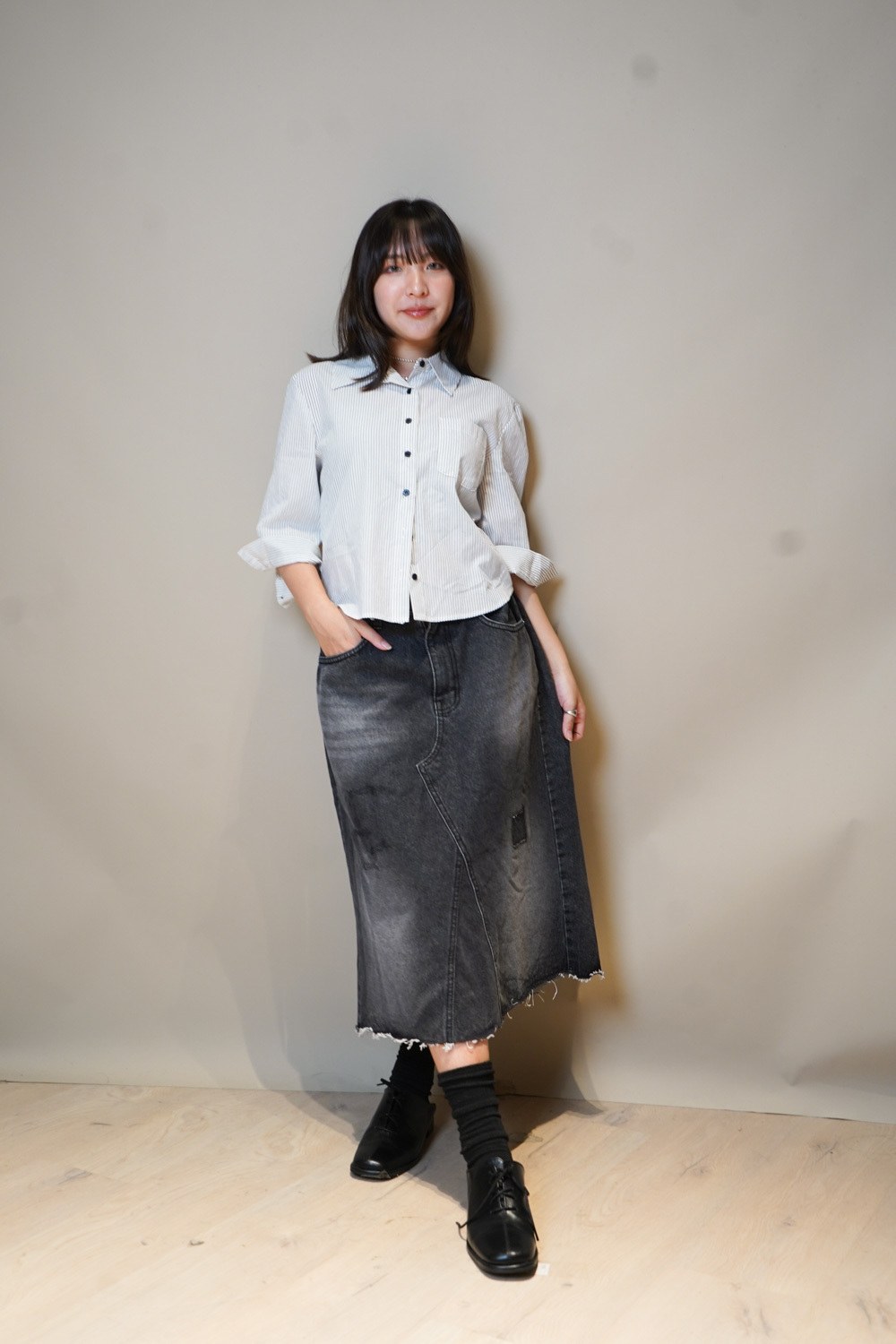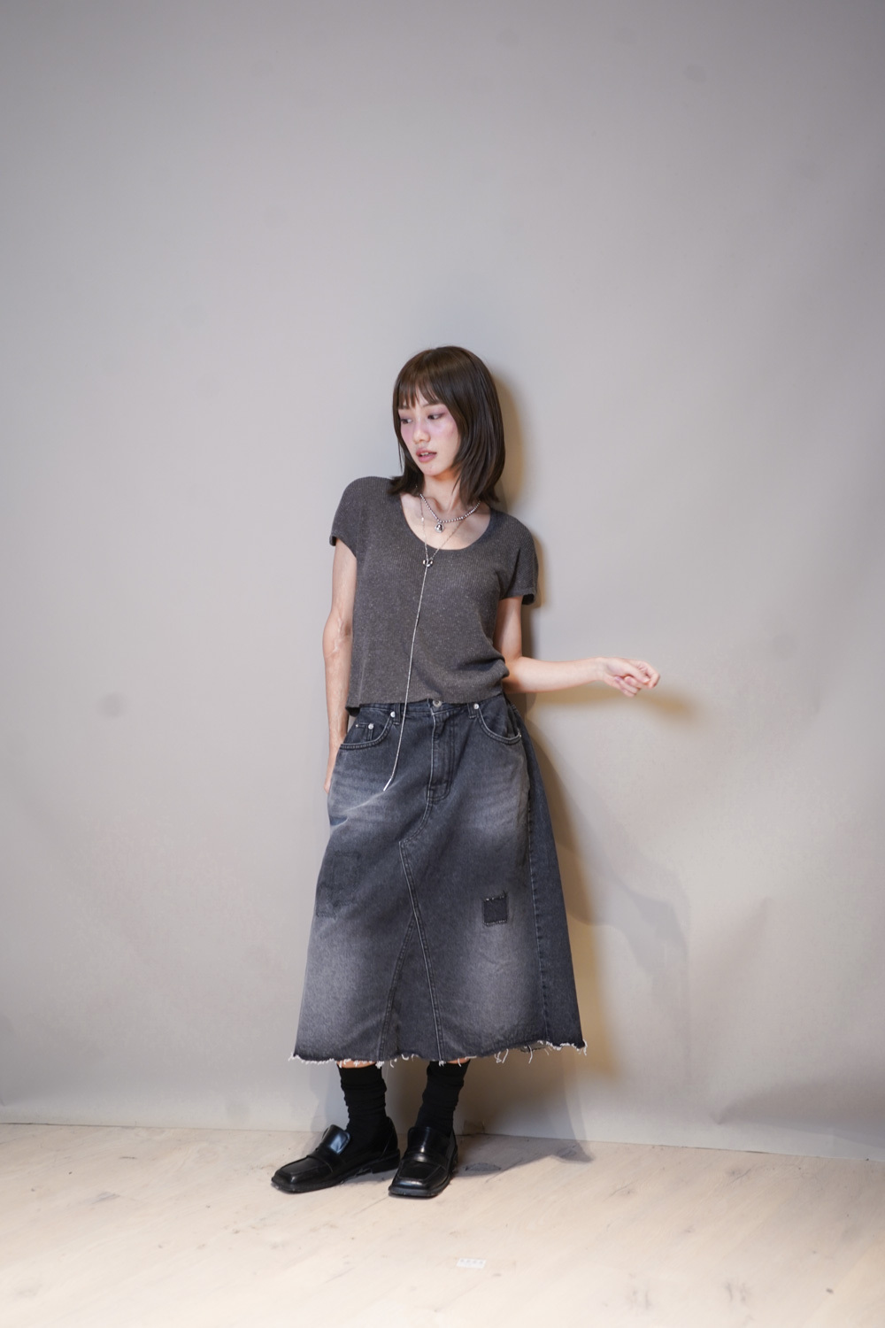 裙尾破邊設計/ 方形仿縫補 基本款中顯設計感/