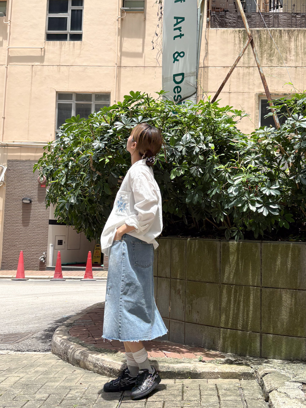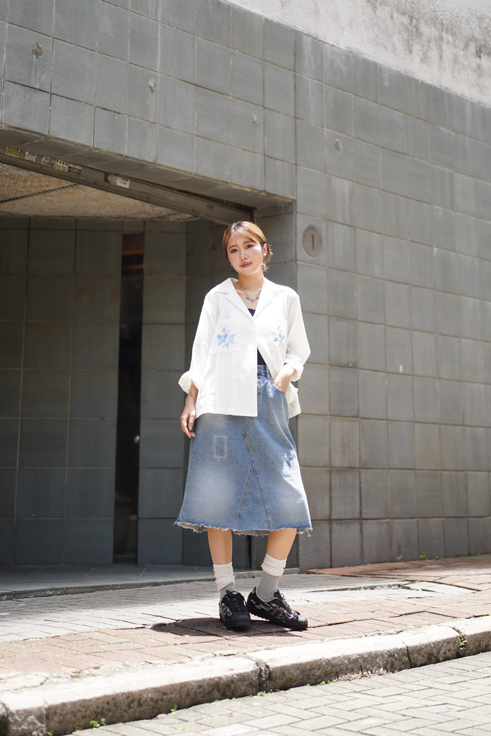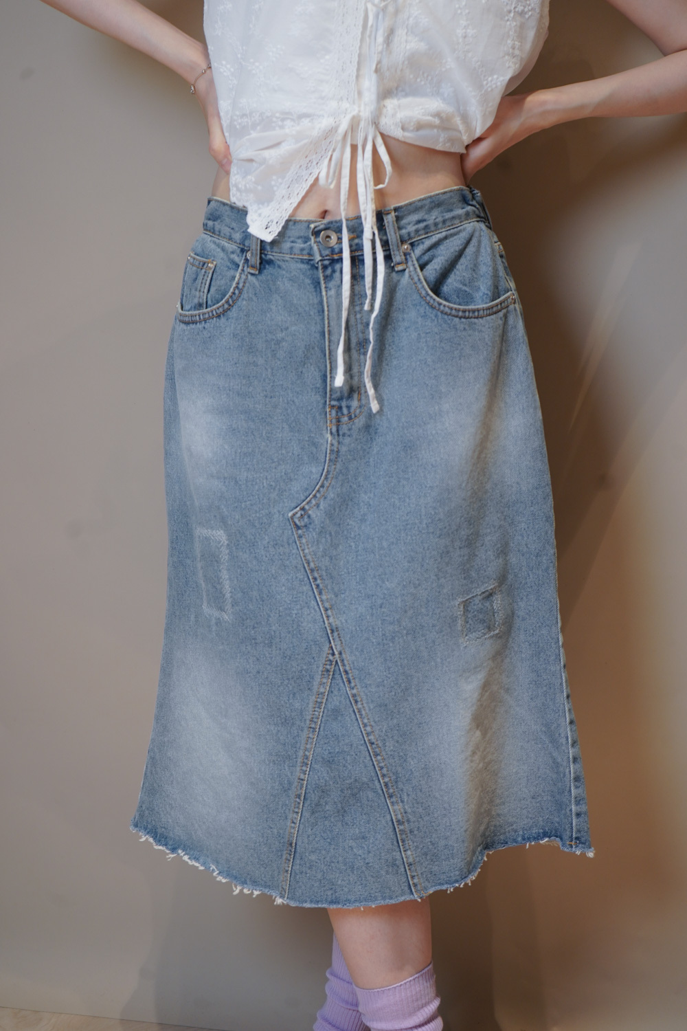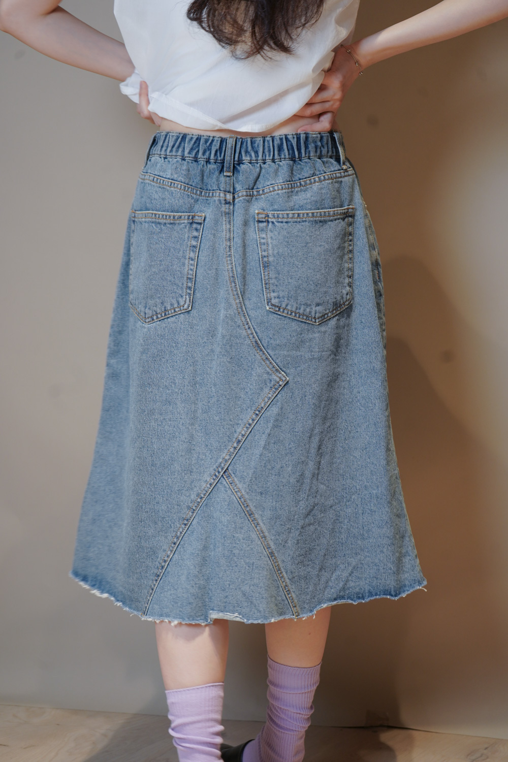 裙尾破邊設計/ 方形仿縫補 基本款中顯設計感/