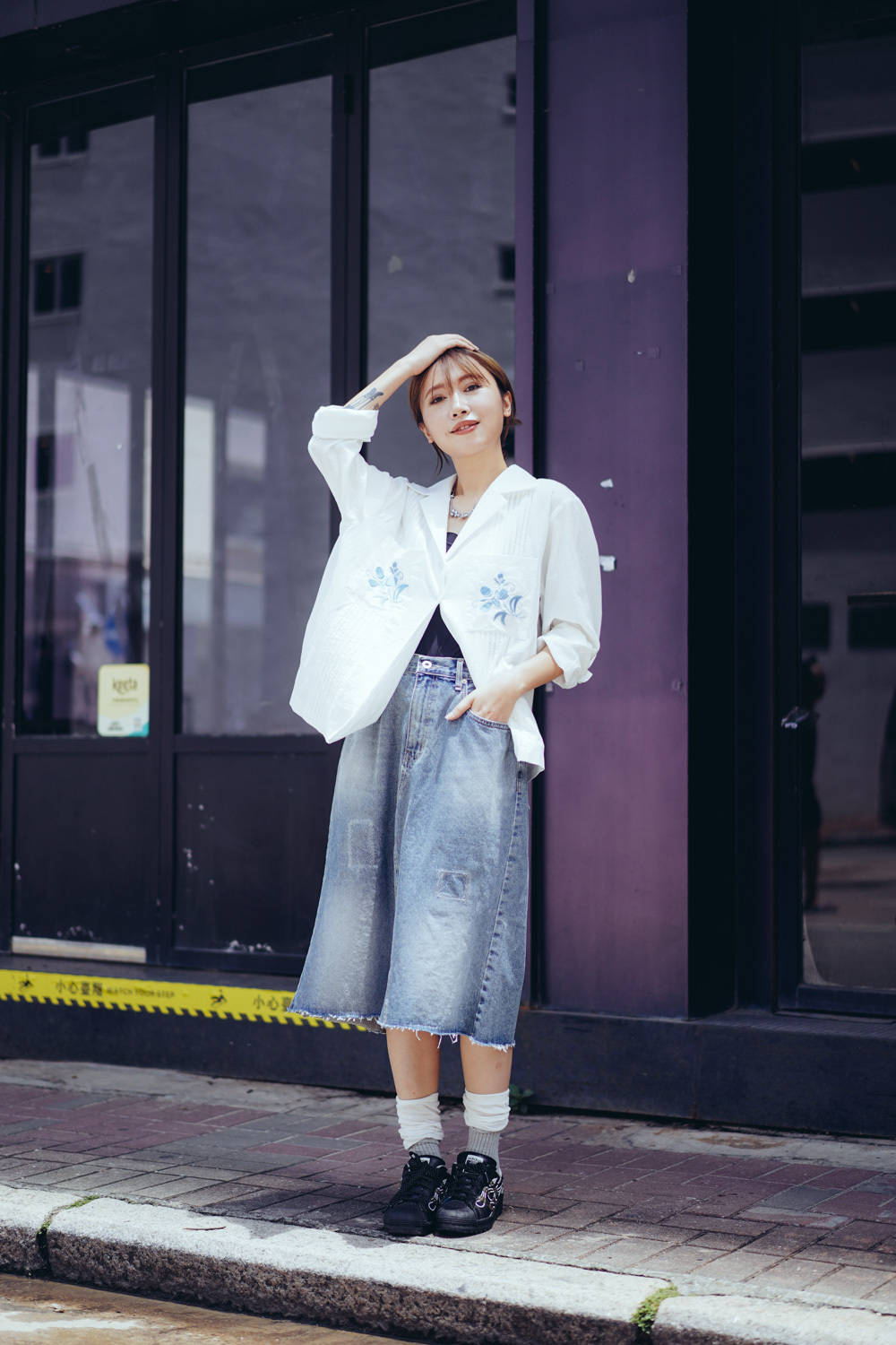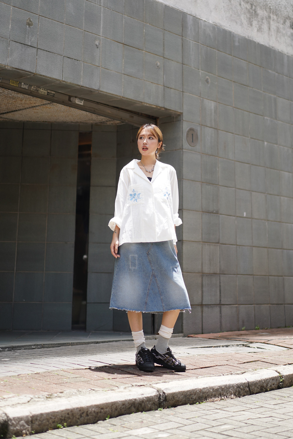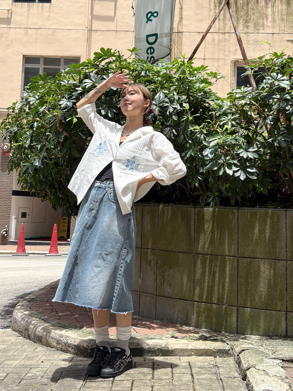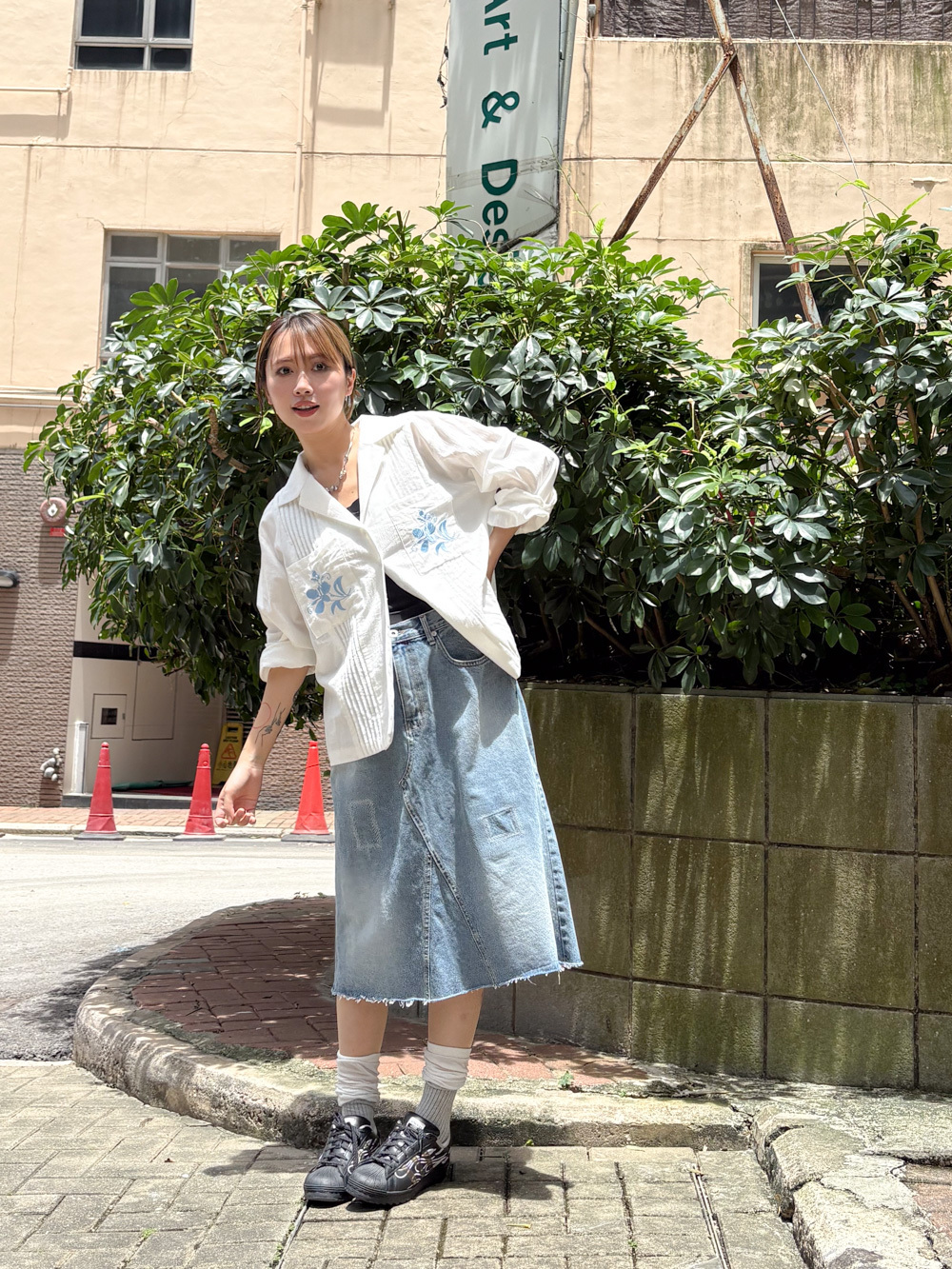 裙尾破邊設計/ 方形仿縫補 基本款中顯設計感/