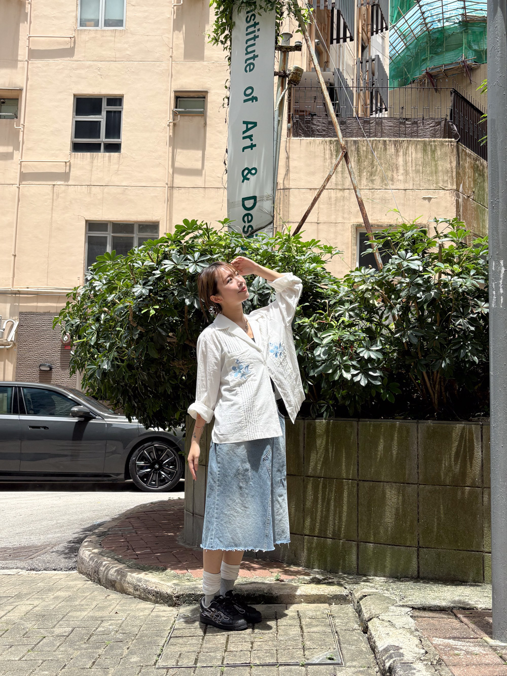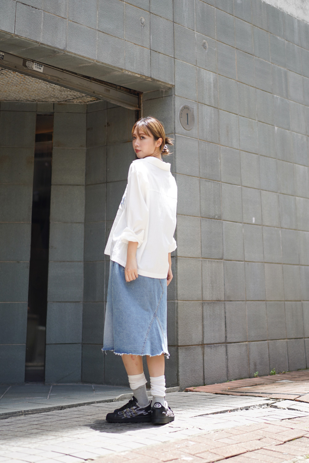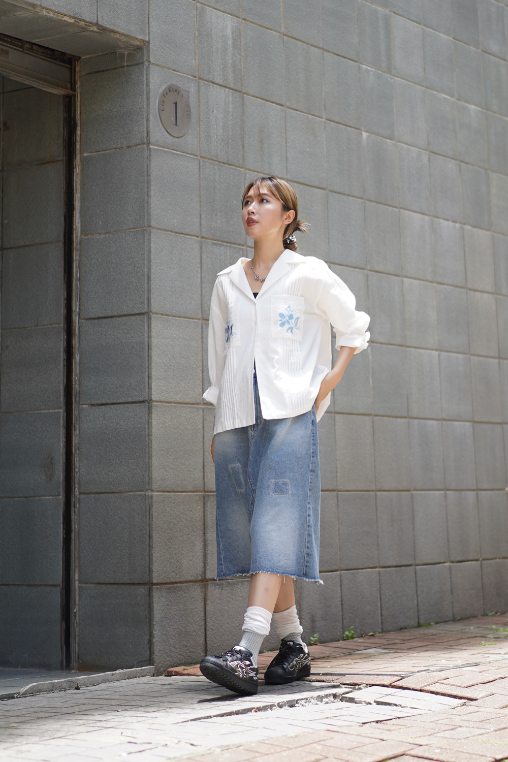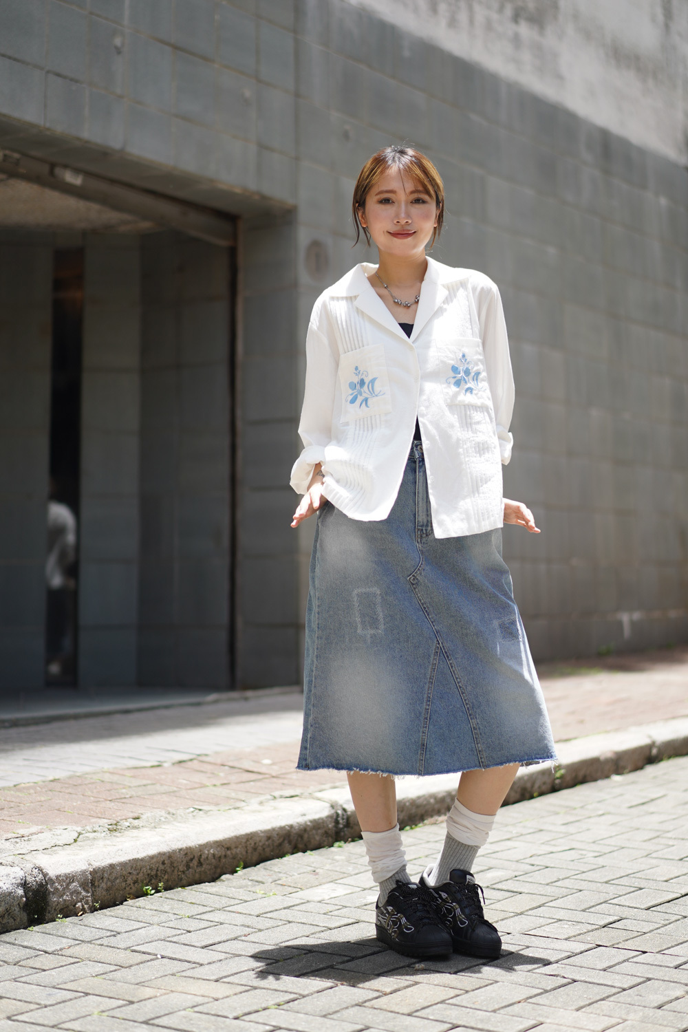 裙尾破邊設計/ 方形仿縫補 基本款中顯設計感/