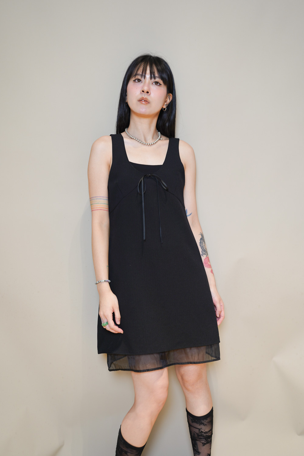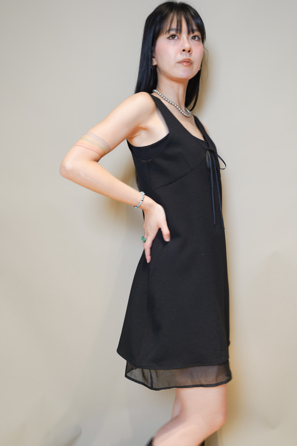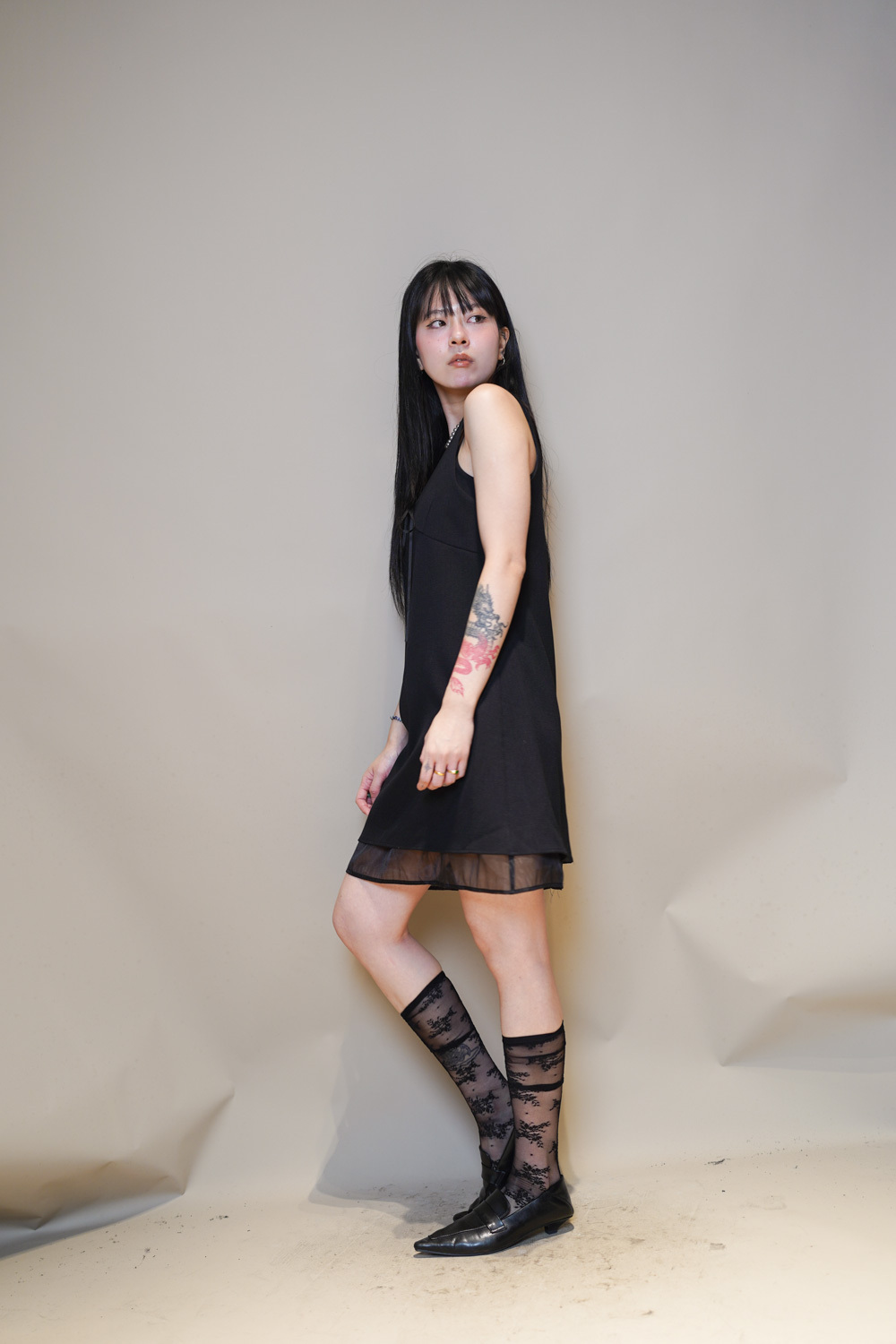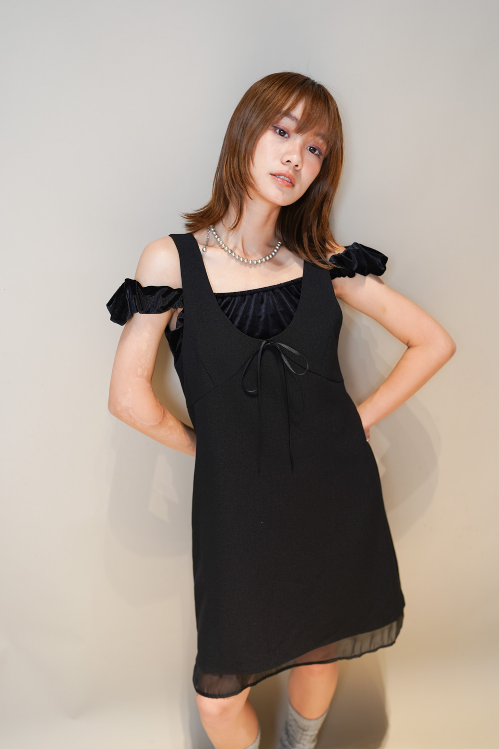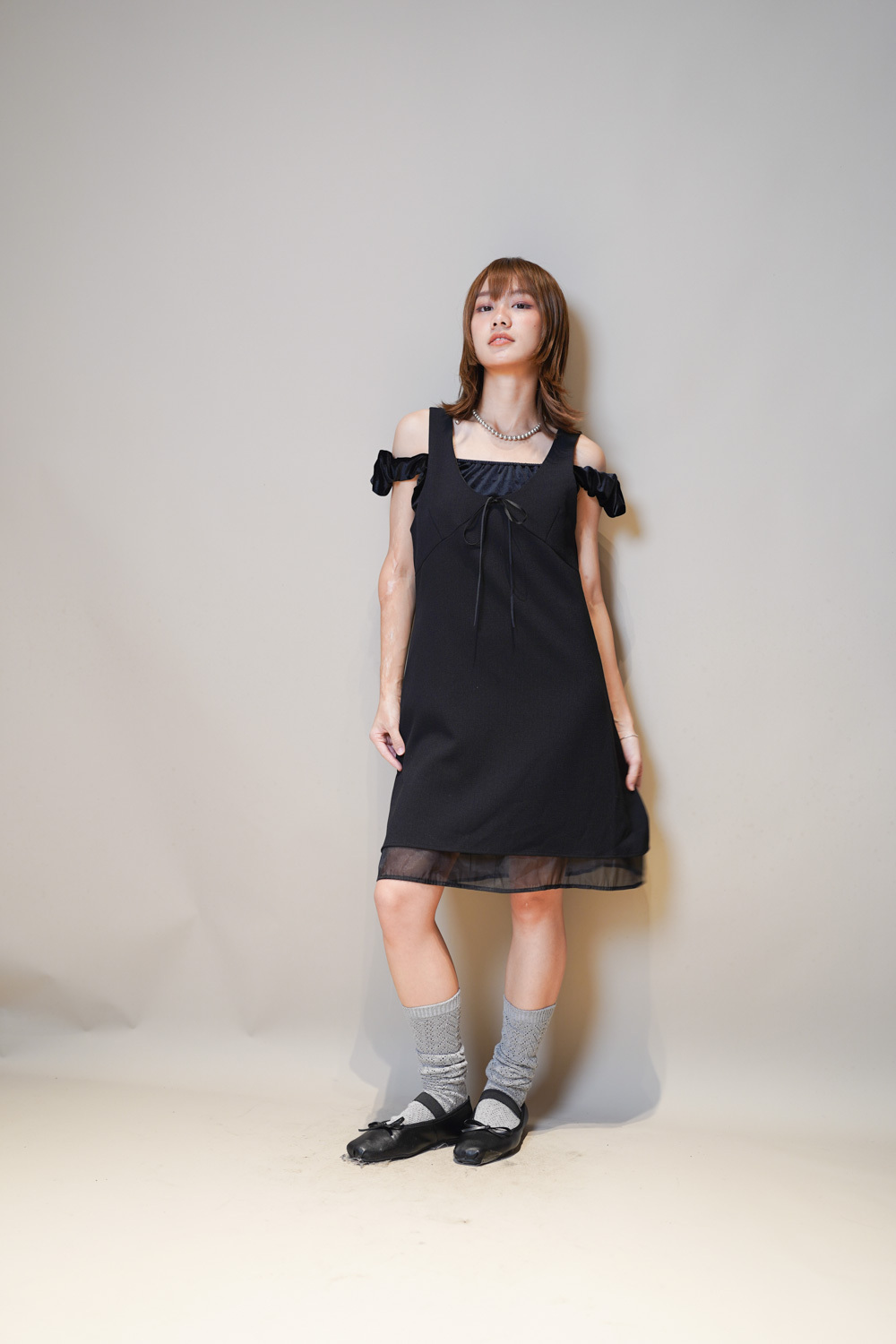 下擺透膚同色網紗 胸前皺摺處理/ 凸顯女人味/