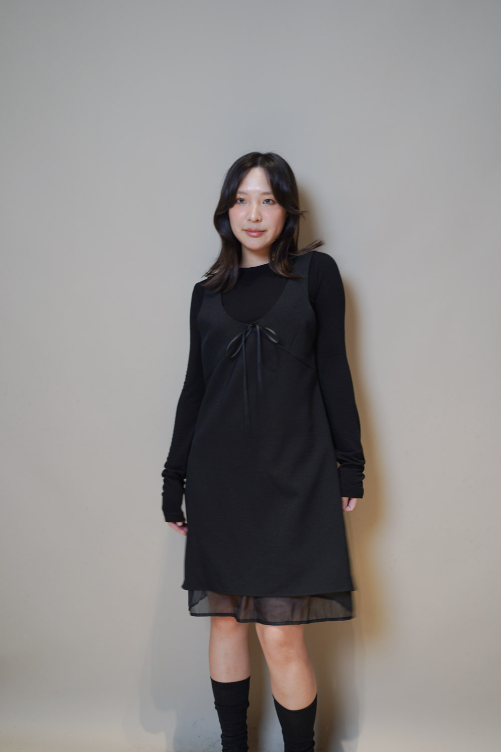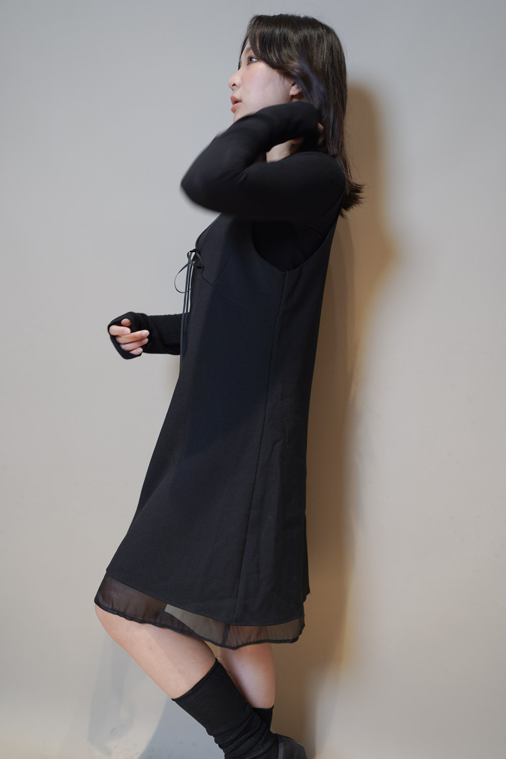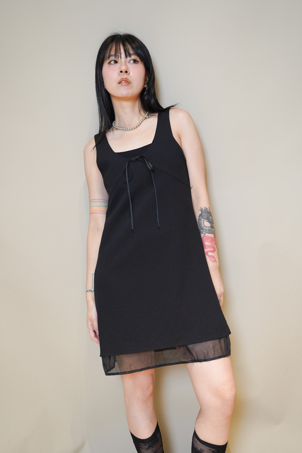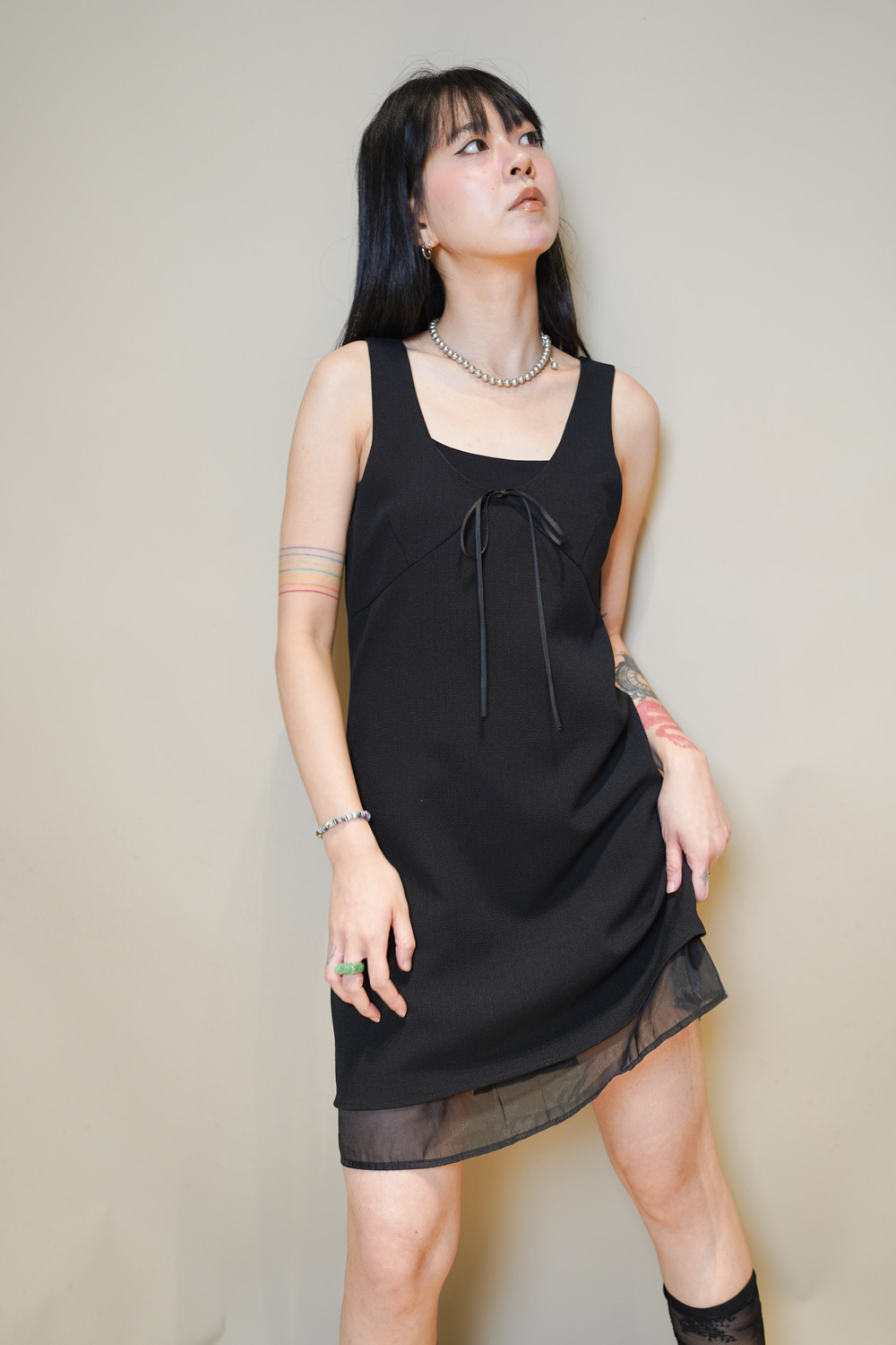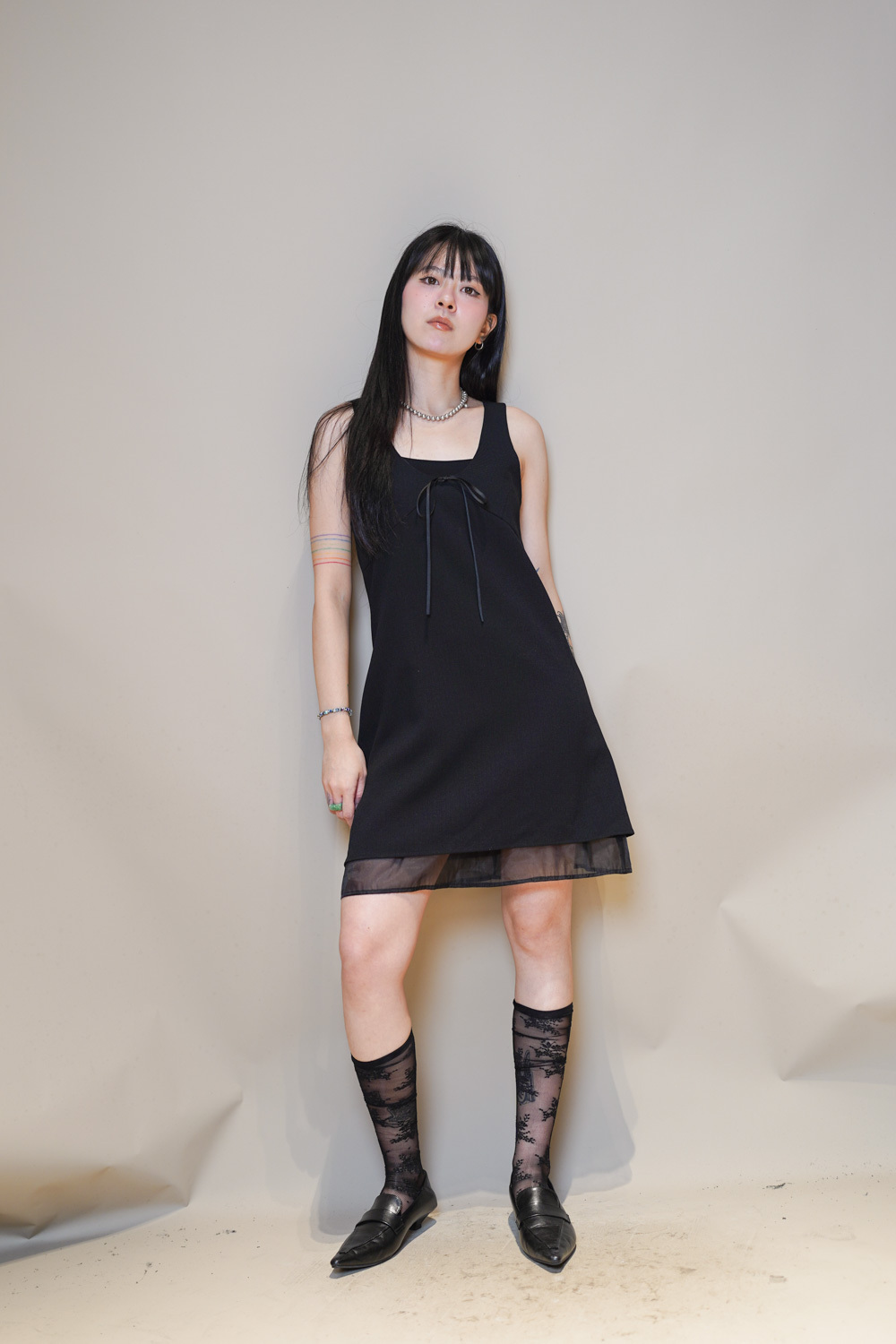 下擺透膚同色網紗 胸前皺摺處理/ 凸顯女人味/
