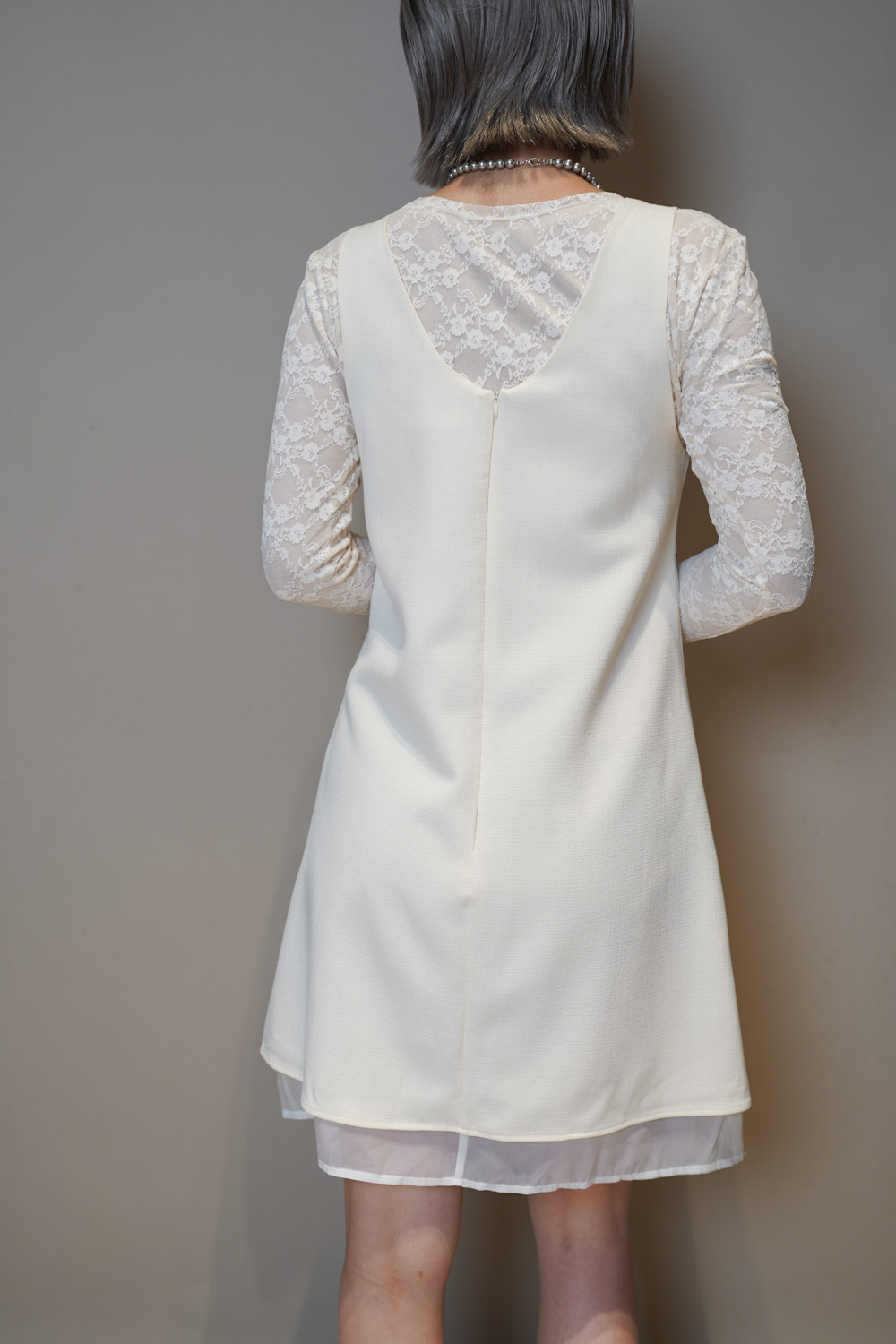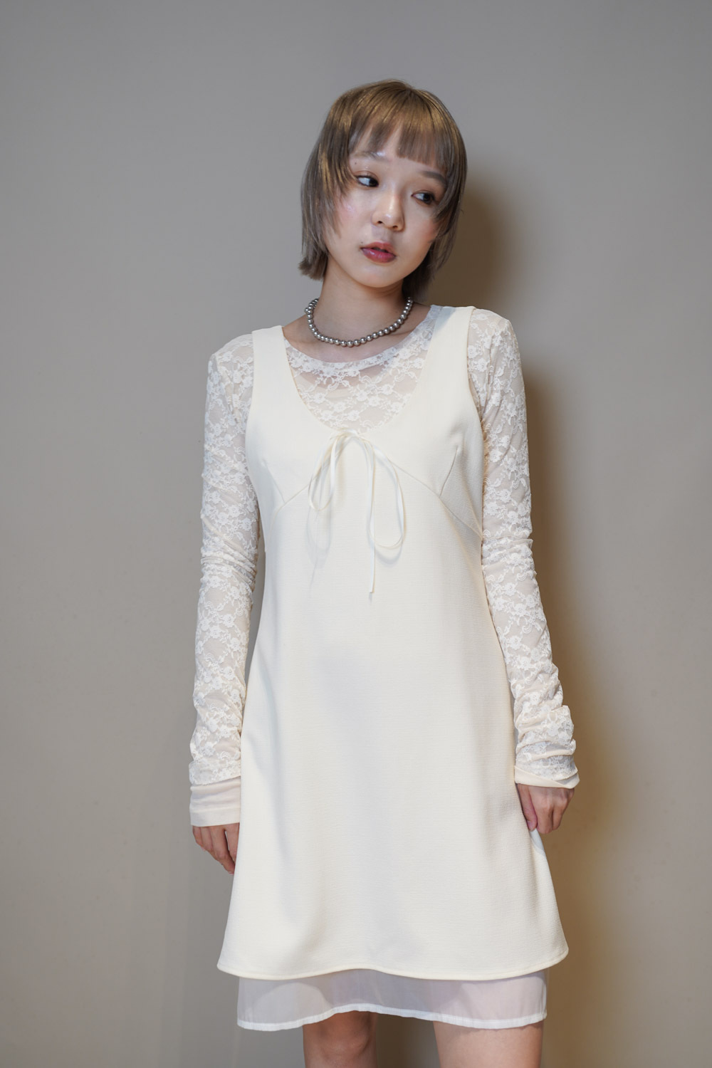 下擺透膚同色網紗 胸前皺摺處理/ 凸顯女人味/