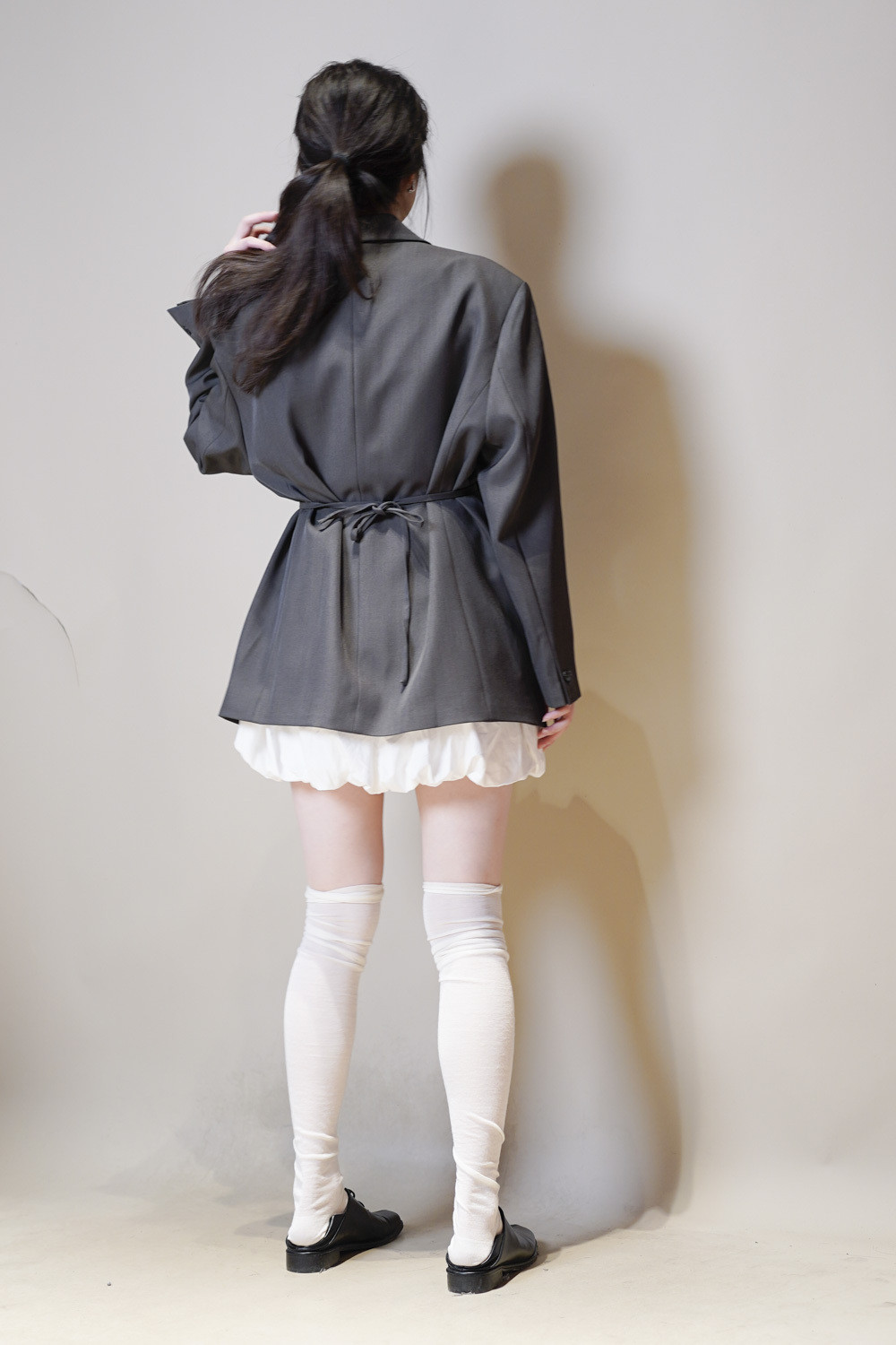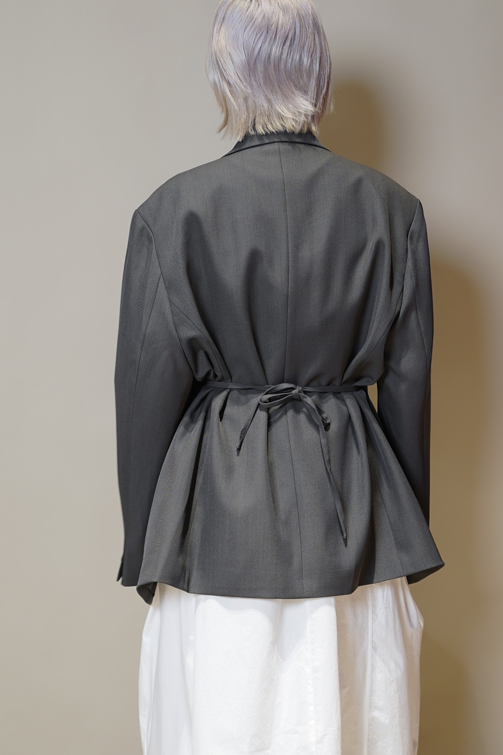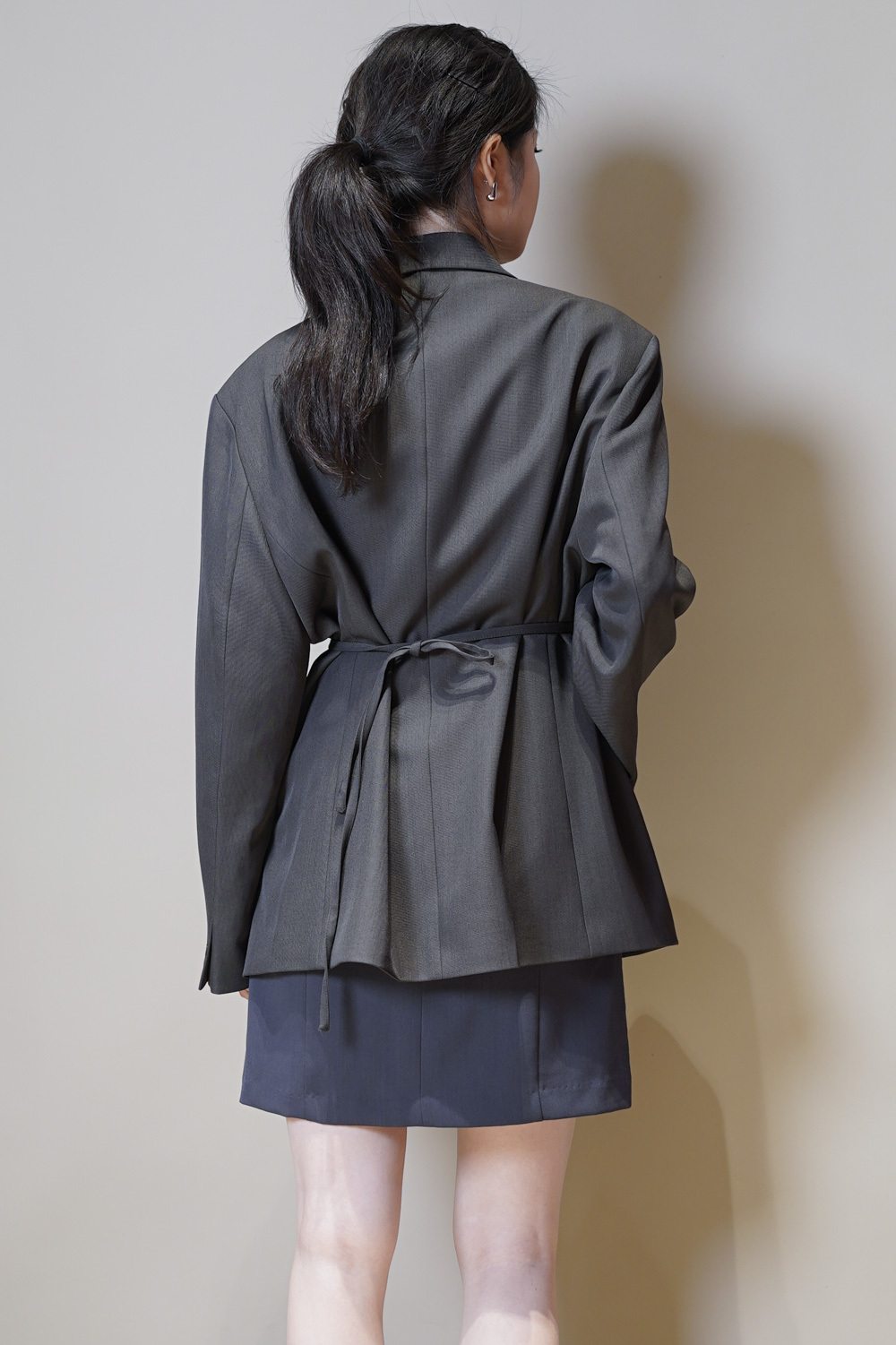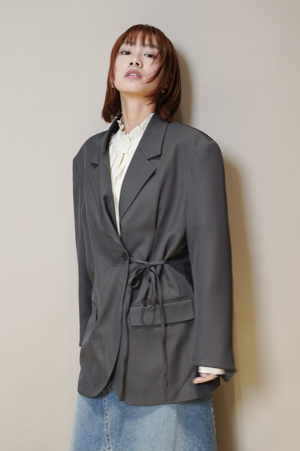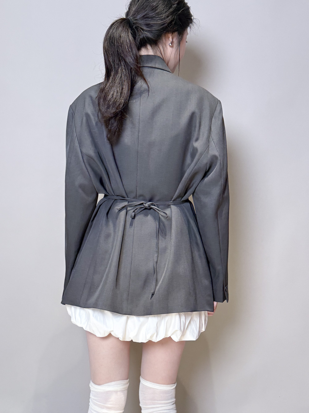 Multi ways oversized Ribbon blazer (GREY/ BLACK)