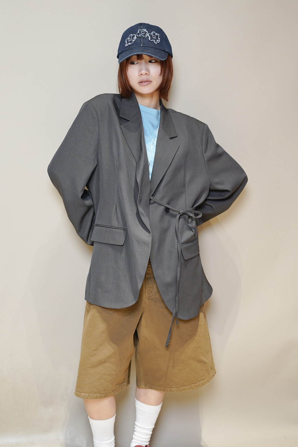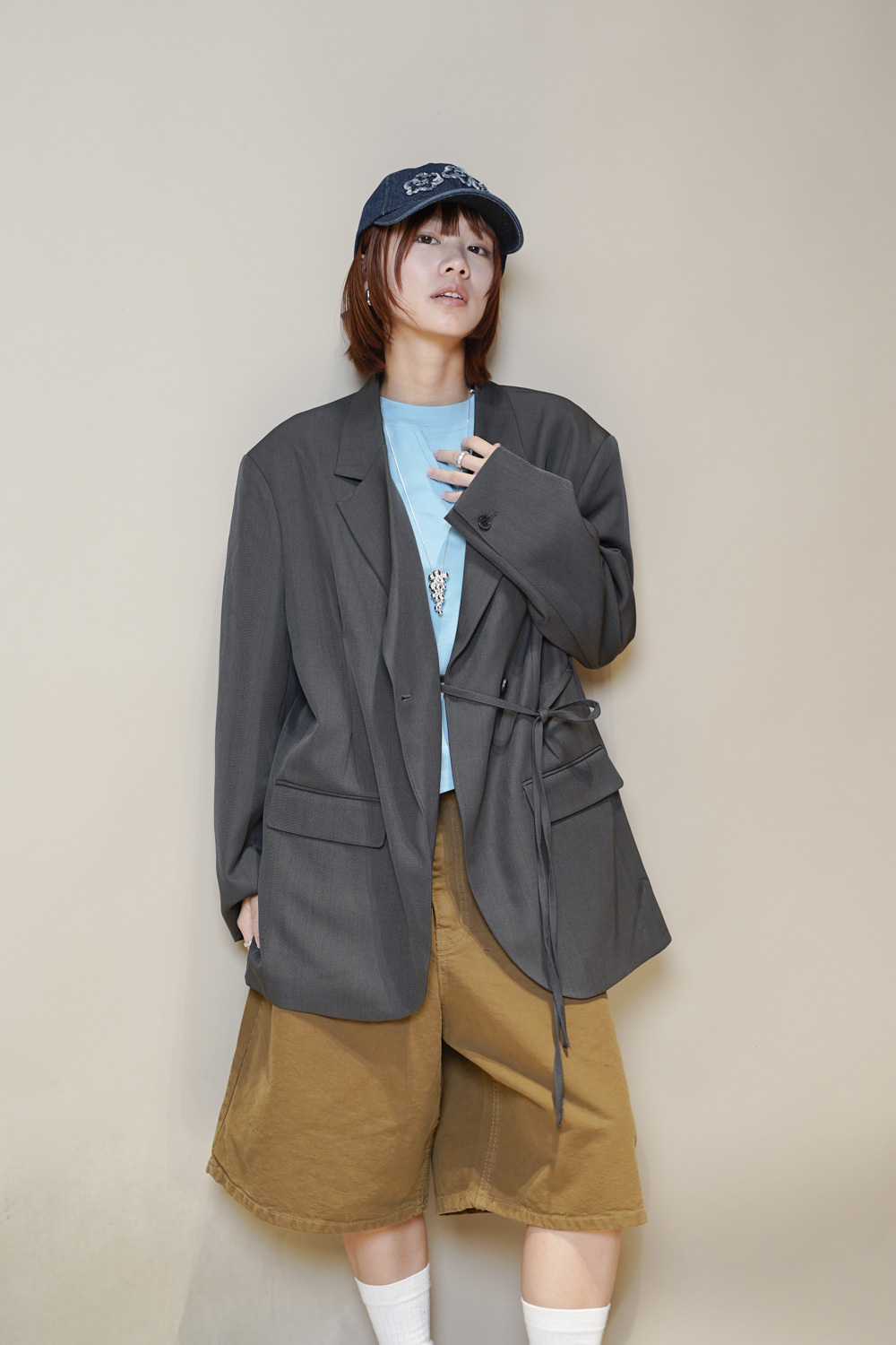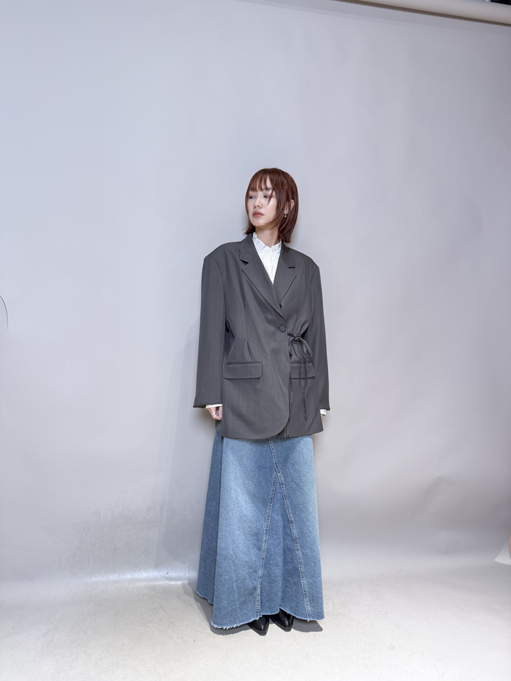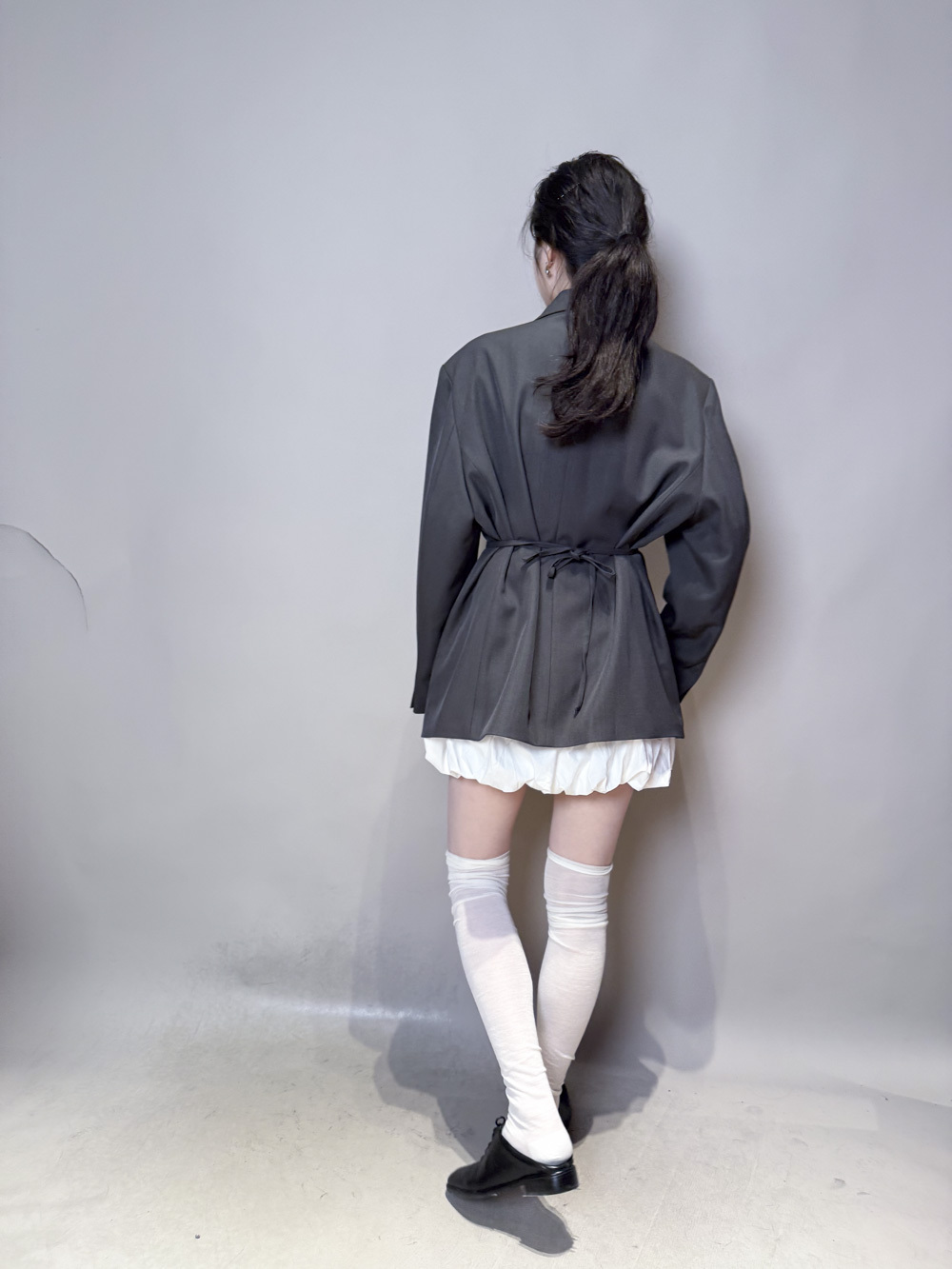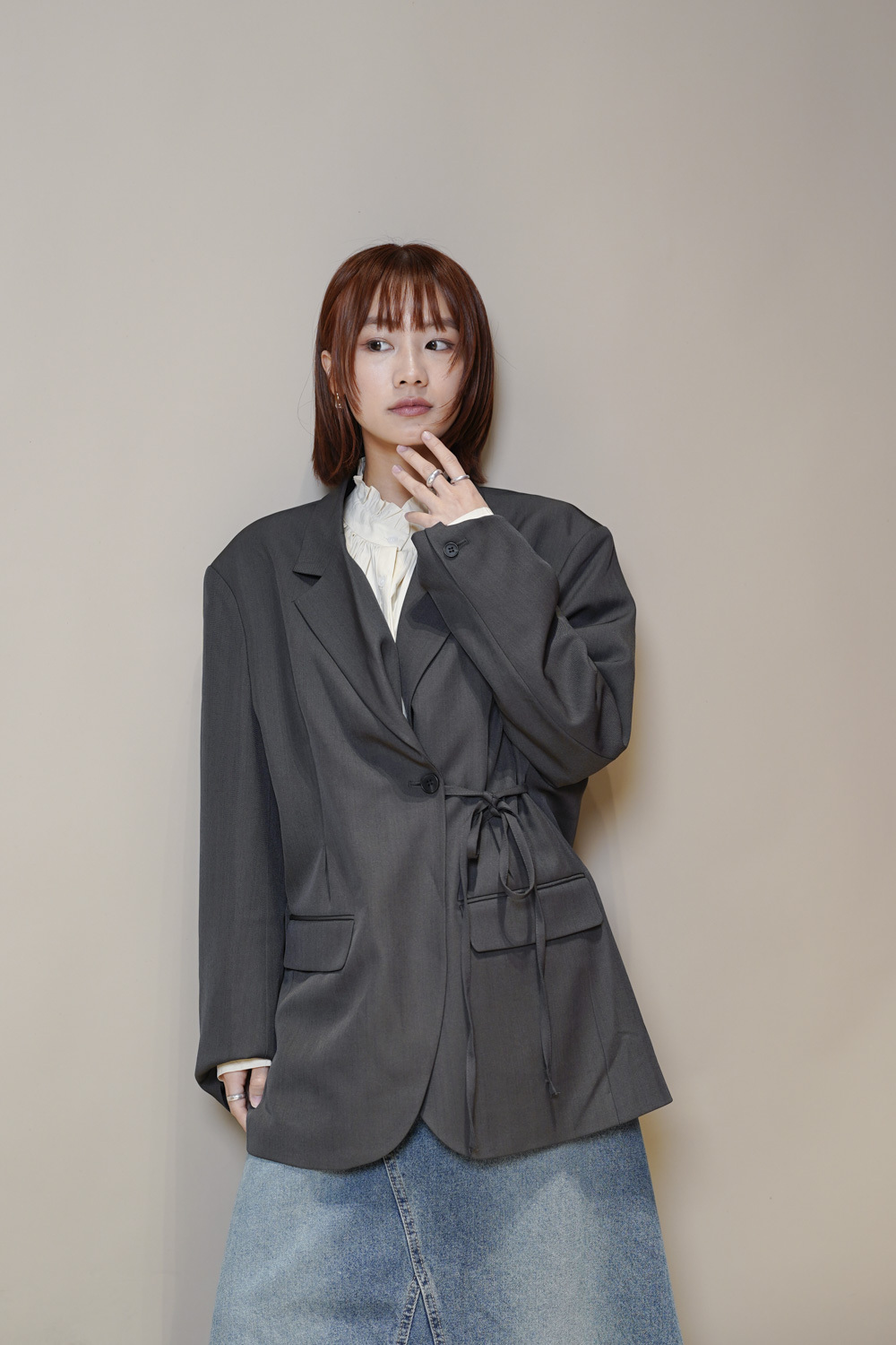 Multi ways oversized Ribbon blazer (GREY/ BLACK)